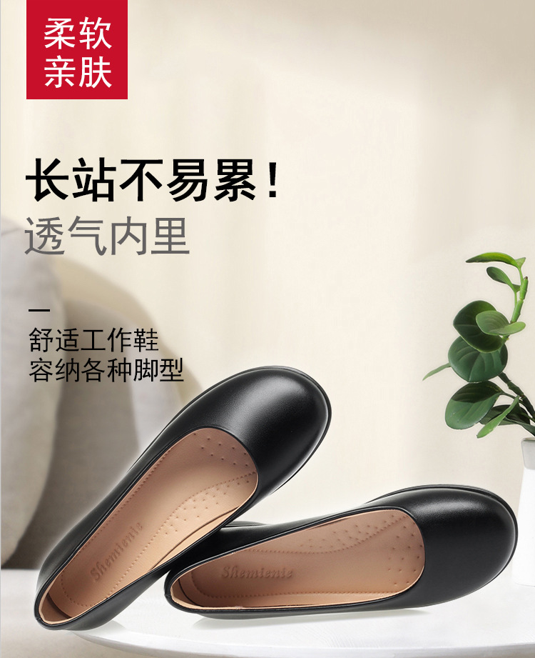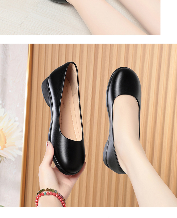 블랙 툴링 여성용 가죽 신발 플랫 미끄럼 방지 싱글 레이어 신발 여성용 라운드 발가락 편안한 올 매치 부드러운 가죽 소프트 하단 편안한 작업 신발