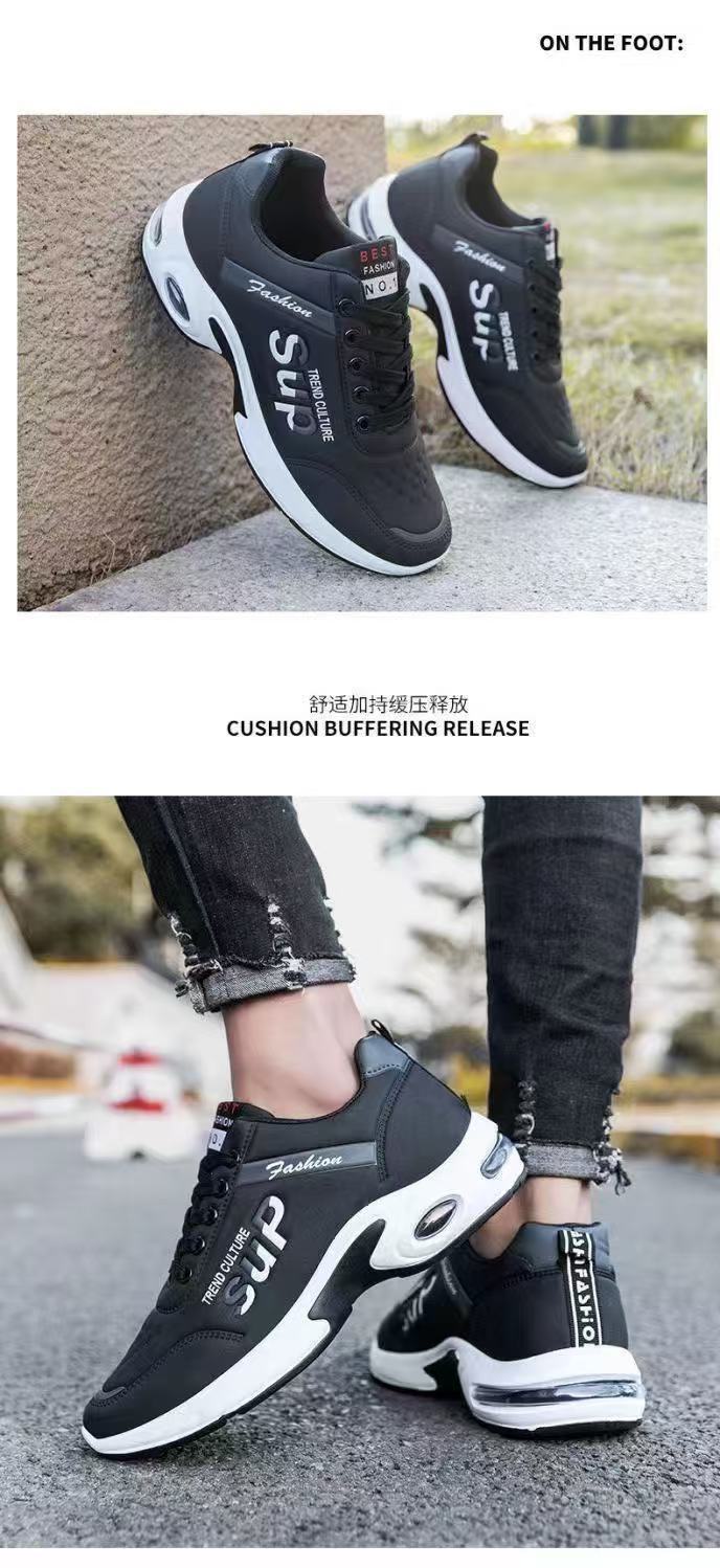 봄과 가을 스포츠 남성 신발 증가 비 슬립 탈취제 트렌드 가죽 캐주얼 러닝 운동화 도매 머리카락