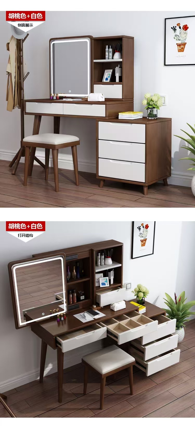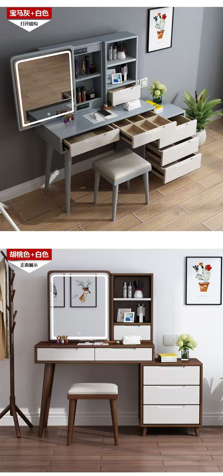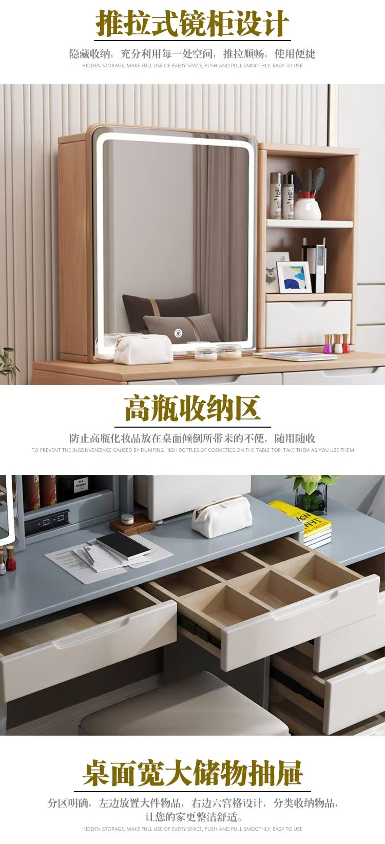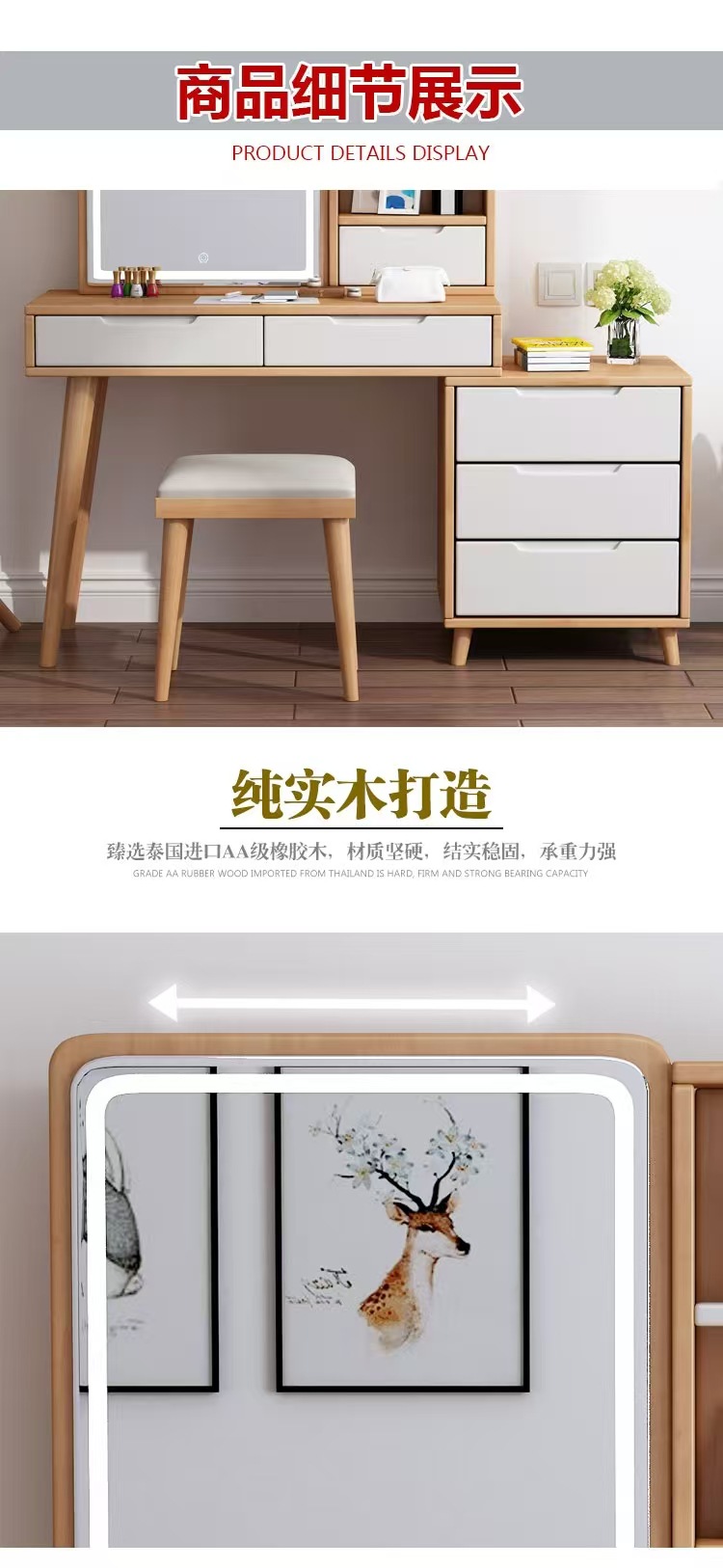 북유럽 원목 화장대 스마트 거울 신형 화장대 침실 모던 심플 수납장 일체형 화장대