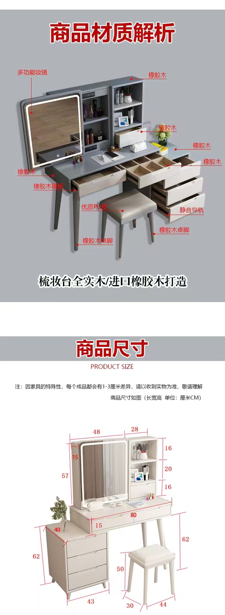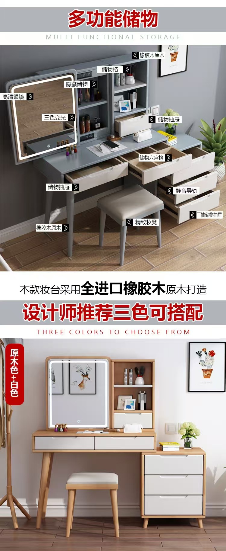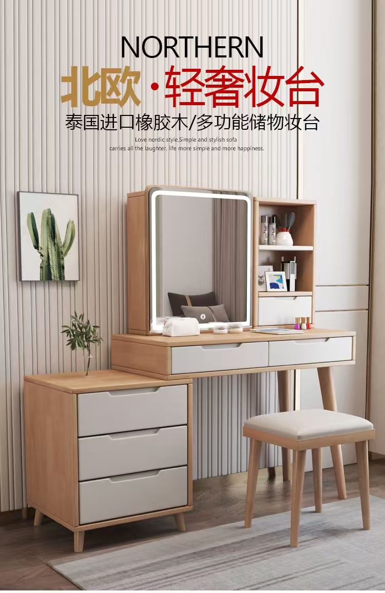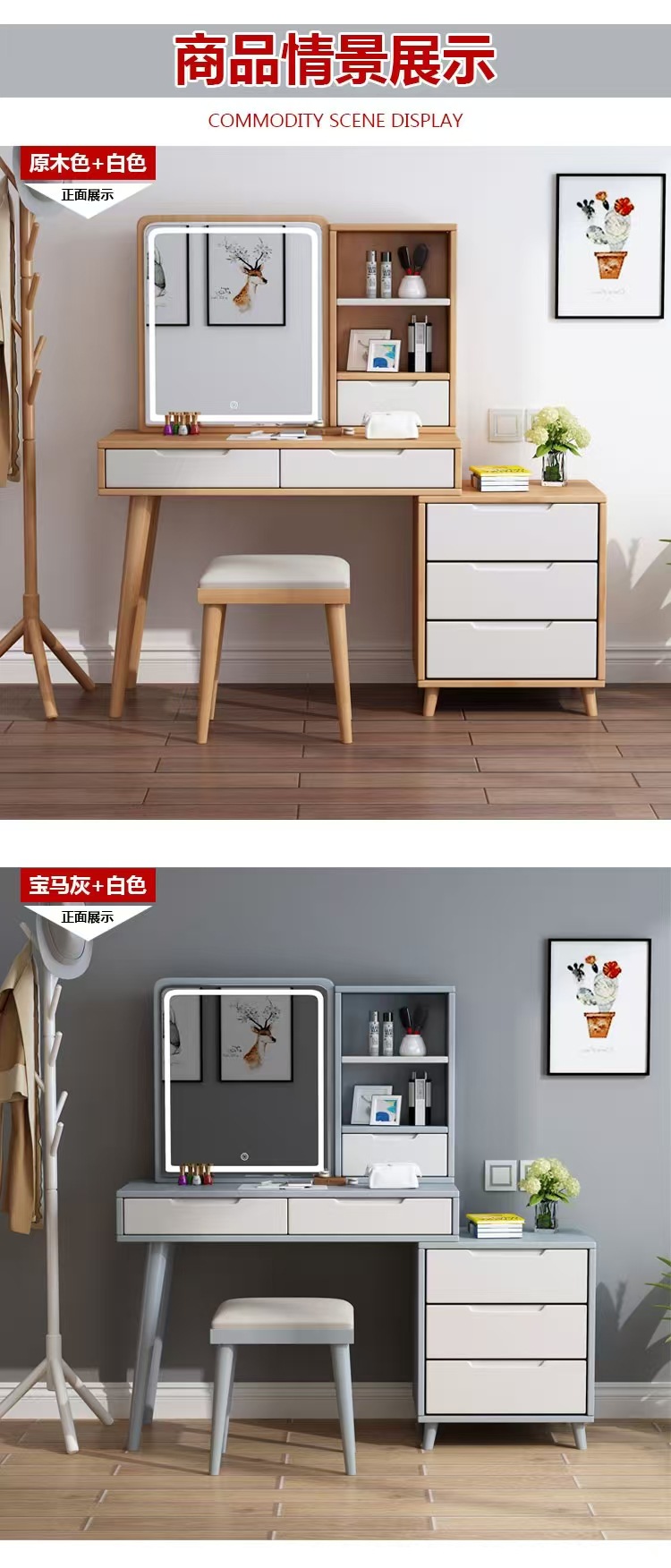 북유럽 원목 화장대 스마트 거울 신형 화장대 침실 모던 심플 수납장 일체형 화장대