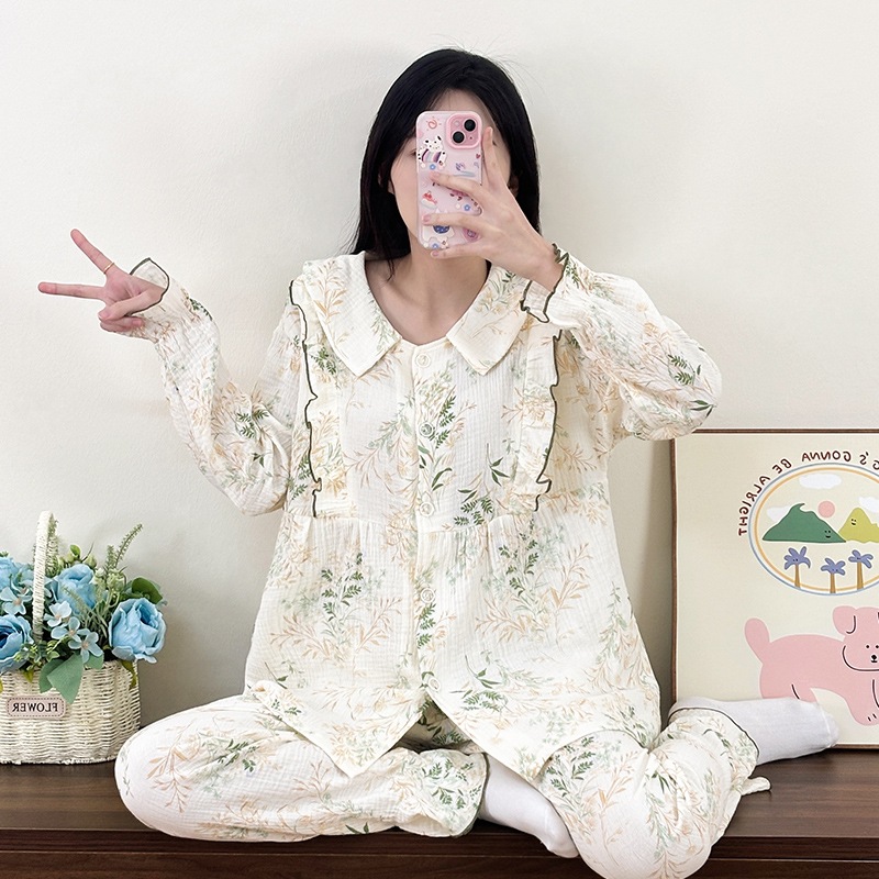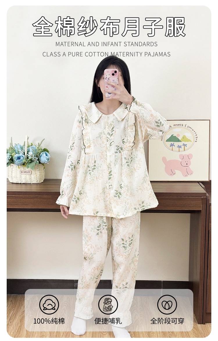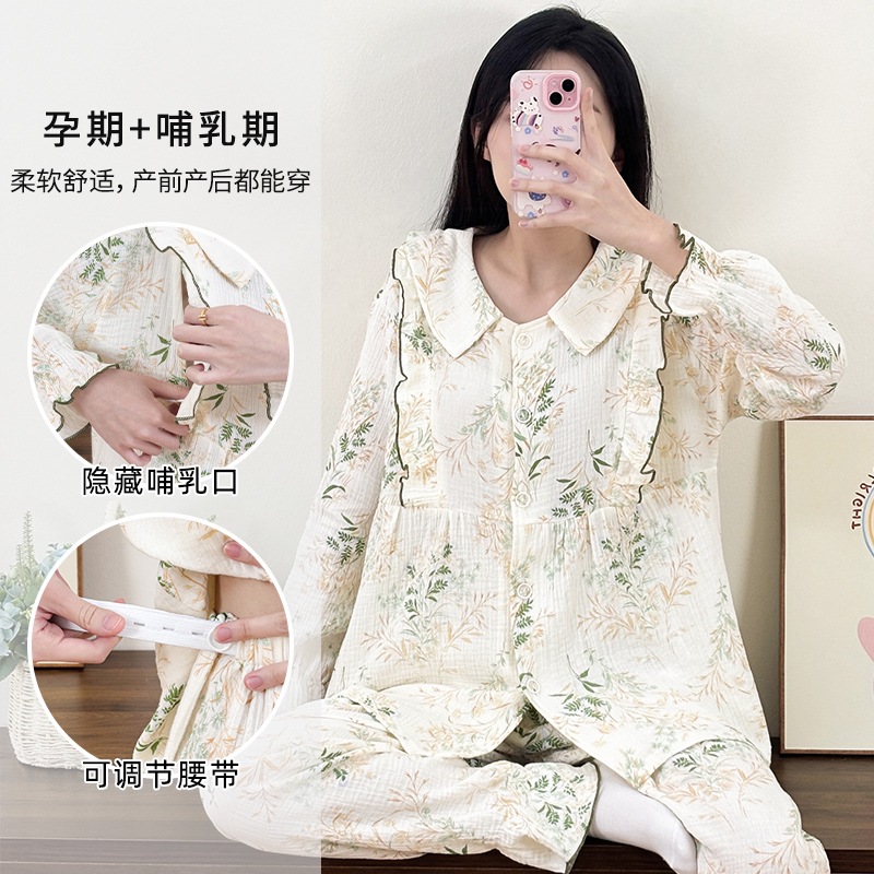 봄 여름 신상 A급 순면 거즈 임산부 잠옷 라펠 면 산후복 산후 수유 땀흡수 커버