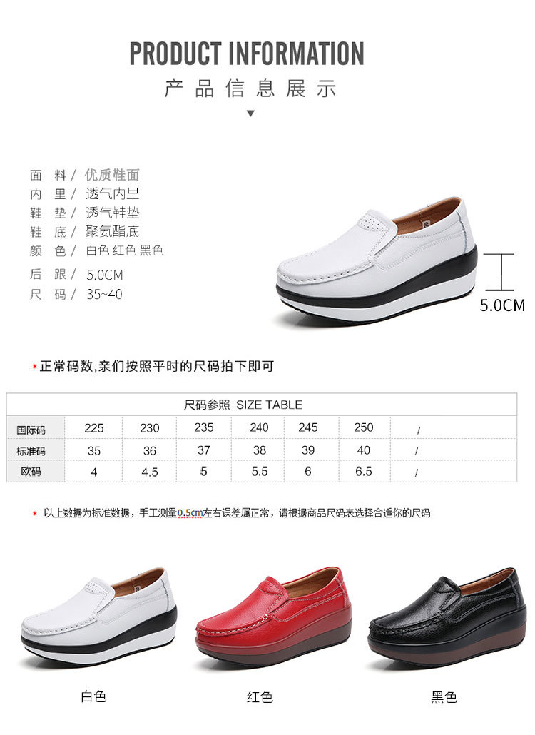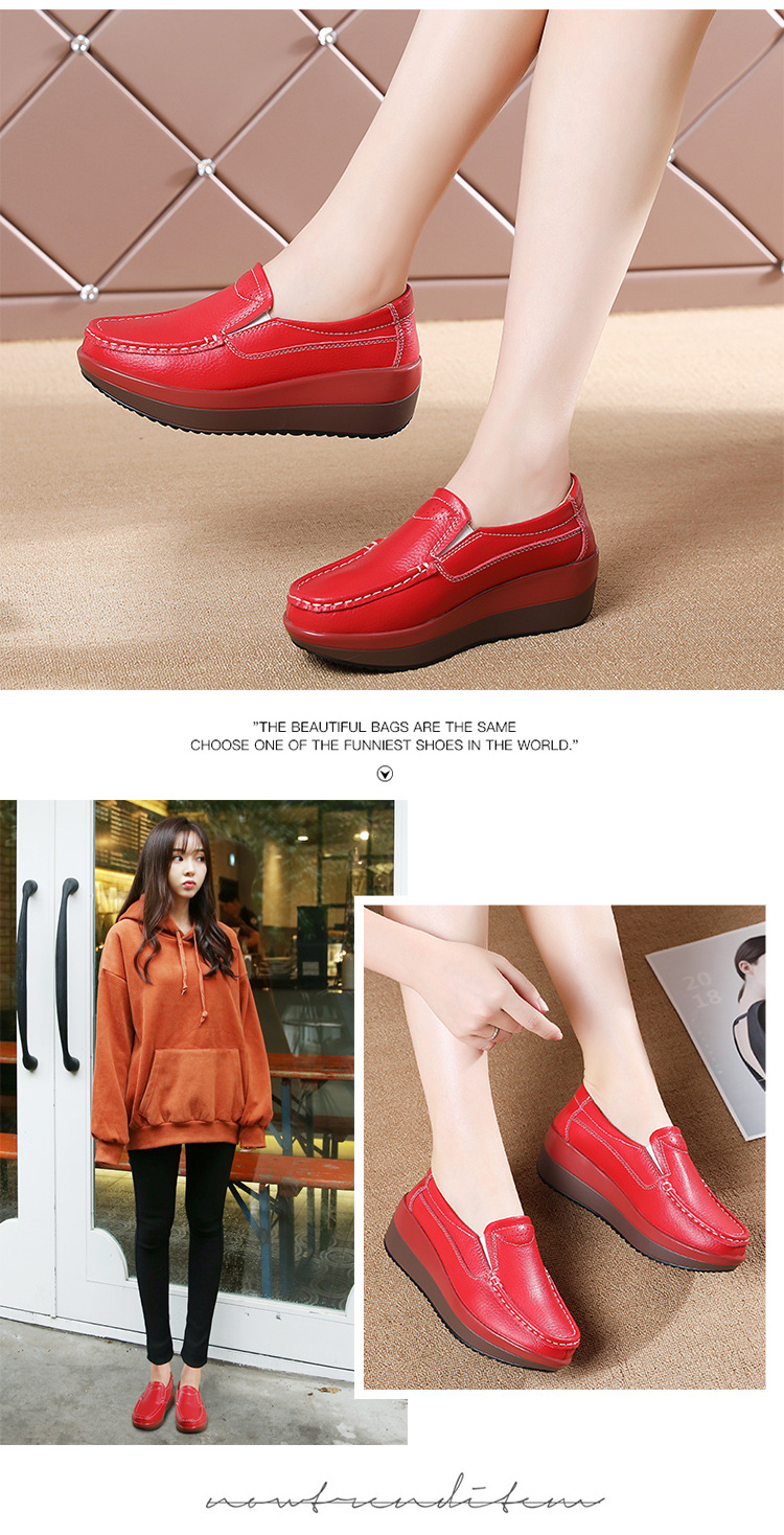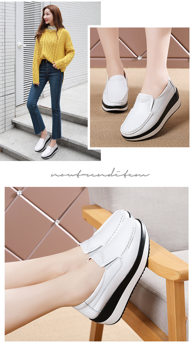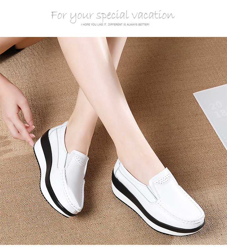 국경 간 뉴 플러스 사이즈 운동화 여성 한국식 두꺼운 밑창 흔들 신발 여성 정품 가죽 슬립 온 웨지 캐주얼 엄마 신발
