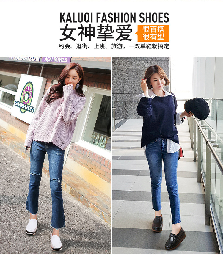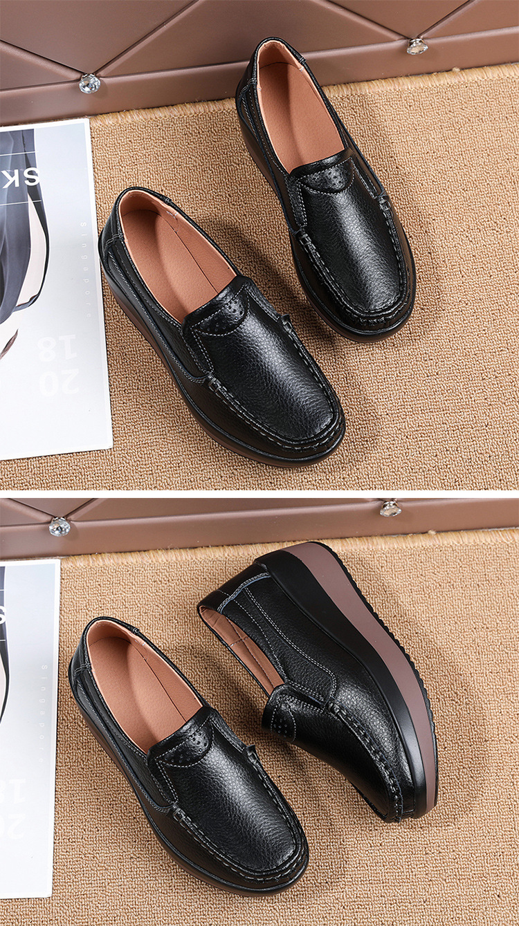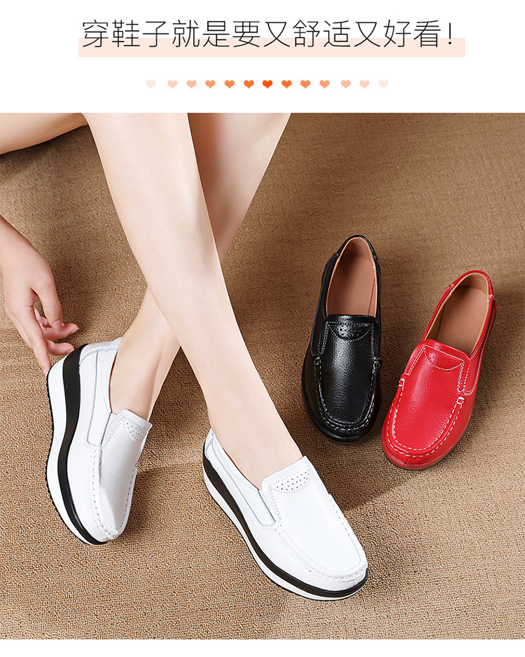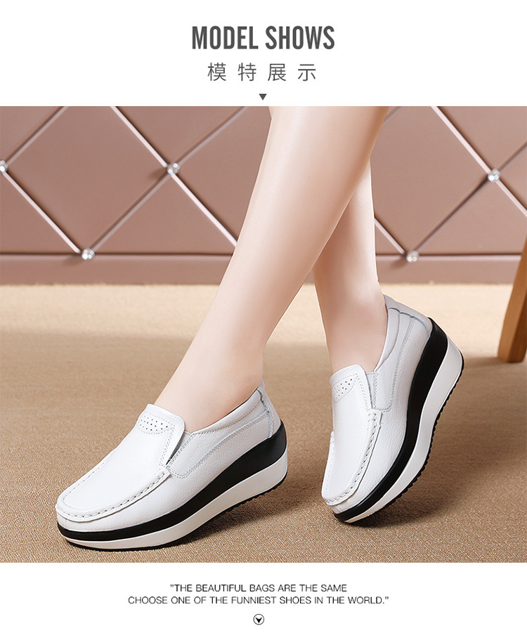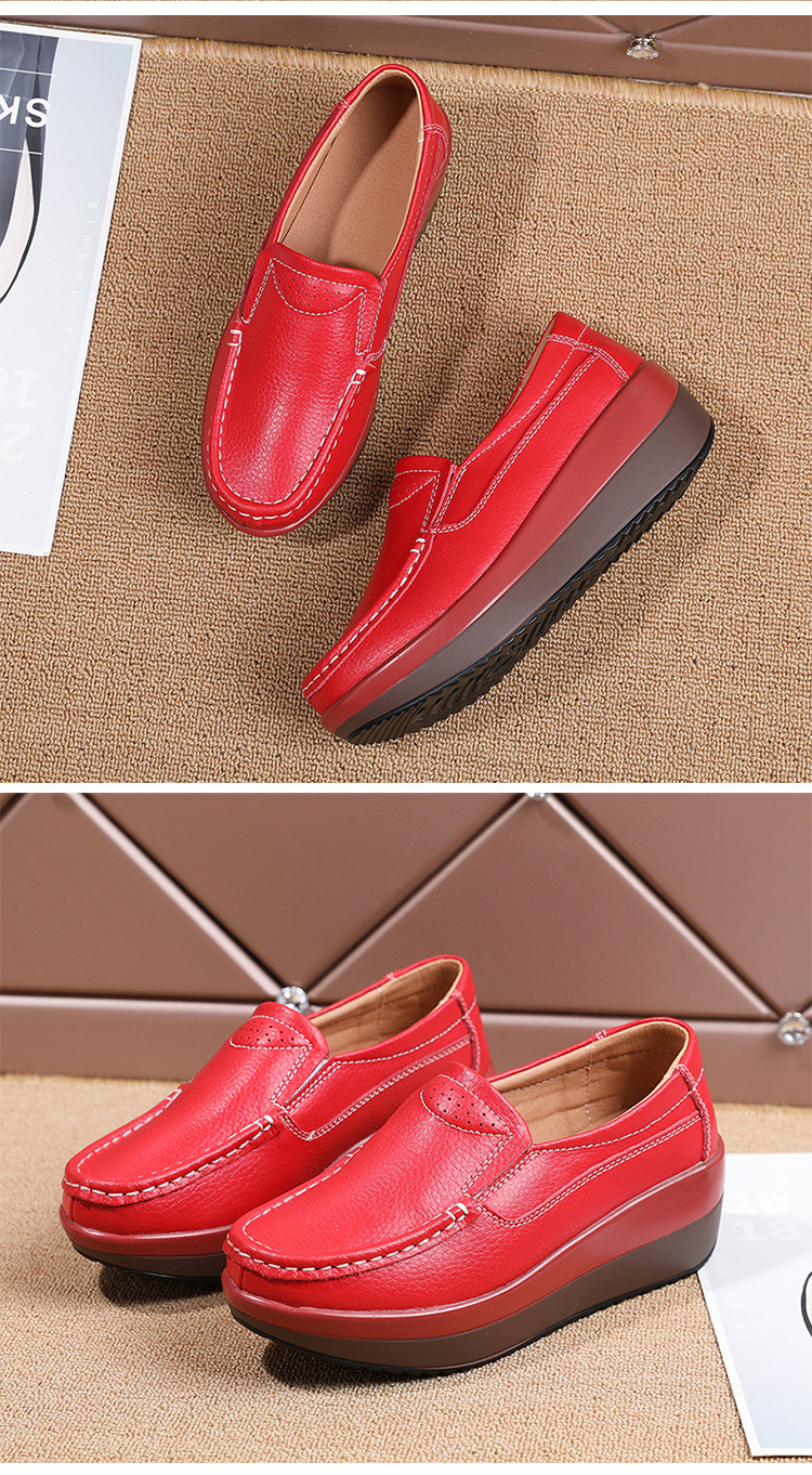 국경 간 뉴 플러스 사이즈 운동화 여성 한국식 두꺼운 밑창 흔들 신발 여성 정품 가죽 슬립 온 웨지 캐주얼 엄마 신발