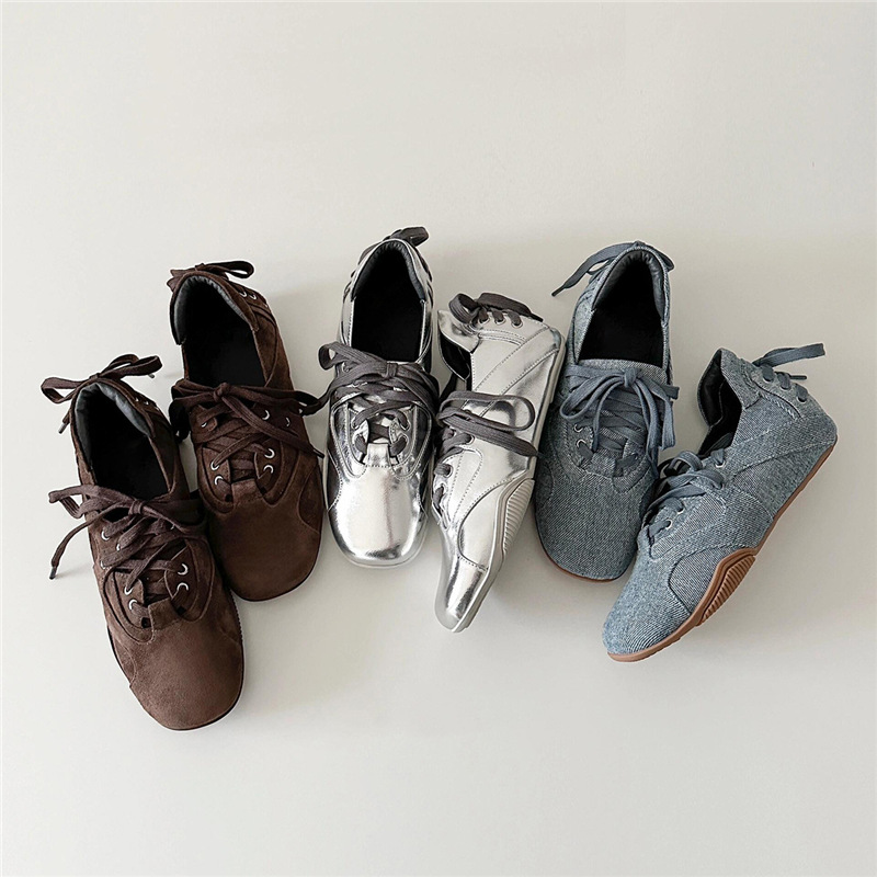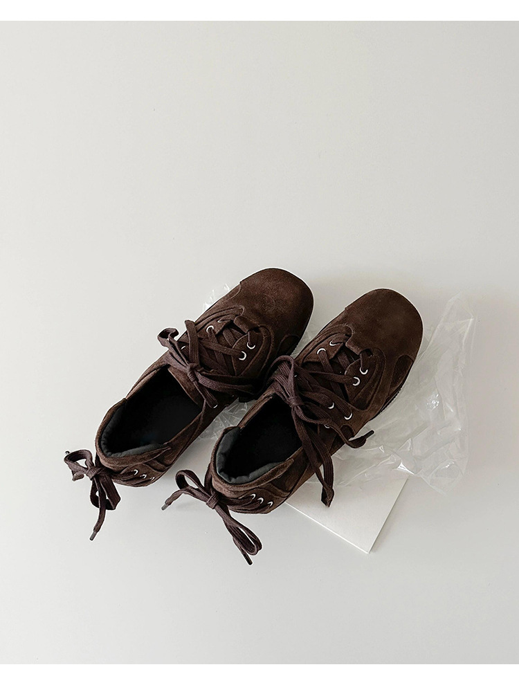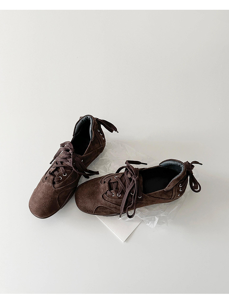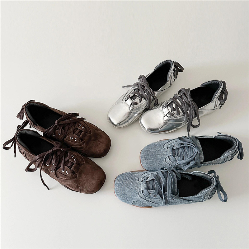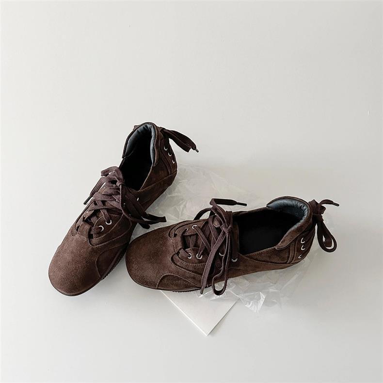 양가죽 버전 ~ 새로운 디자인 패션 다용도 스포츠 발레 신발 여성 레이스 업 플랫 가죽 복고풍 캐주얼 신발