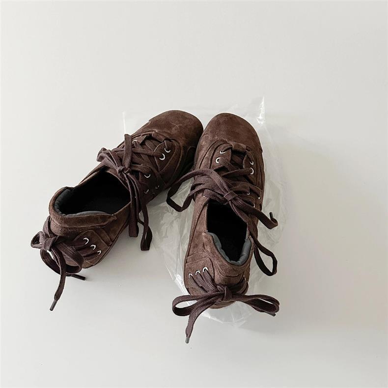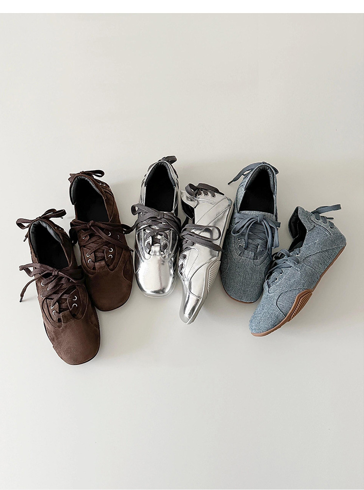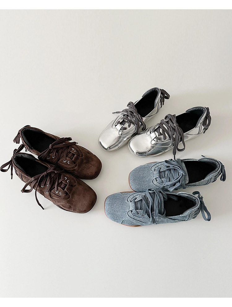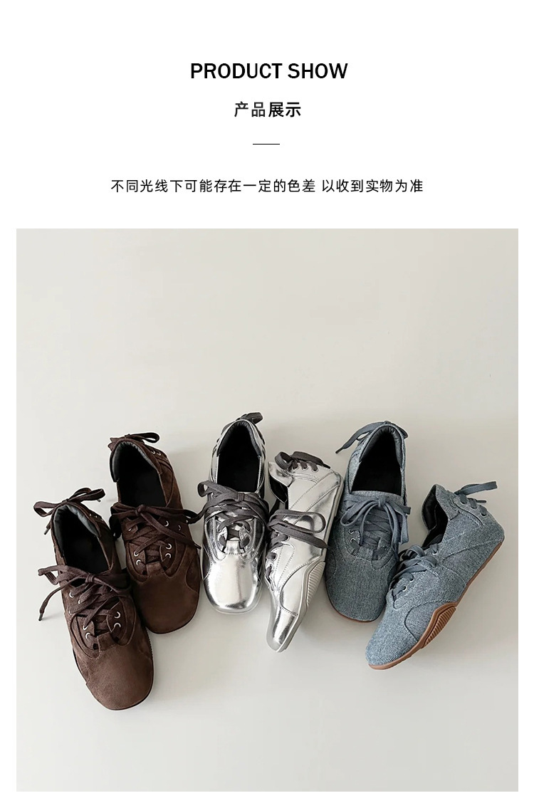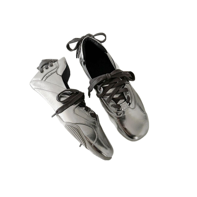양가죽 버전 ~ 새로운 디자인 패션 다용도 스포츠 발레 신발 여성 레이스 업 플랫 가죽 복고풍 캐주얼 신발