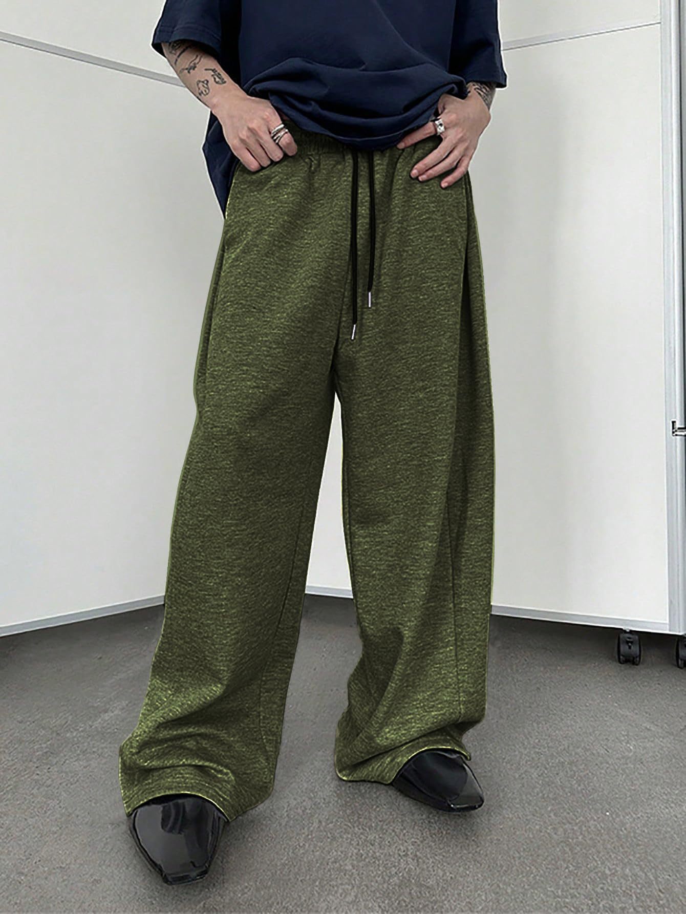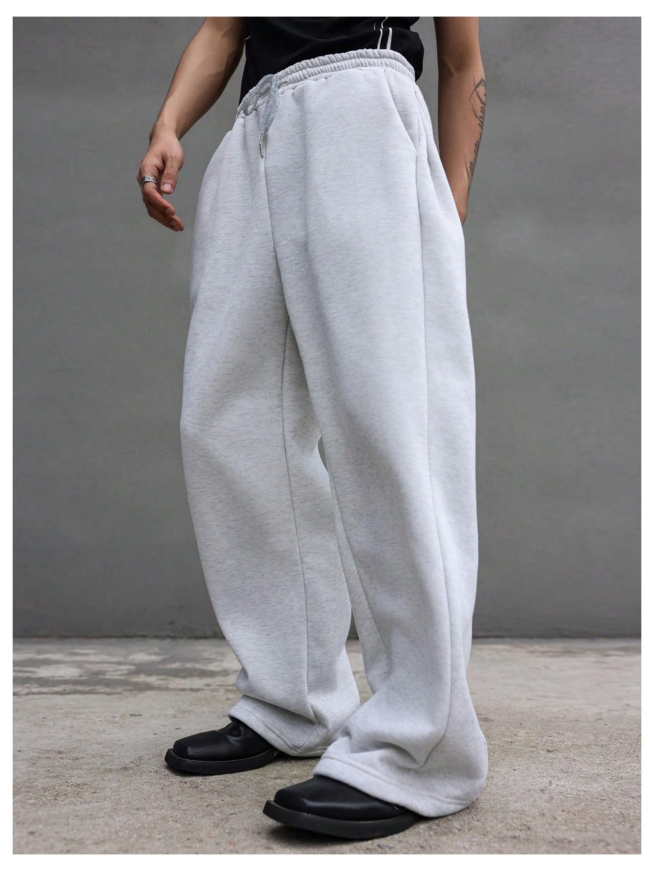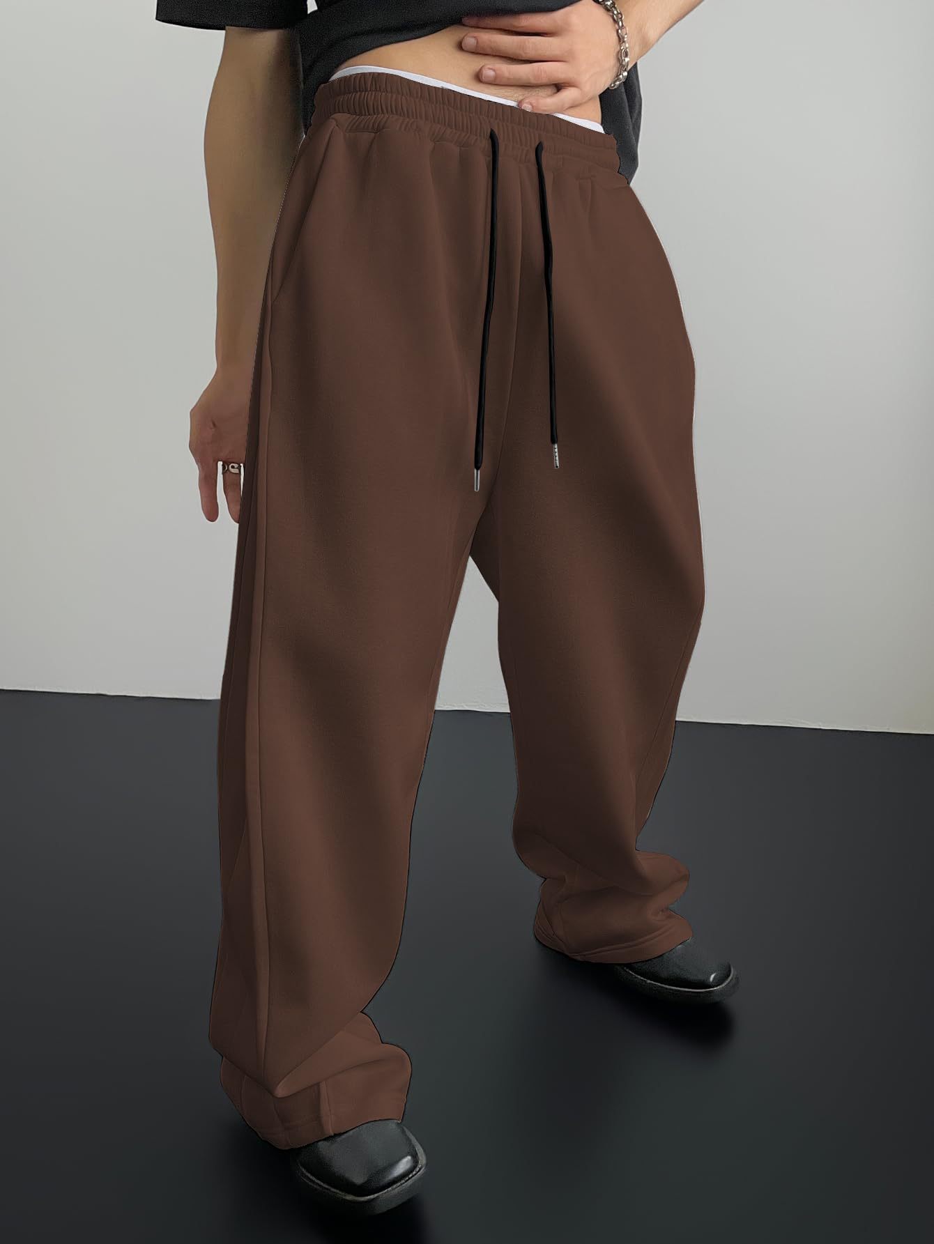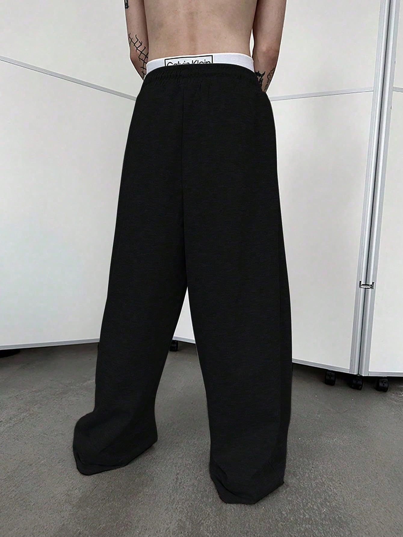 2025 유럽과 미국의 아마존 tk 남자 운동복 허리 끈 스트레이트 와이드 다리 느슨한 바지 스포츠 바지 포켓