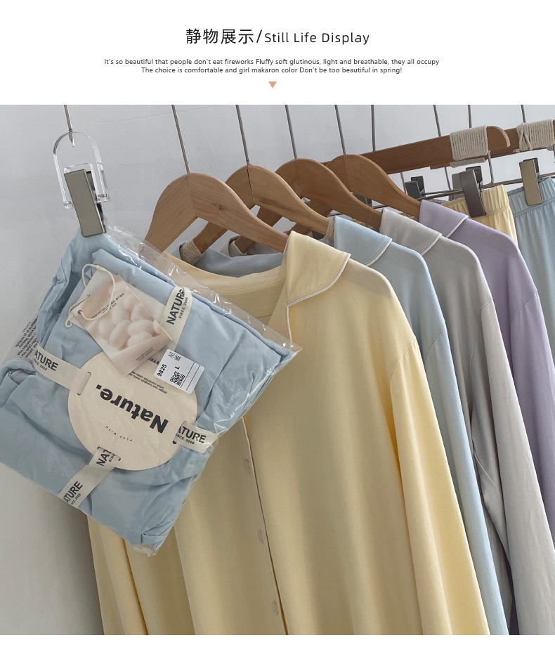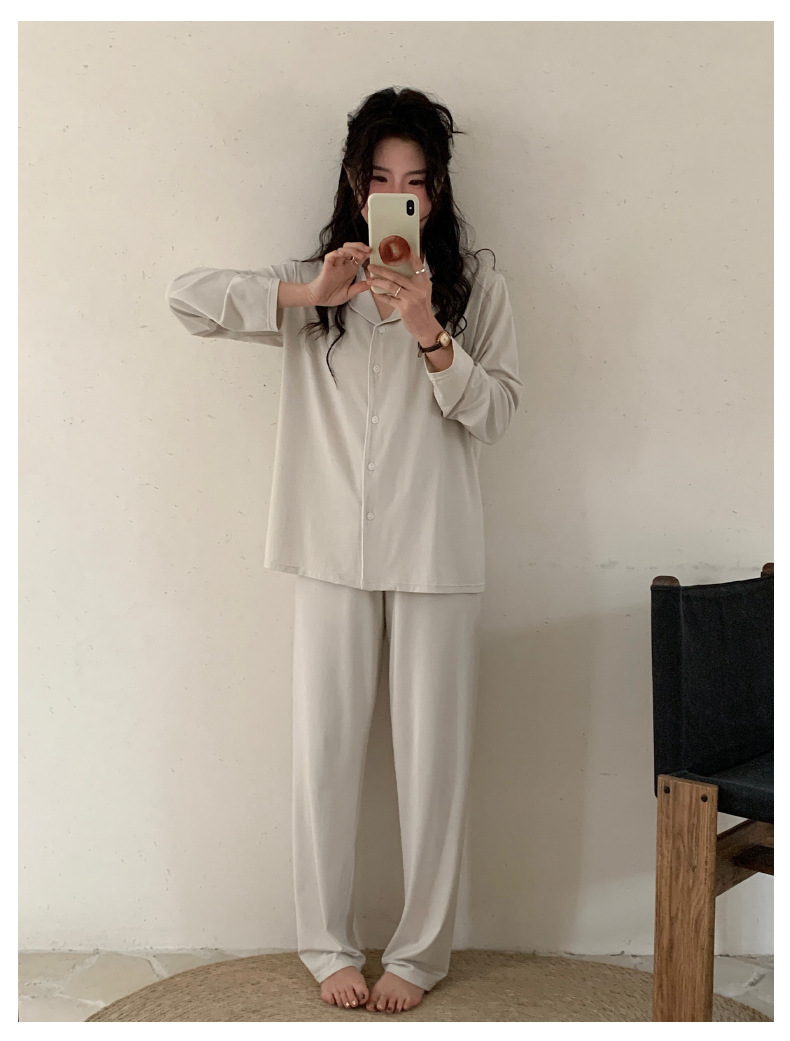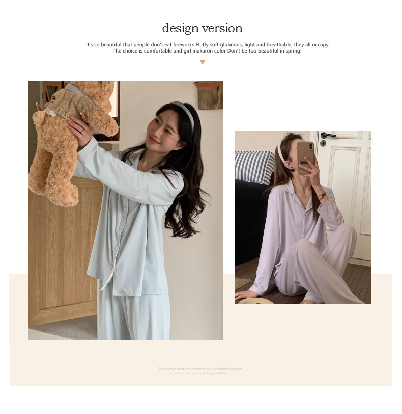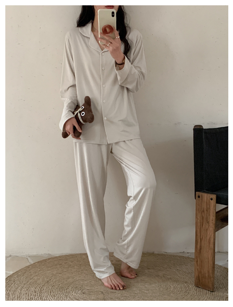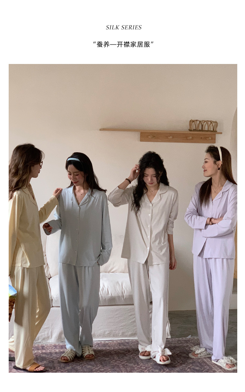 모리 아일랜드 실크 홈웨어 여성의 봄과 여름 2025 새로운 버튼 긴 소매 파자마 솔리드 컬러 외부 착용 느슨한 세트