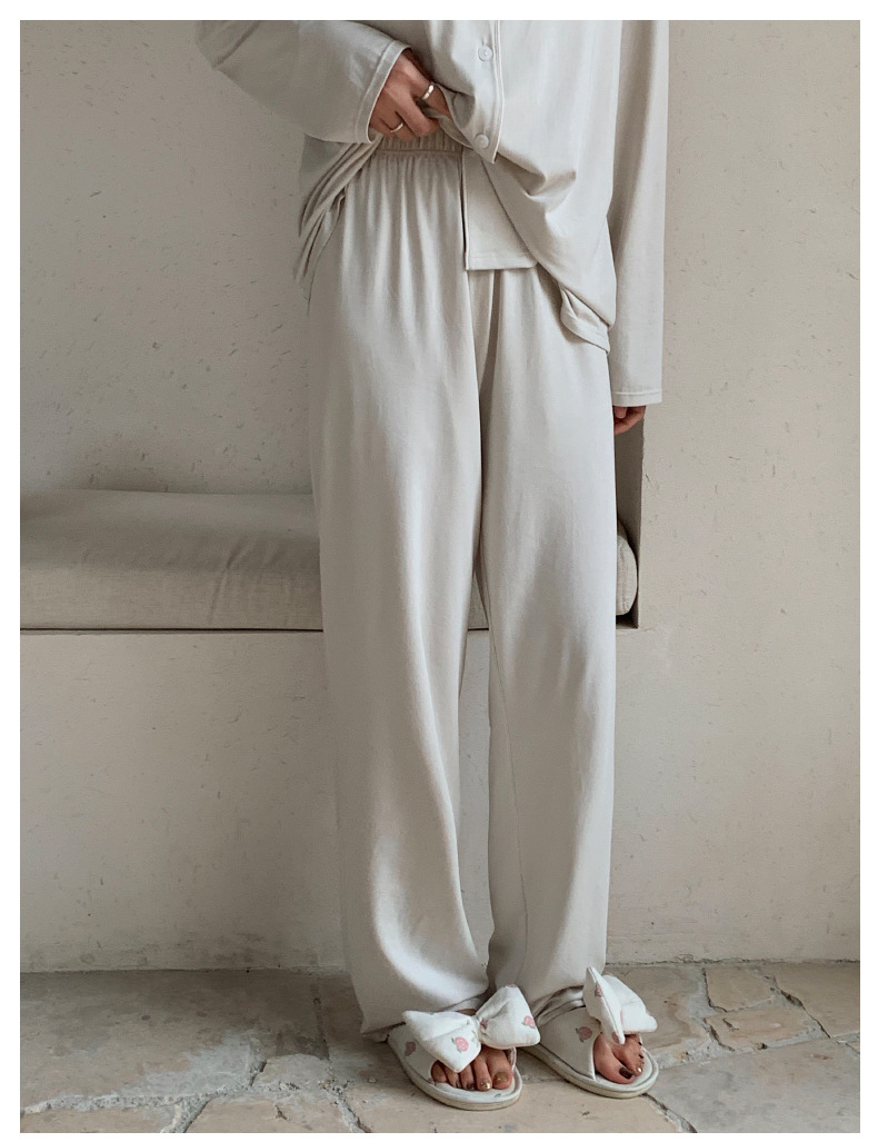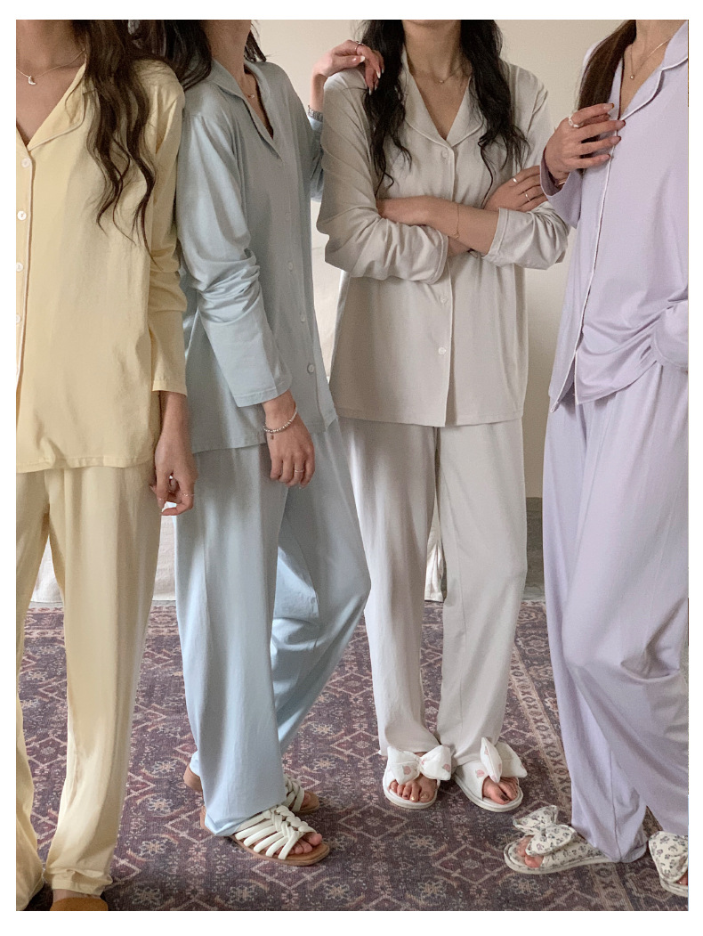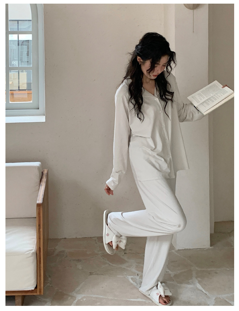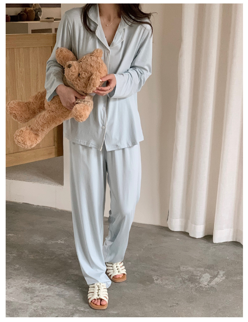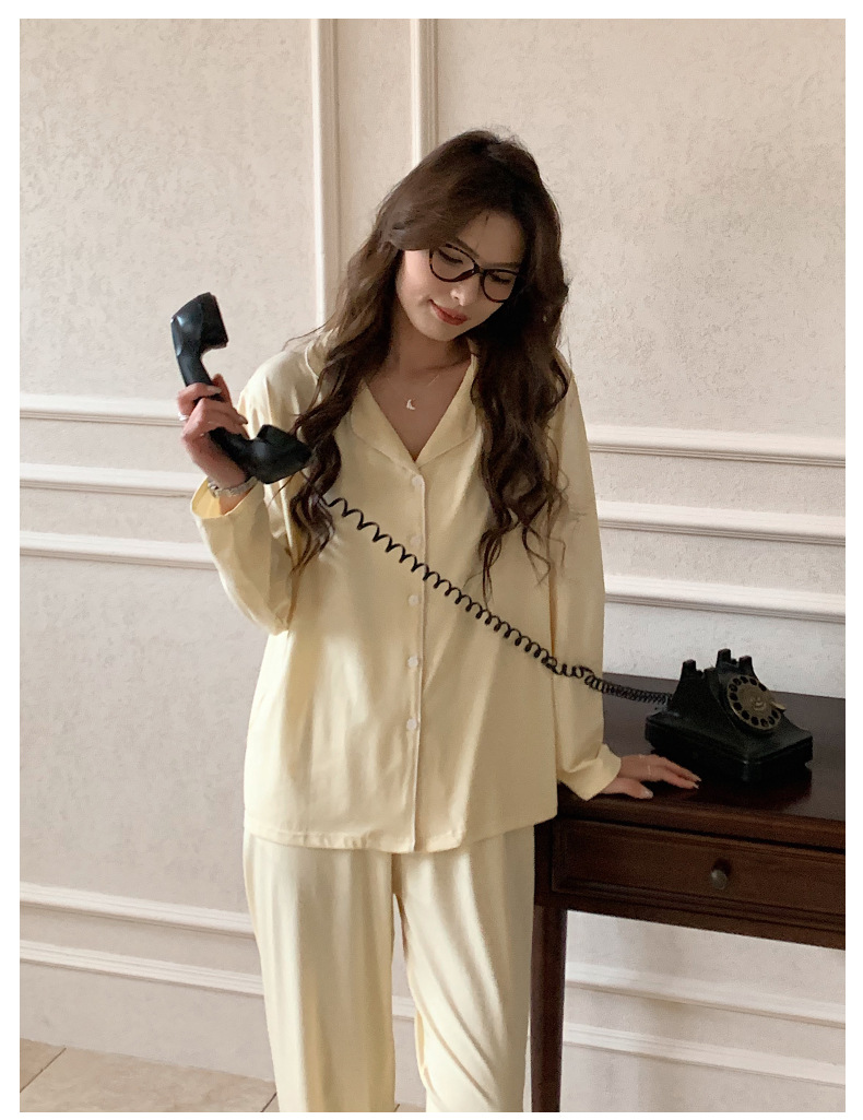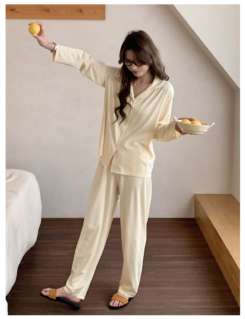 모리 아일랜드 실크 홈웨어 여성의 봄과 여름 2025 새로운 버튼 긴 소매 파자마 솔리드 컬러 외부 착용 느슨한 세트