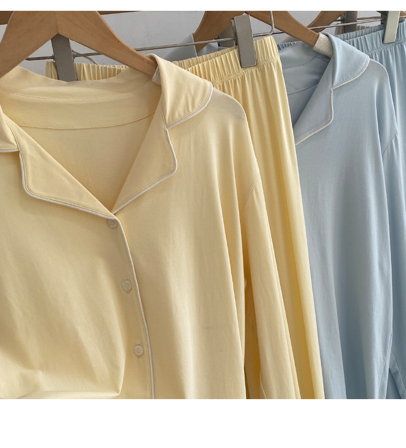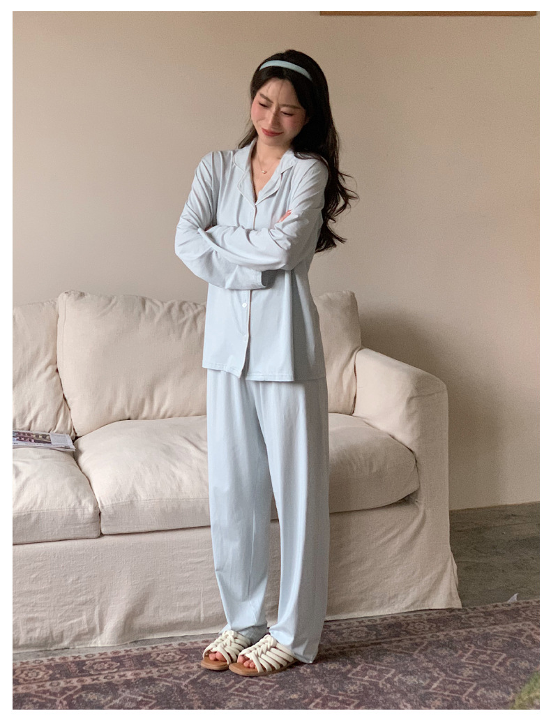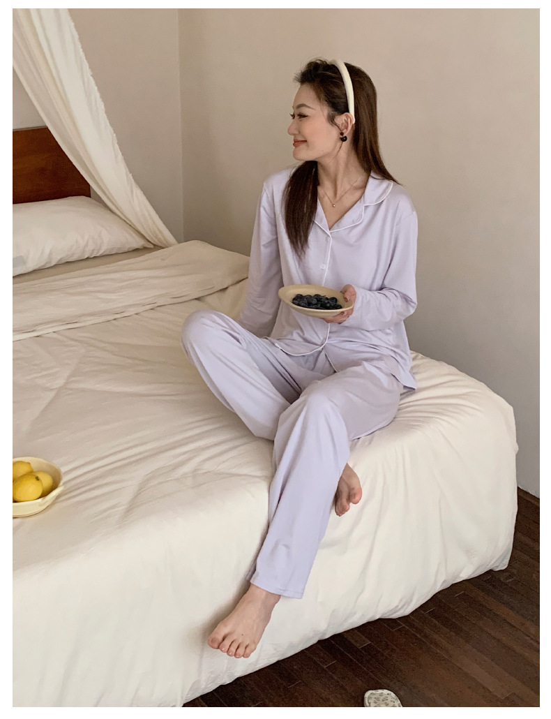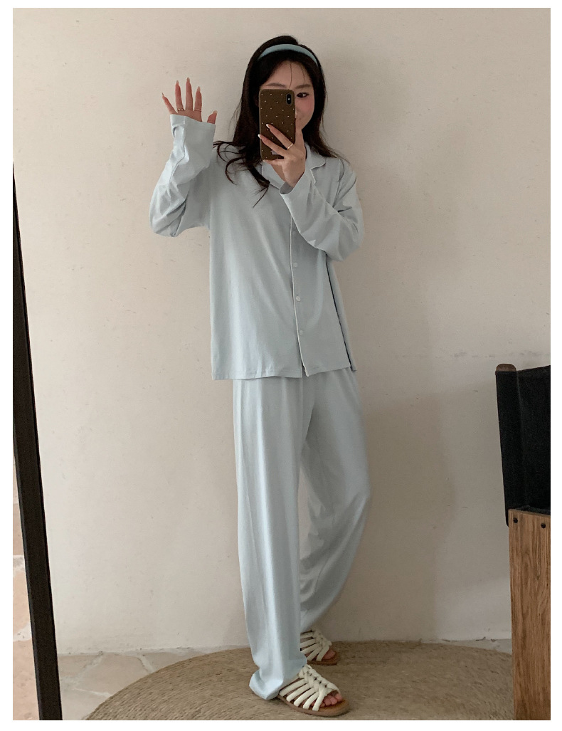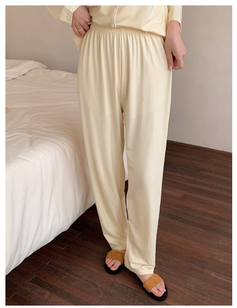 모리 아일랜드 실크 홈웨어 여성의 봄과 여름 2025 새로운 버튼 긴 소매 파자마 솔리드 컬러 외부 착용 느슨한 세트