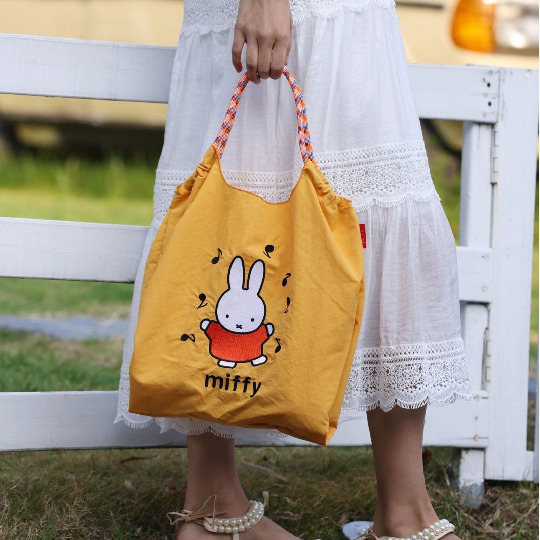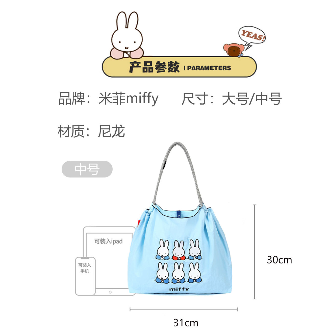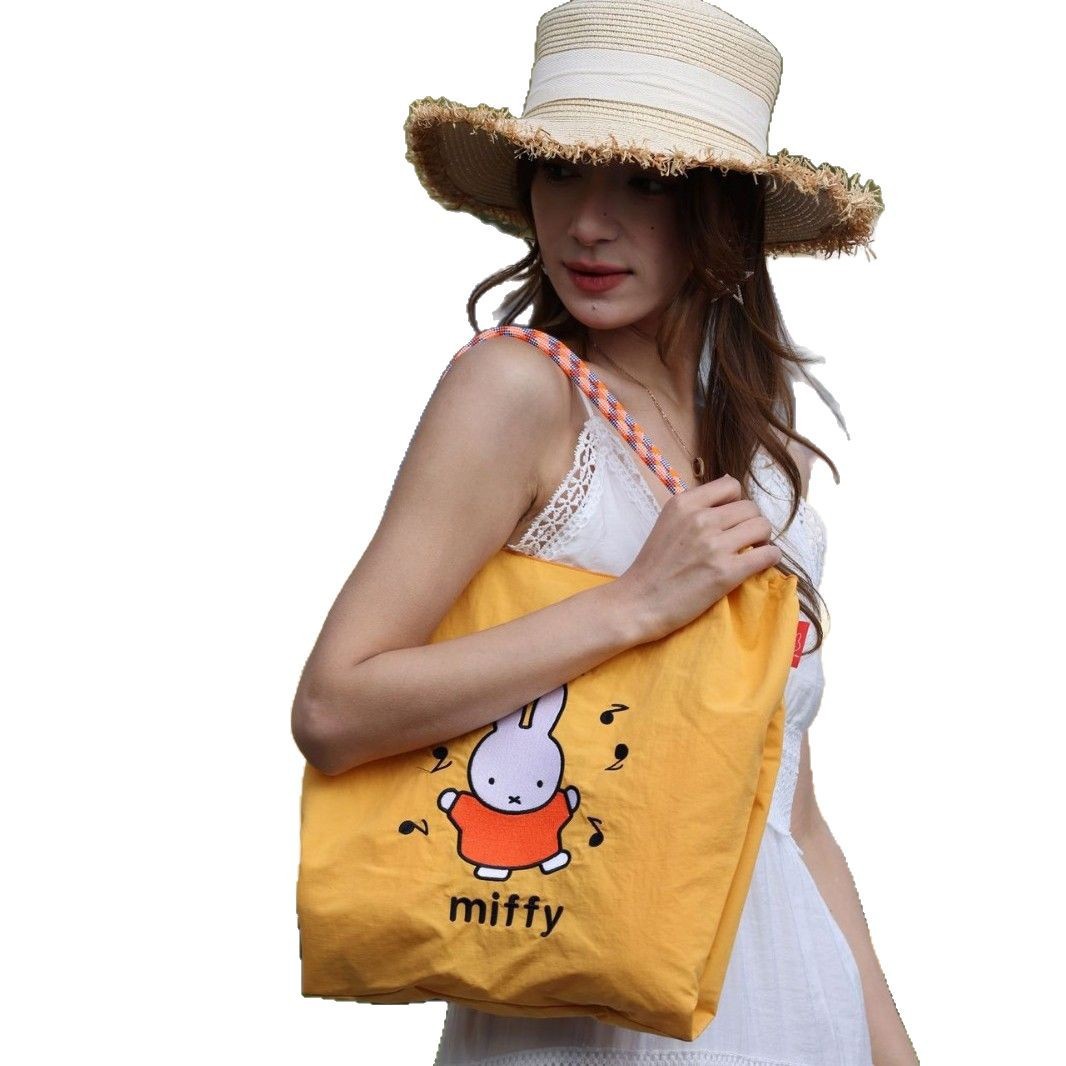 미피 토끼 가방 대용량 토트 백 여성용 가방 어깨 가방 휴대용 사첼 자수 미피 나일론 가방 여성용
