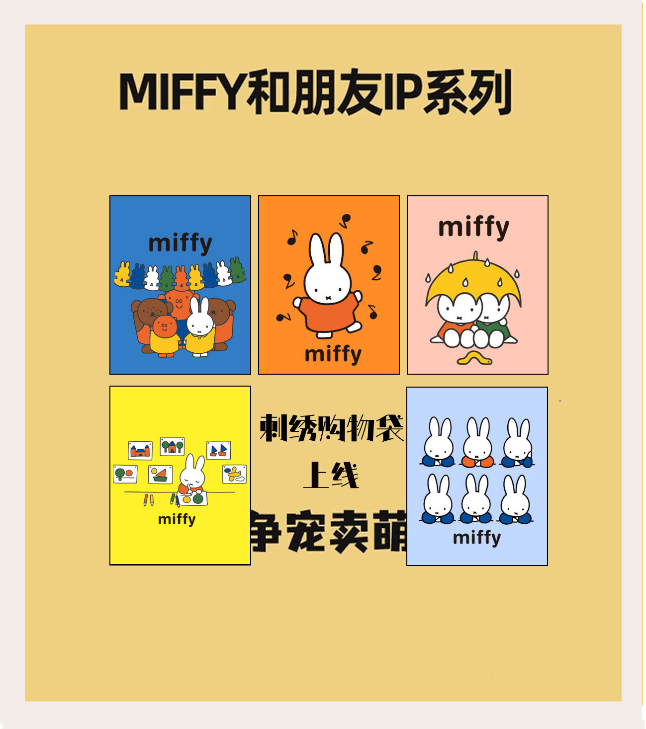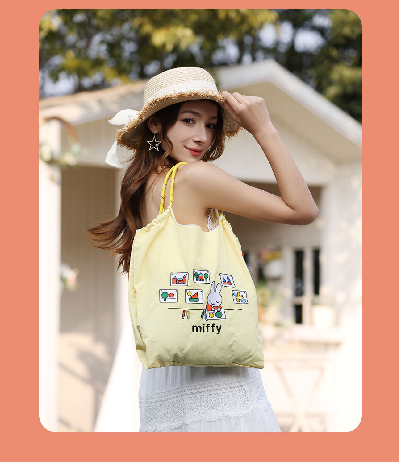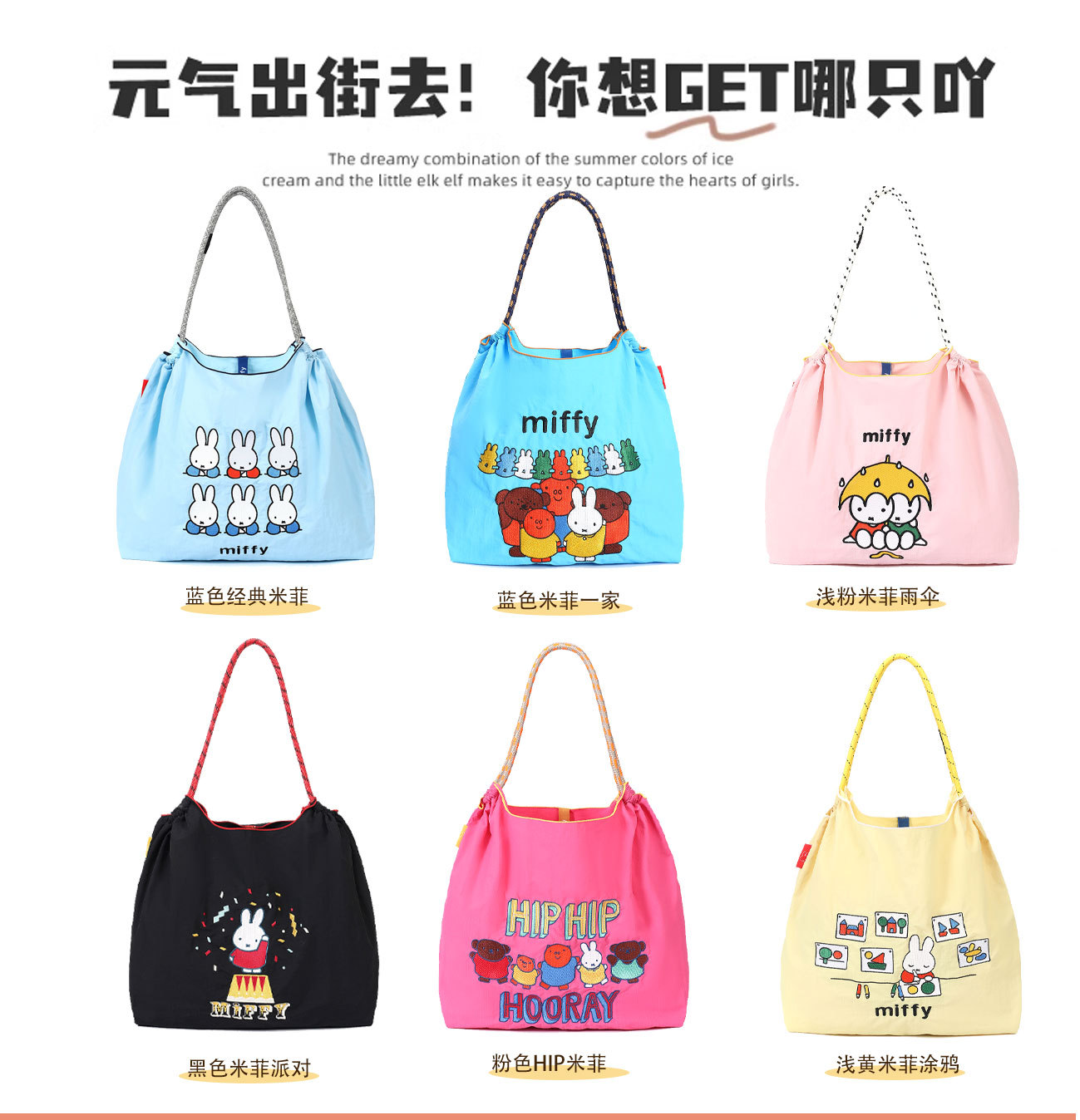 미피 토끼 가방 대용량 토트 백 여성용 가방 어깨 가방 휴대용 사첼 자수 미피 나일론 가방 여성용