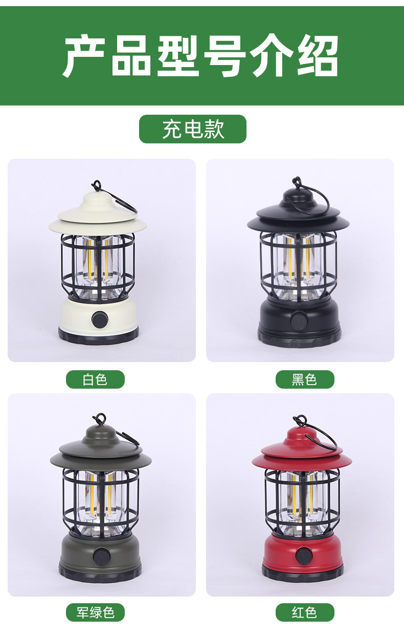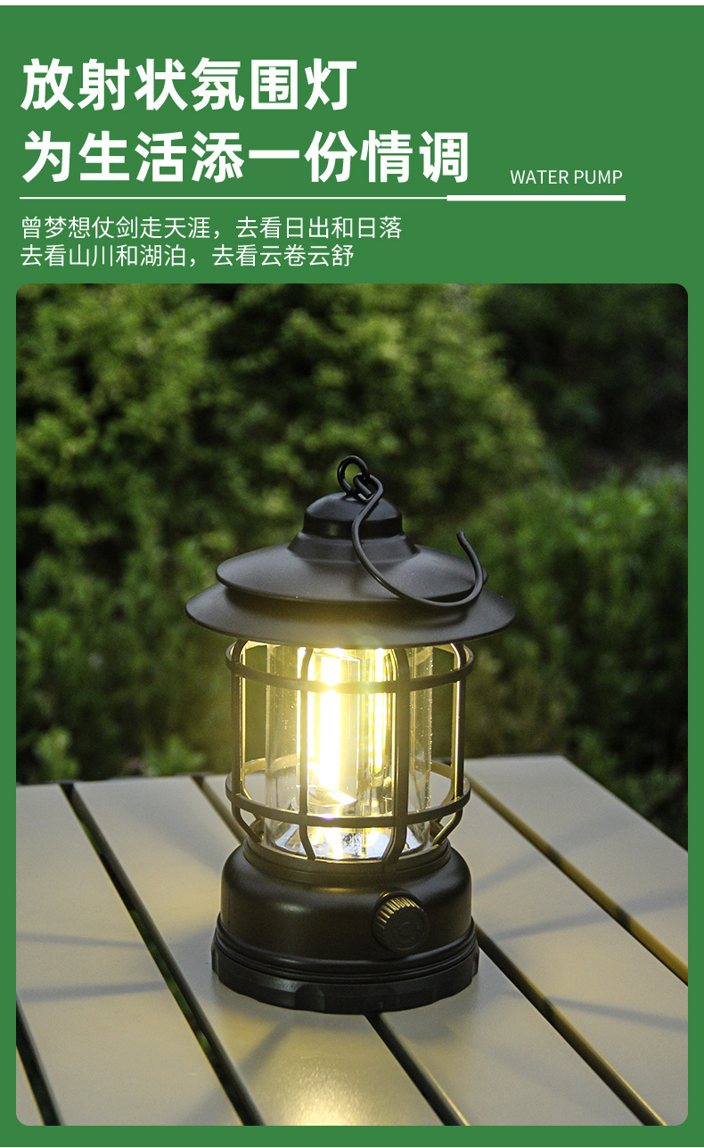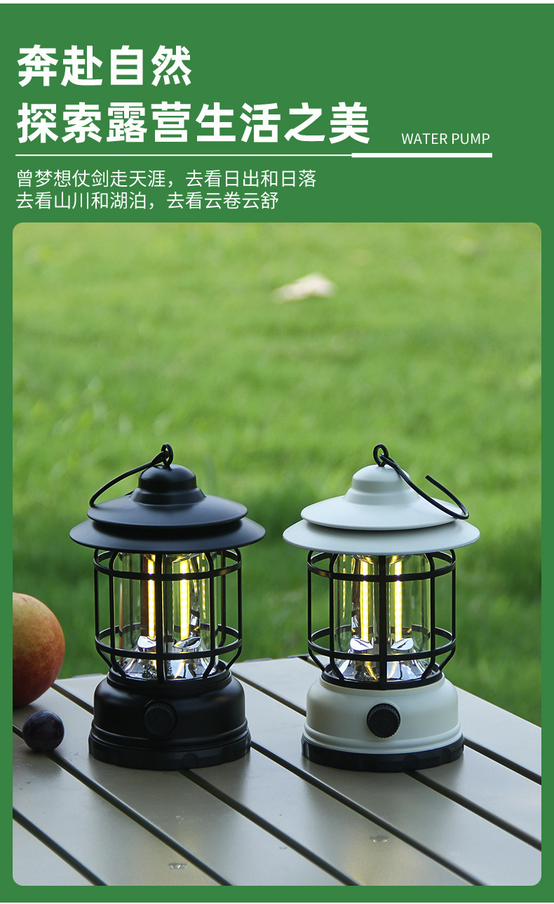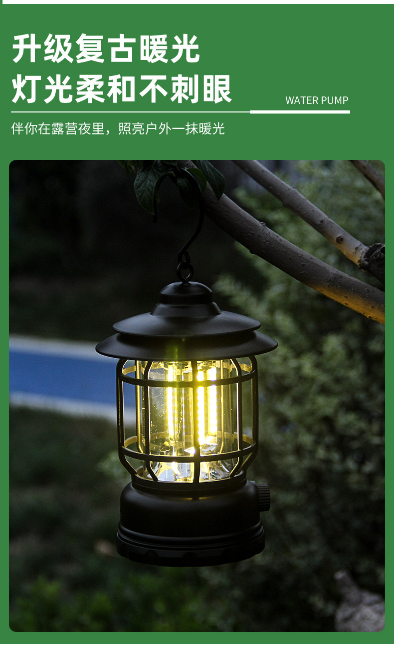 크로스 국경 레트로 야외 캠핑 라이트 LED 충전식 휴대용 조명 휴대용 캠핑 텐트 대기 등