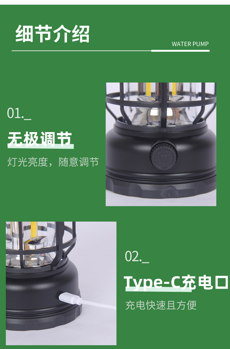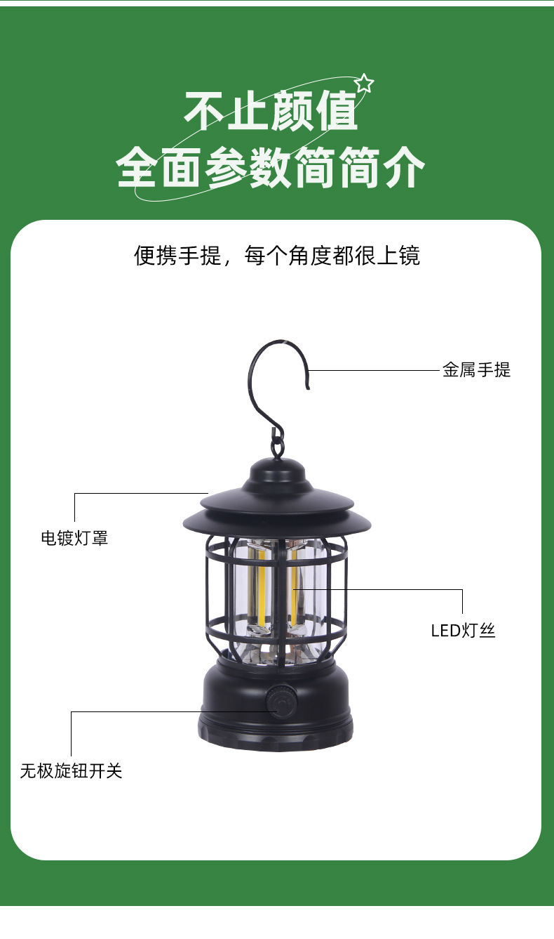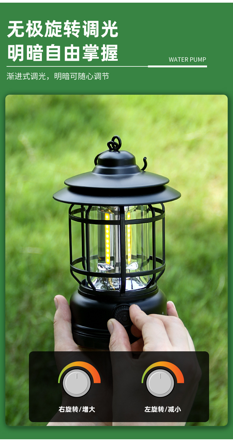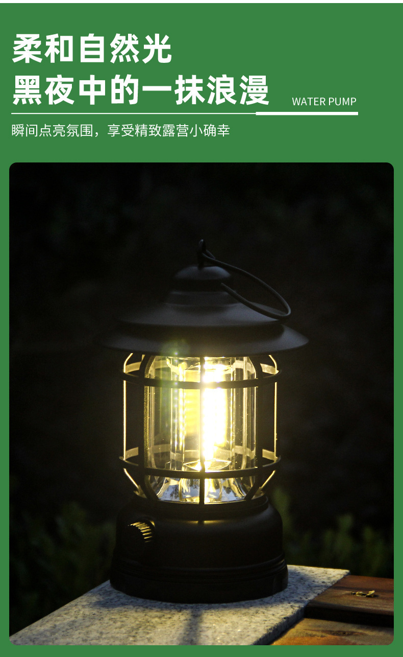크로스 국경 레트로 야외 캠핑 라이트 LED 충전식 휴대용 조명 휴대용 캠핑 텐트 대기 등