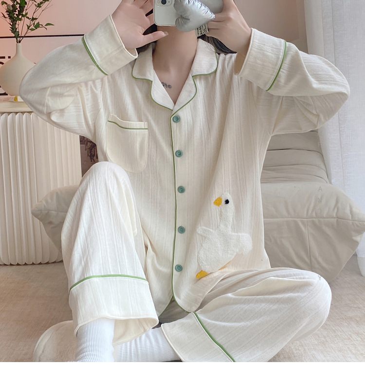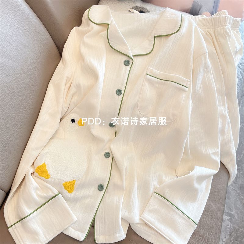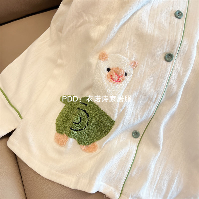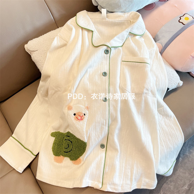 원래 공장에서 제작된 귀여운 알파카 여성용 긴팔 잠옷, 봄, 가을용 심플한 인터넷 스타 스타일, 학생들이 외출복으로 입을 수 있는 홈웨어