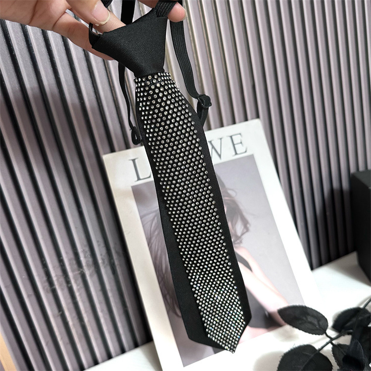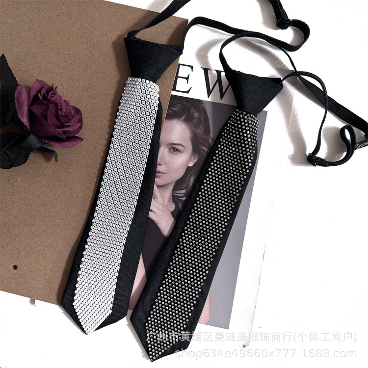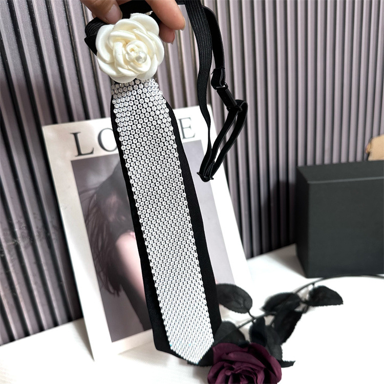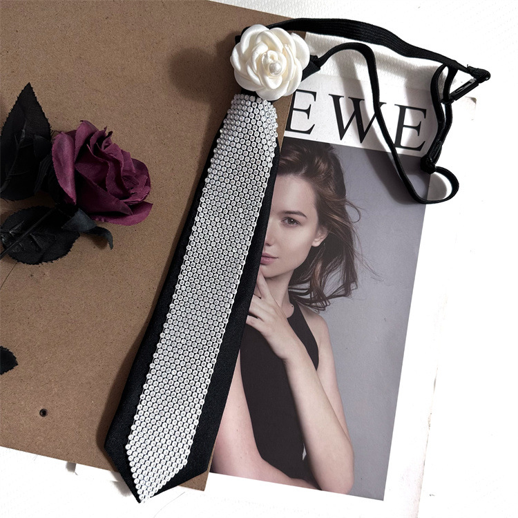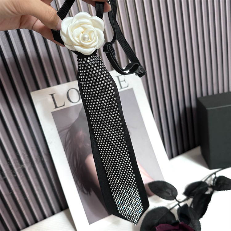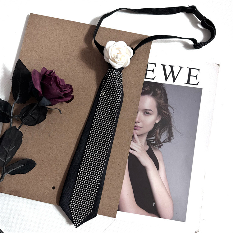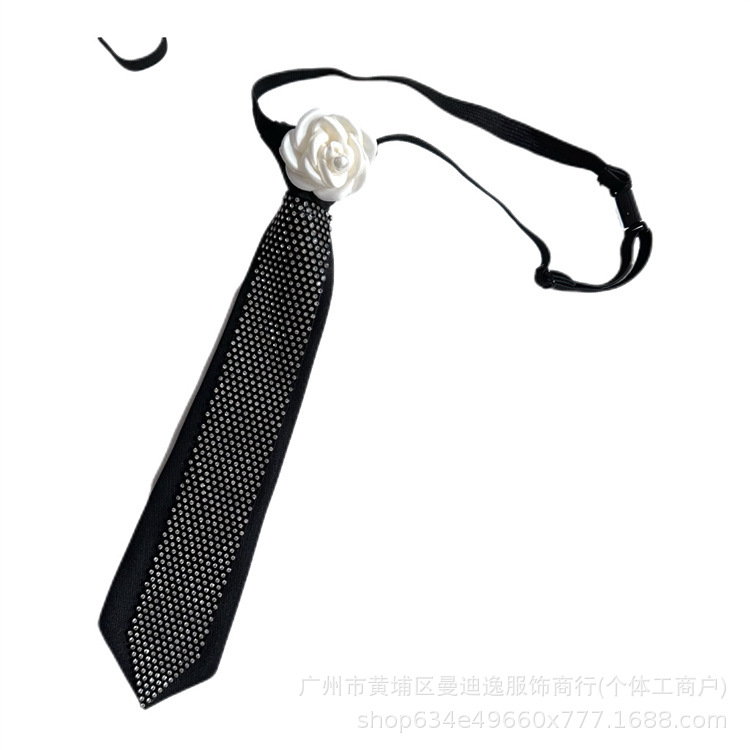 Jk 틈새 넥타이 블랙 여성 대학 스타일 유니폼 라인석 동백 꽃 무료 셔츠 액세서리 장식 소녀