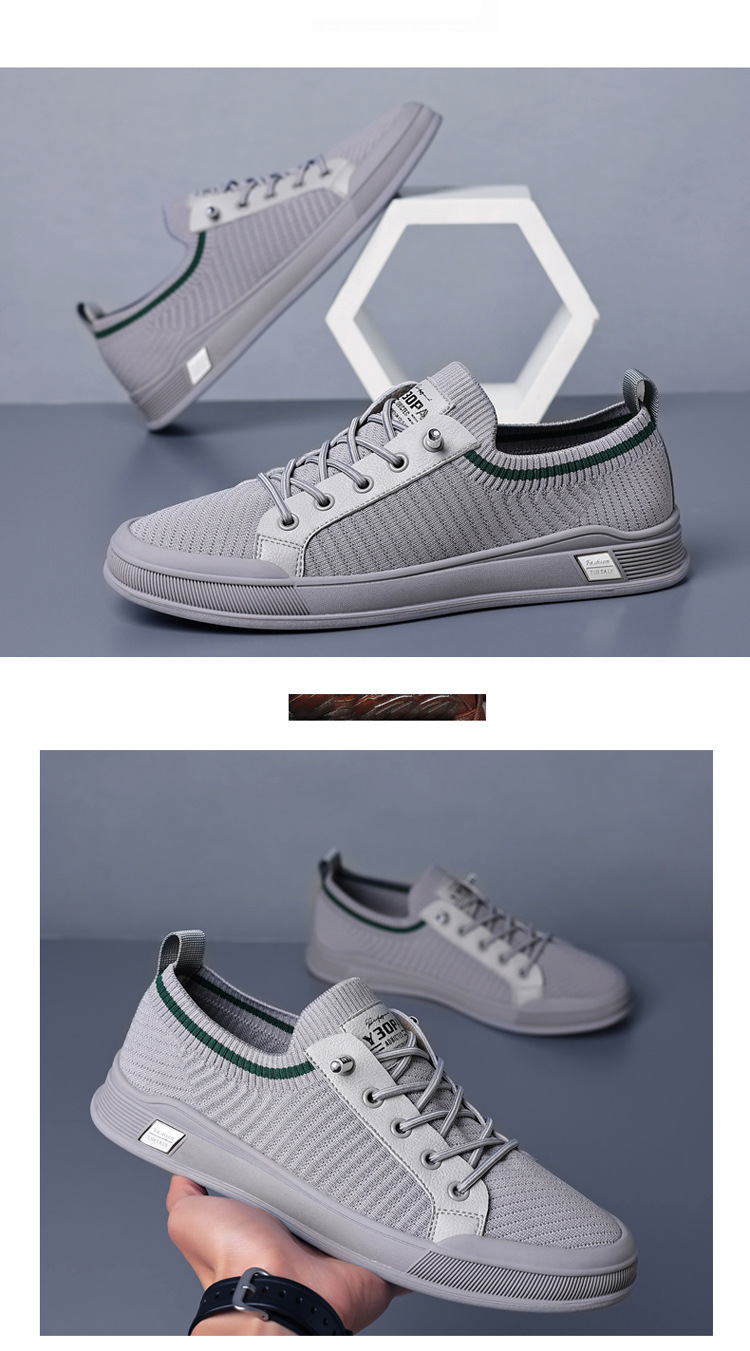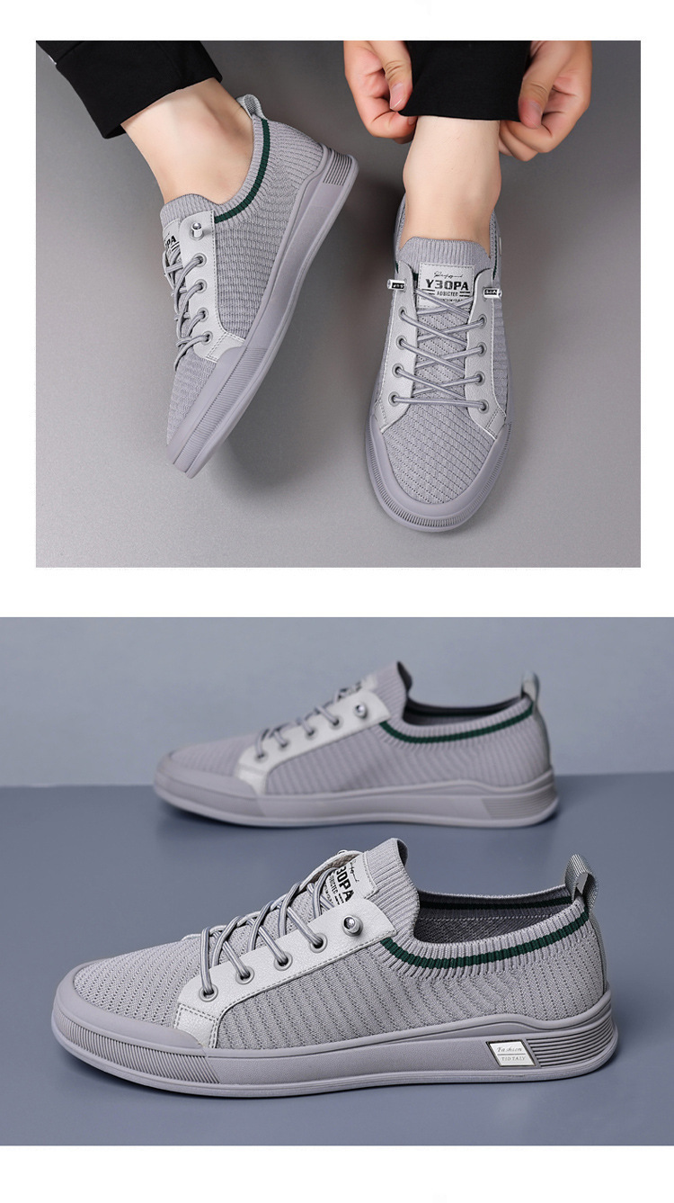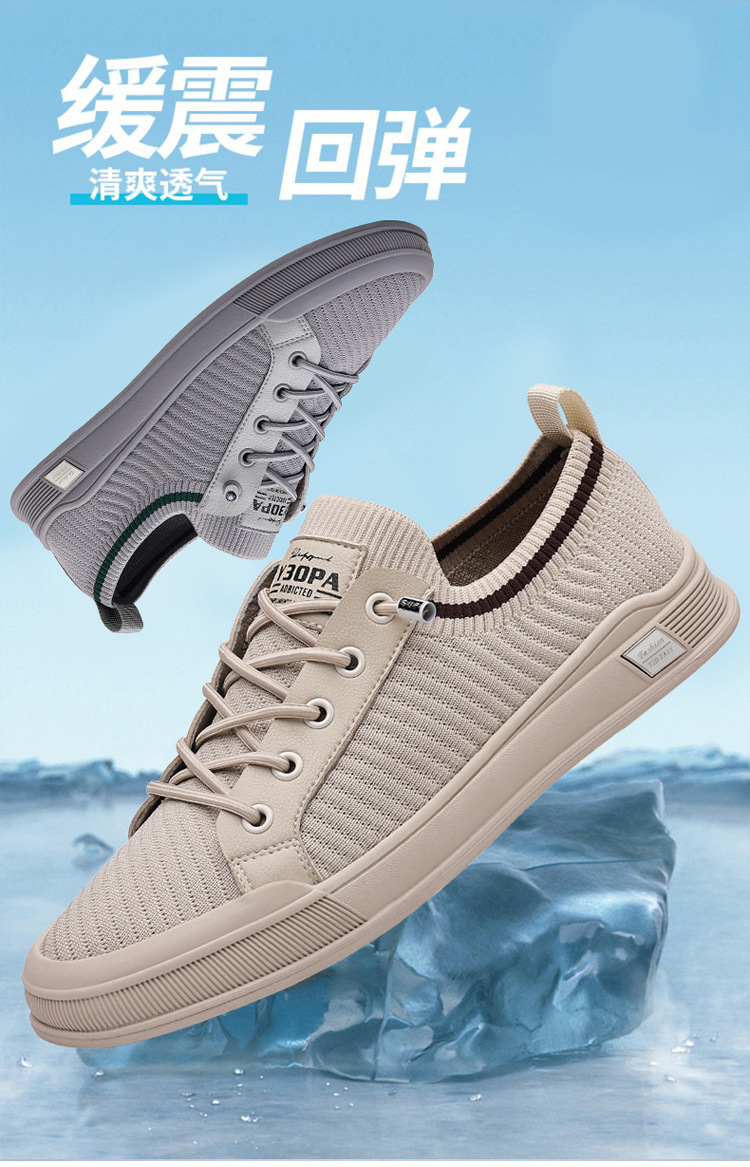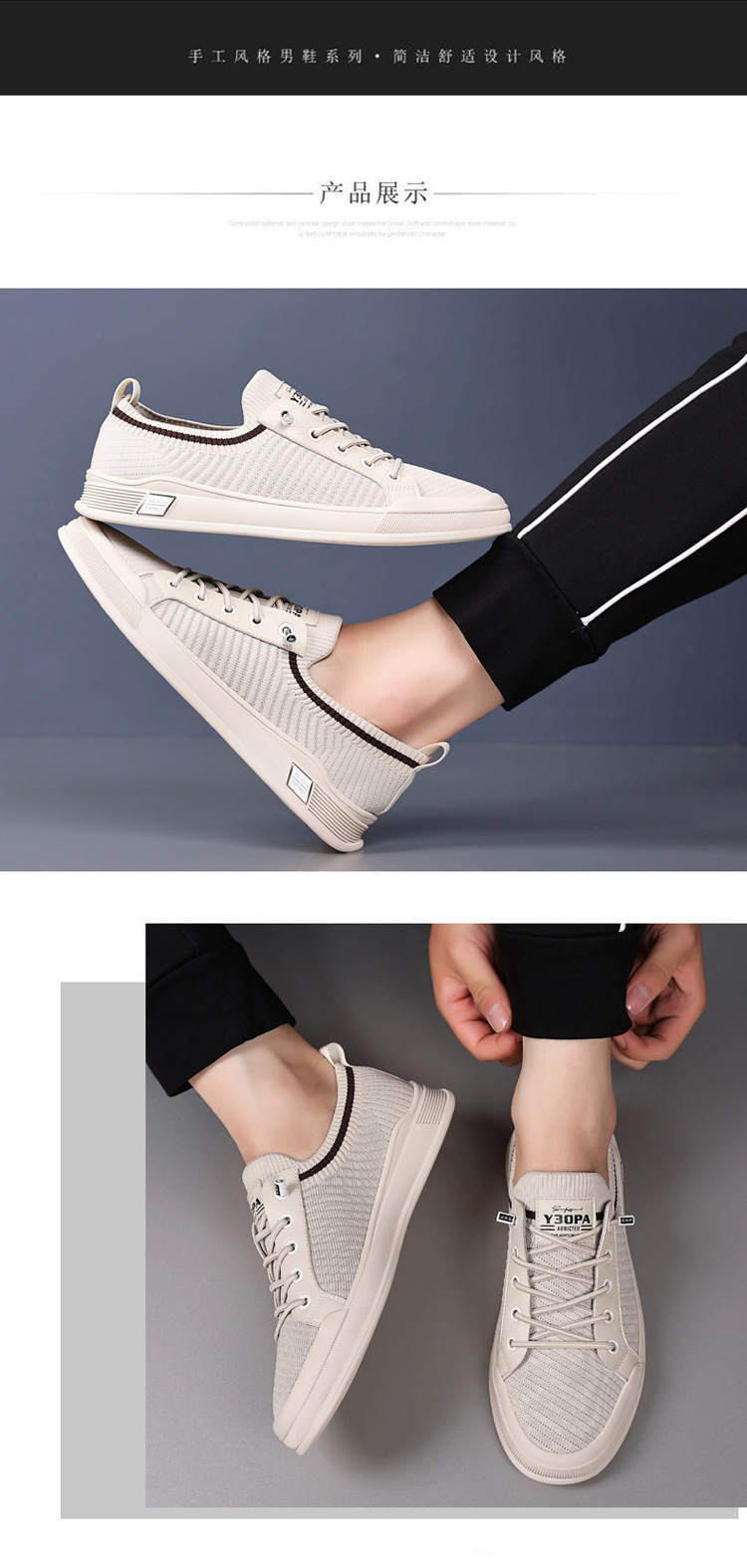 남성용 화이트 슈즈, 다용도, 메쉬 소재, 얕은 입구, 통기성, 플라이 니트 슈즈, 패셔너블한 소프트 솔, 캐주얼 슈즈, 남성용 신발, 편안하고 다용도