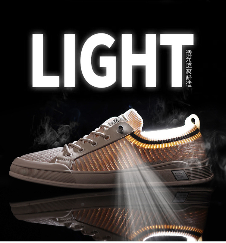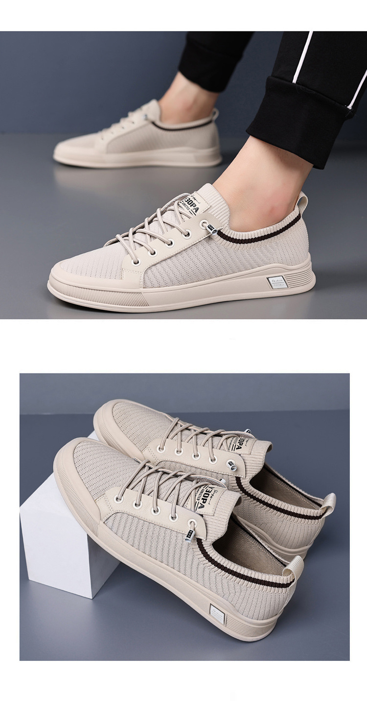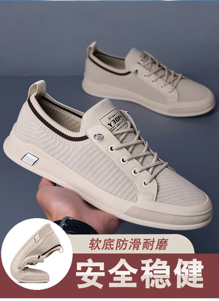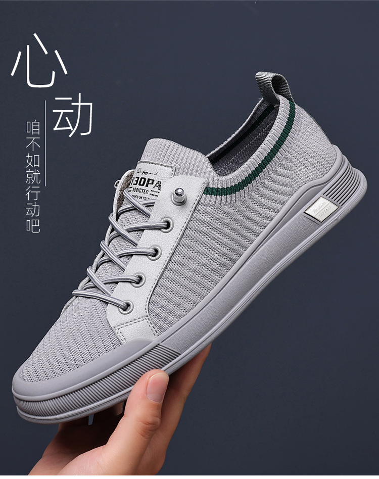 남성용 화이트 슈즈, 다용도, 메쉬 소재, 얕은 입구, 통기성, 플라이 니트 슈즈, 패셔너블한 소프트 솔, 캐주얼 슈즈, 남성용 신발, 편안하고 다용도