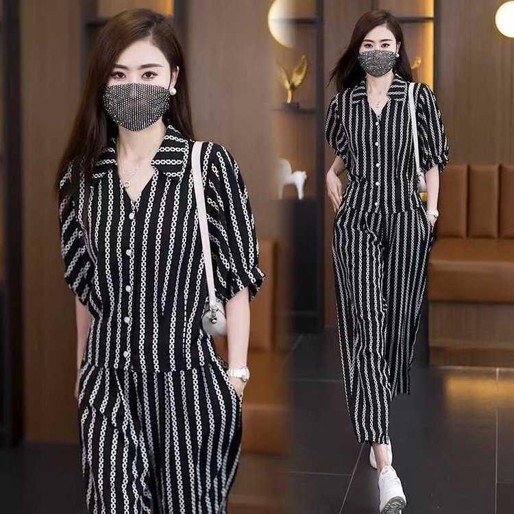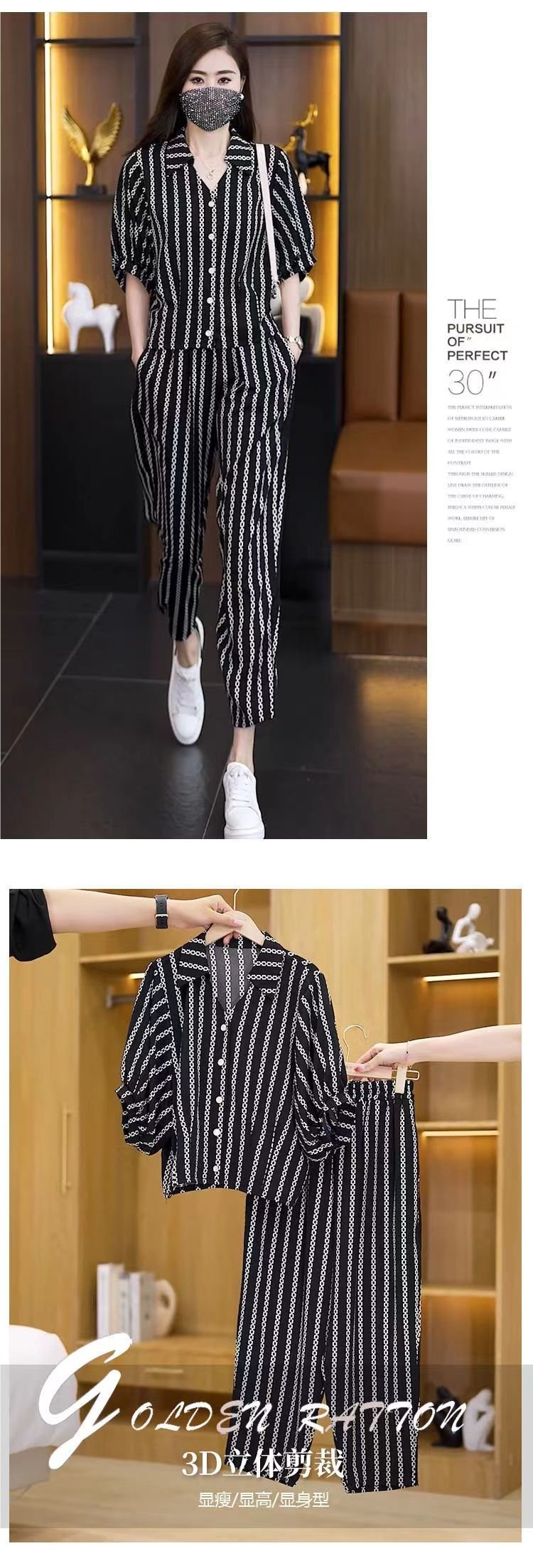 젊은 엄마의 하이 엔드 캐주얼 스포츠 세트 라이트 성숙한 스타일 여름 플러스 사이즈 여성 세련된 우아한 투피스 바지