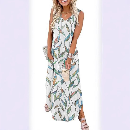 2025 크로스 국경 여름 원피스 슈퍼 롱 원피스 홀리데이 비치 휴가 휴가 원피스 포켓 아마존 독립 역