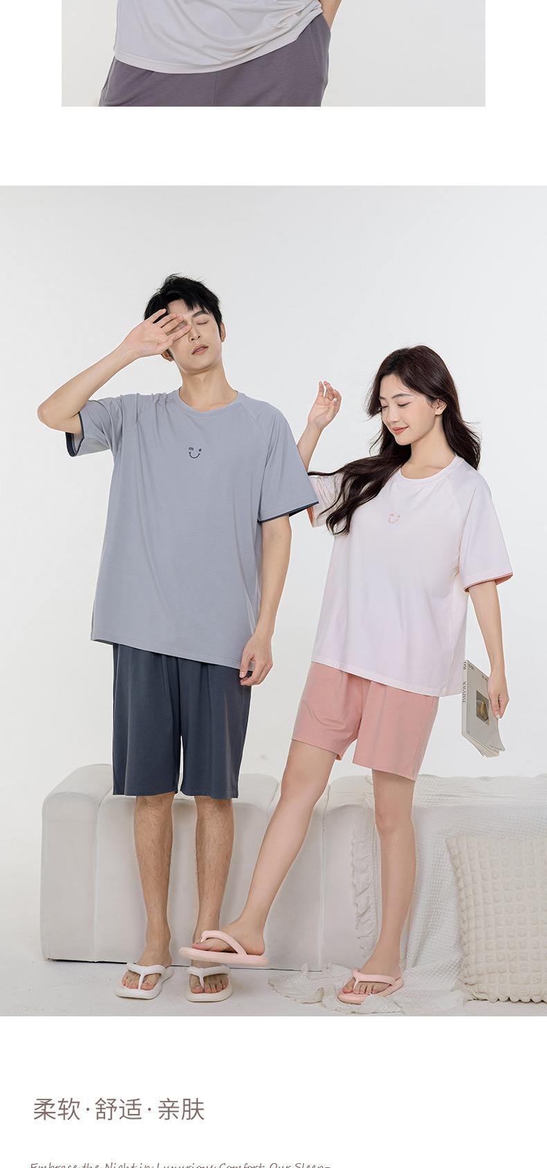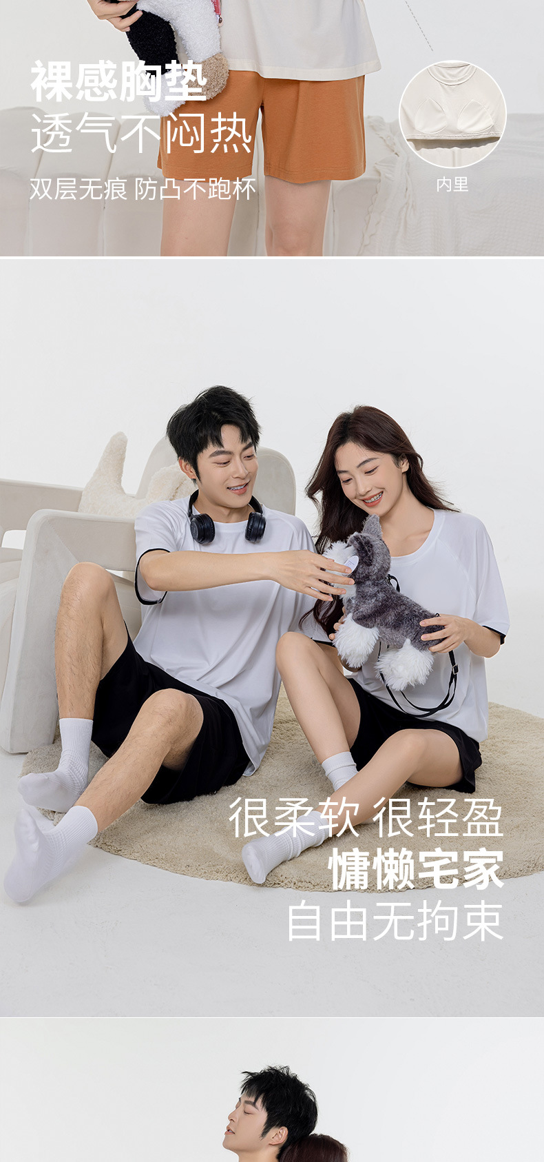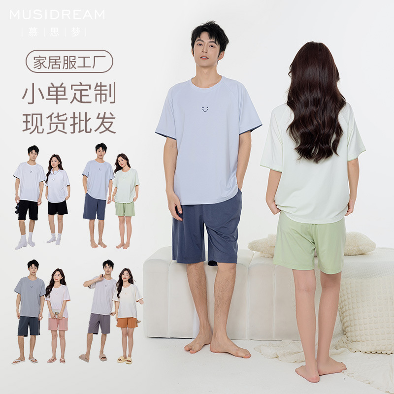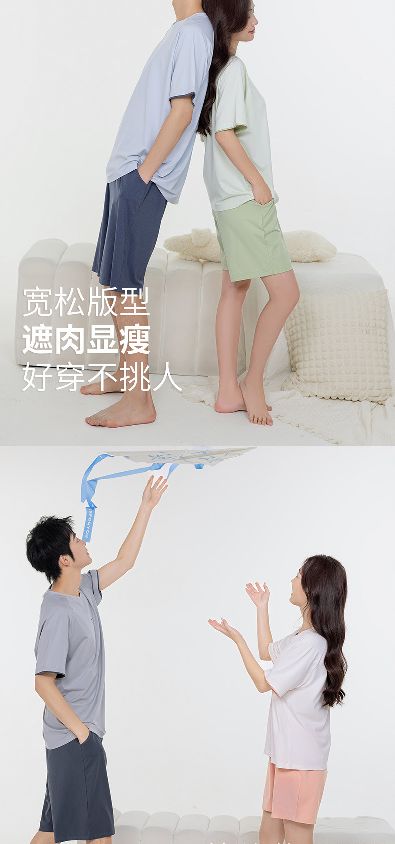 랑징 모달 잠옷 여름용 가슴 패드가 있는 반팔 반바지 캐주얼 루즈핏 커플 홈웨어 세트