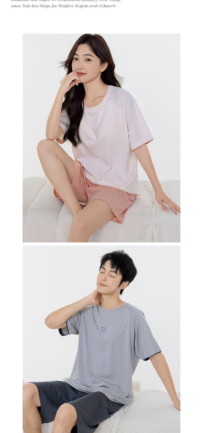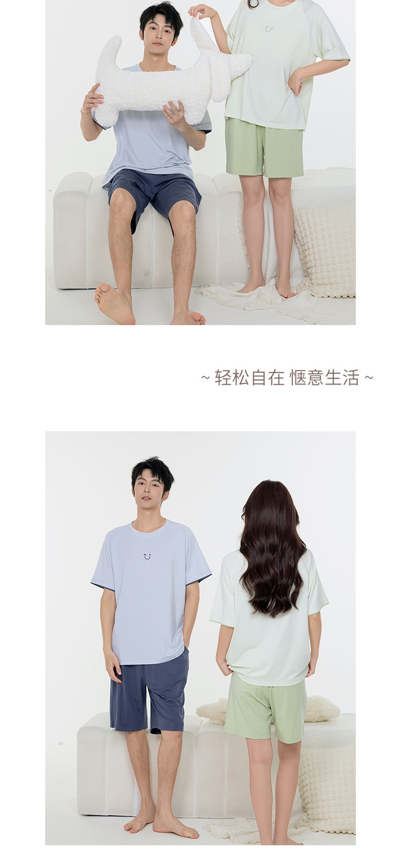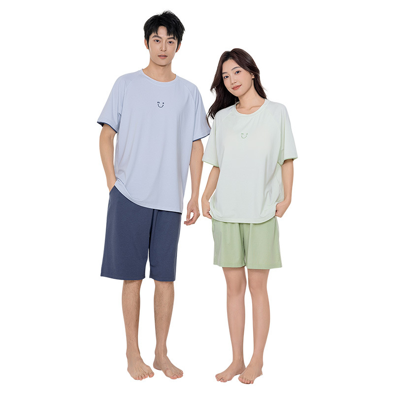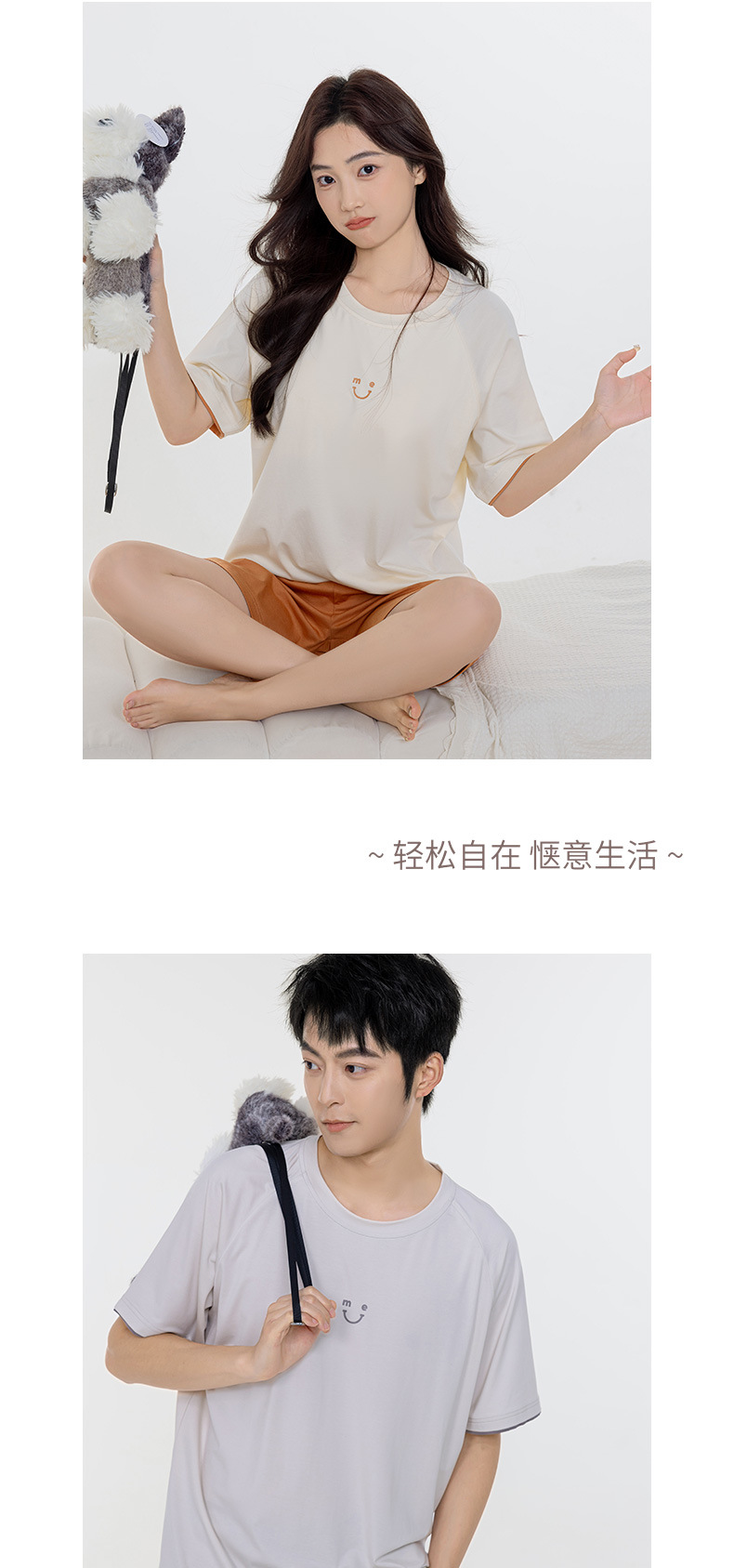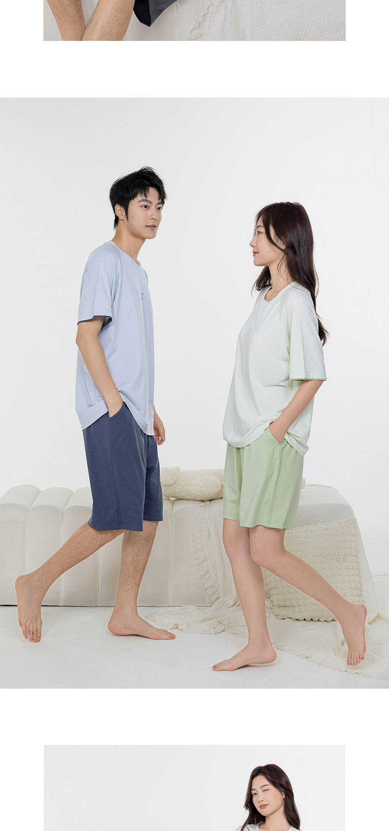 랑징 모달 잠옷 여름용 가슴 패드가 있는 반팔 반바지 캐주얼 루즈핏 커플 홈웨어 세트