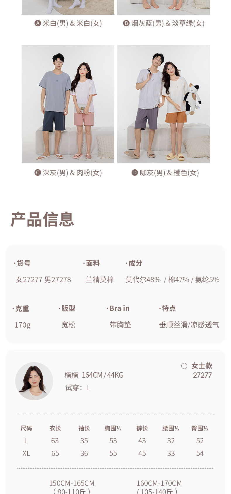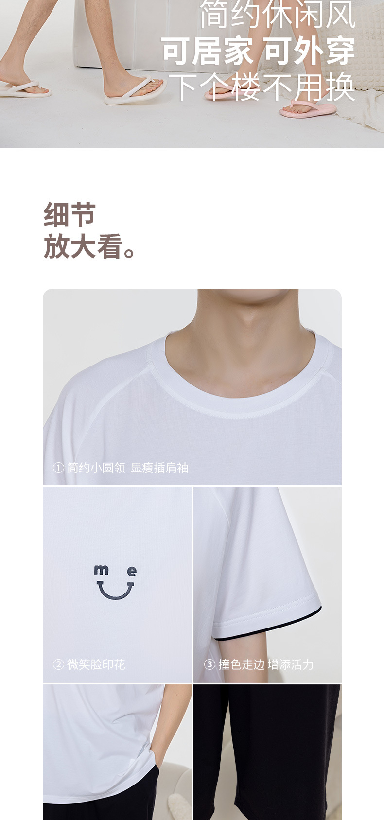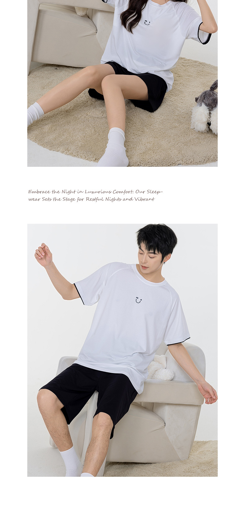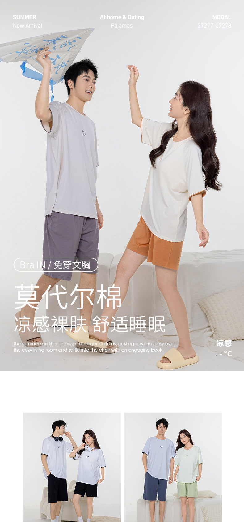 랑징 모달 잠옷 여름용 가슴 패드가 있는 반팔 반바지 캐주얼 루즈핏 커플 홈웨어 세트