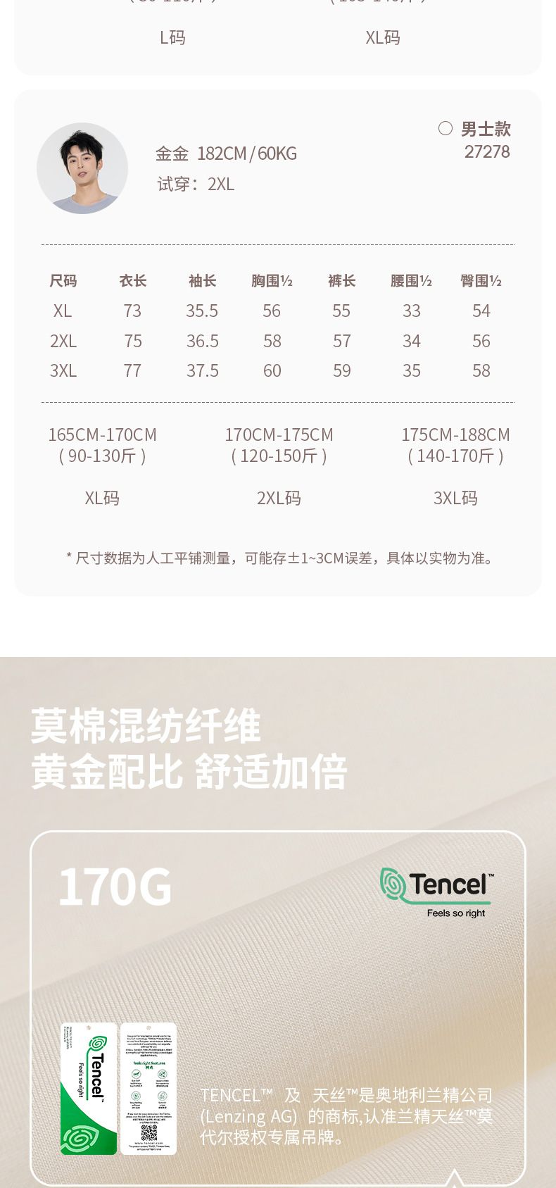 사이즈 추천표 [부드러움이 오래 지속되고, 맨살에 피부 친화적]