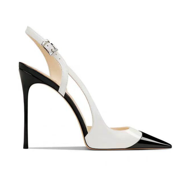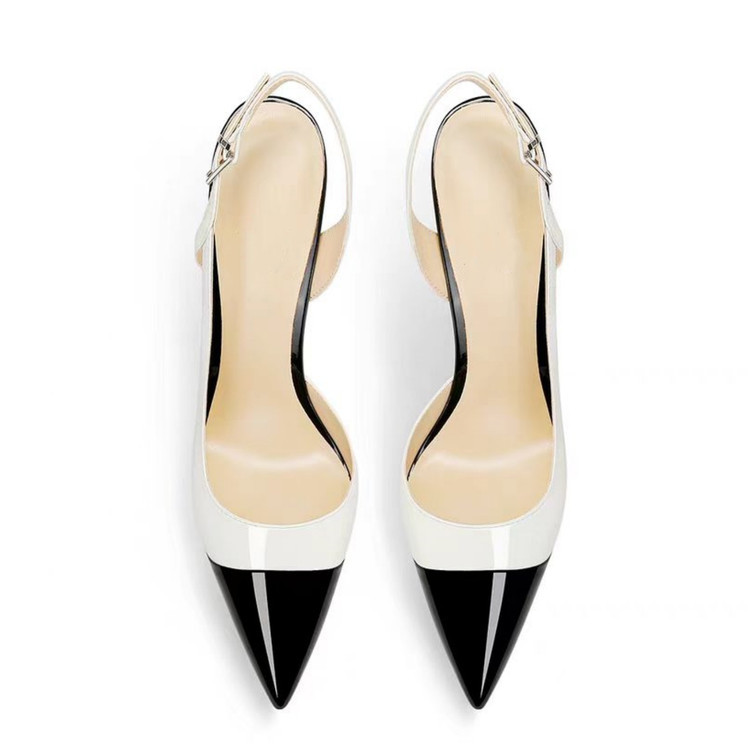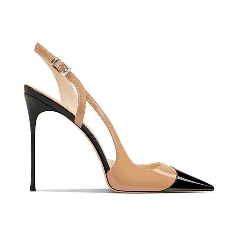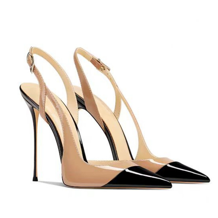 2025 년 봄 새로운 특허 가죽 컬러 블록 얕은 벨트 버클 슈퍼 하이힐 섹시 얇은 힐 리어 트립 샌들