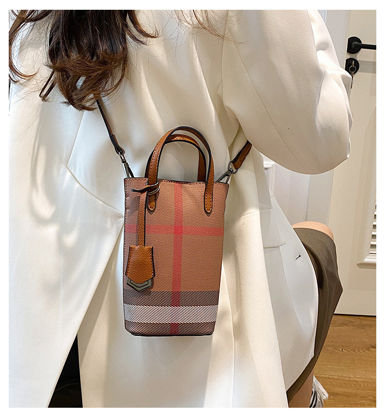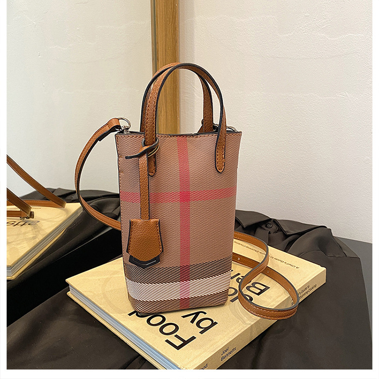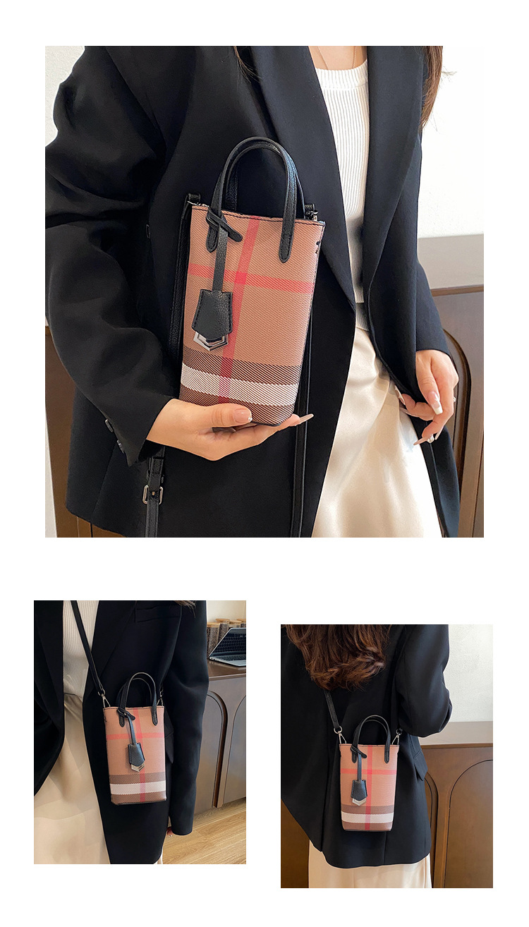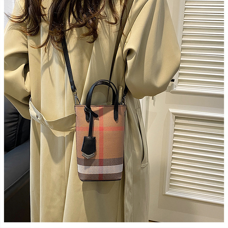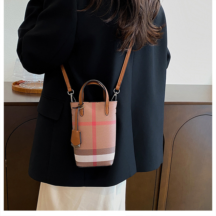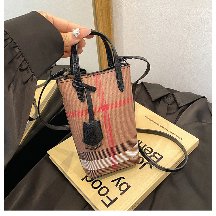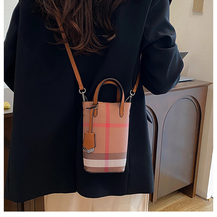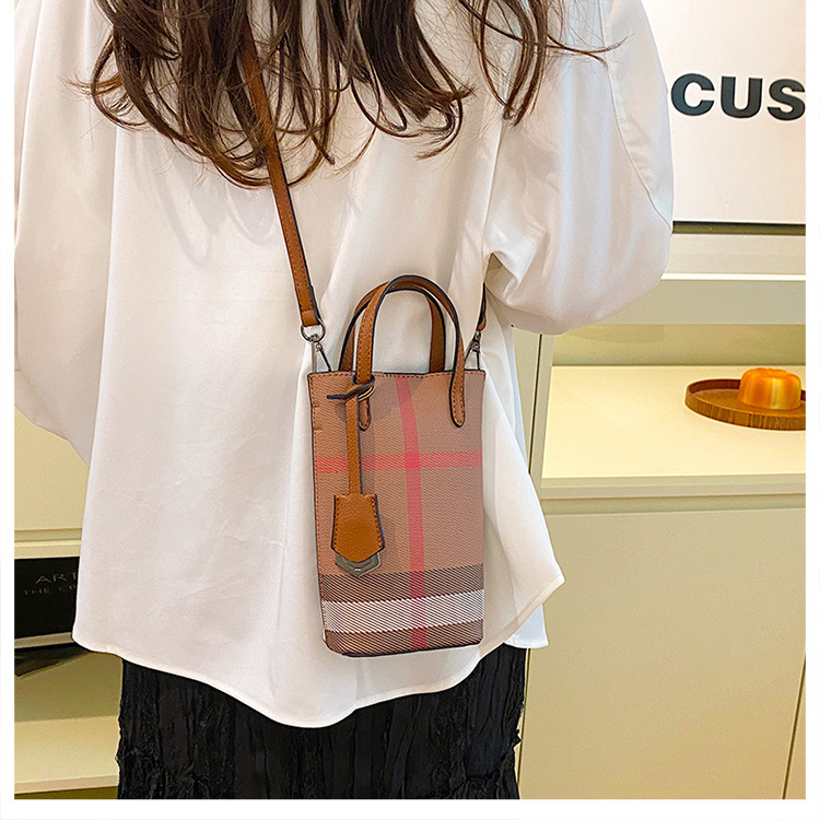 여성용 휴대 전화 가방 2025 새로운 경량 휴대용 격자 무늬 어깨 가방 여성용 틈새 하이 엔드 크로스 바디 작은 광장 가방 트렌디