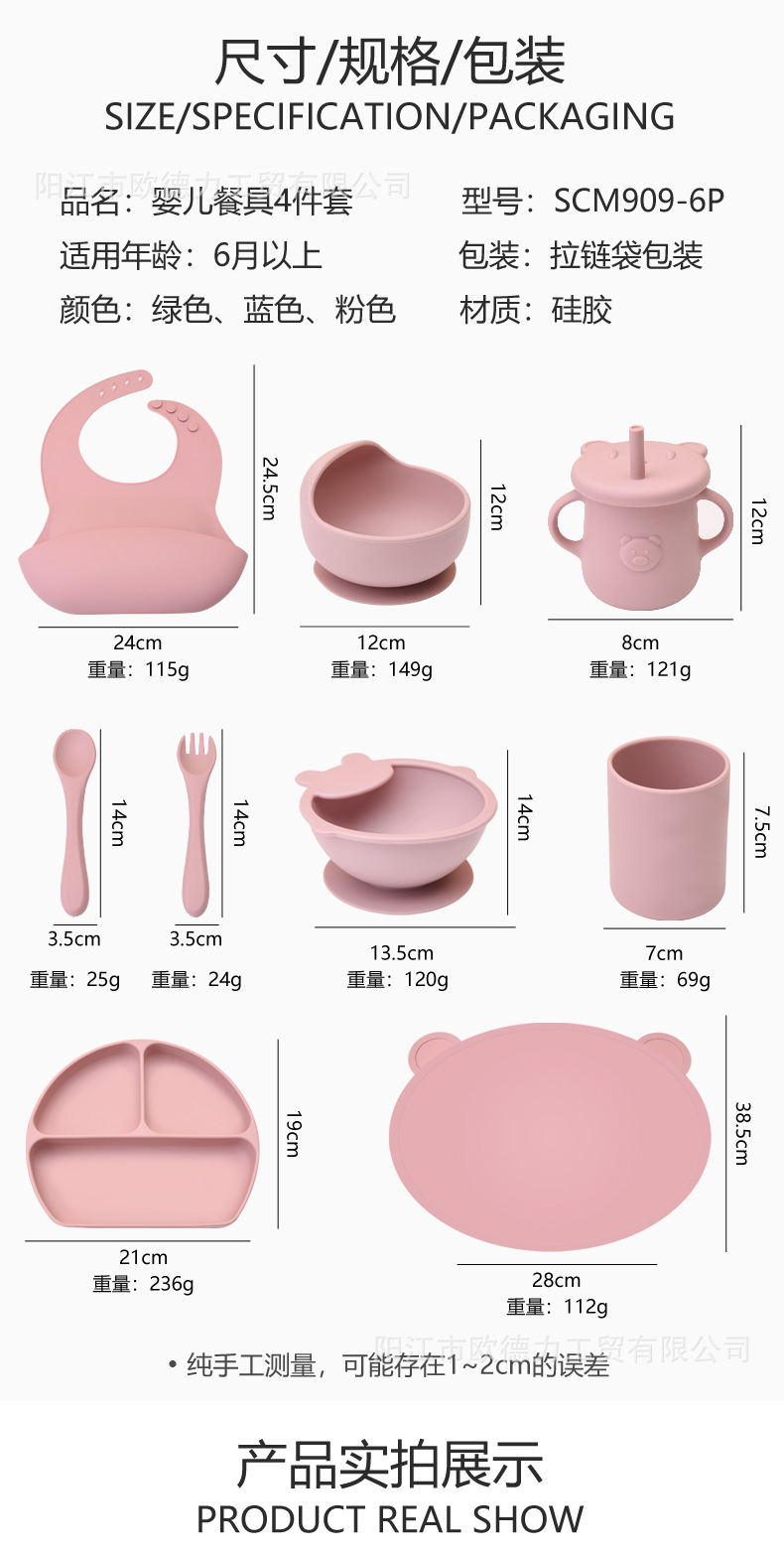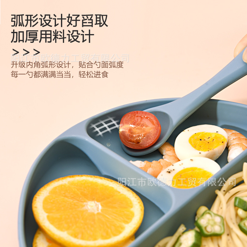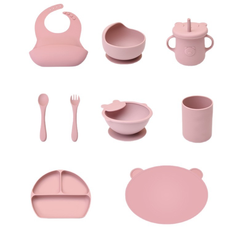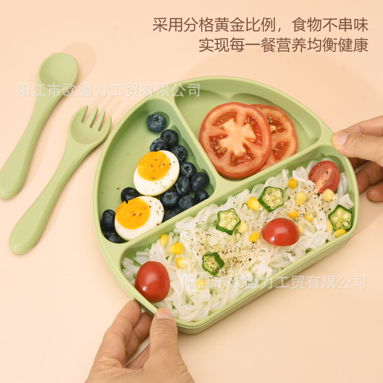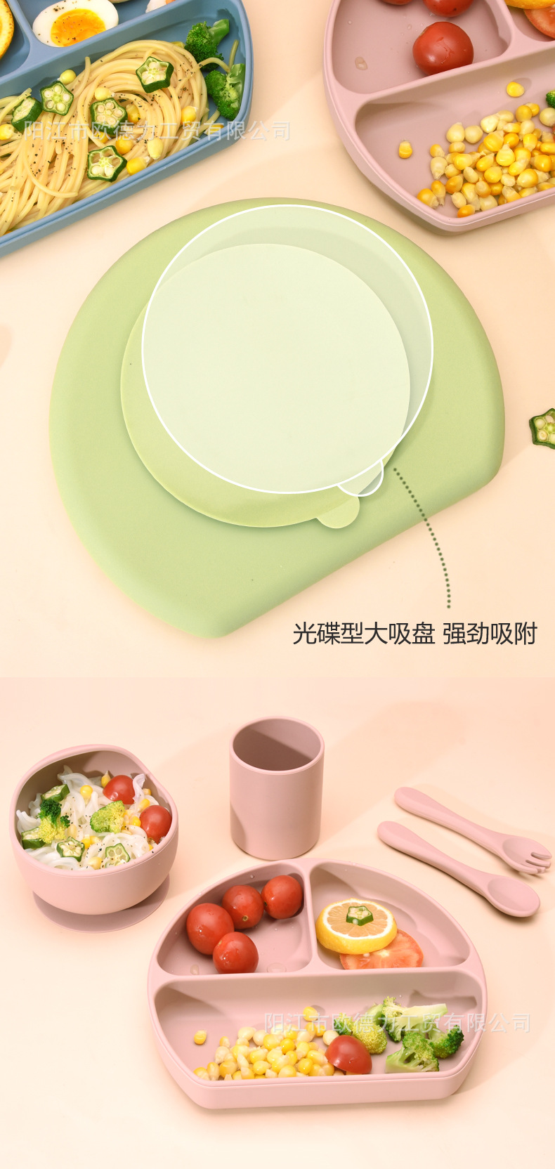 실리콘 아기 식기 7종 세트 식품 등급 어린이용 실리콘 분할 접시 턱받이 밥숟가락 낙하 방지 실리콘 그릇