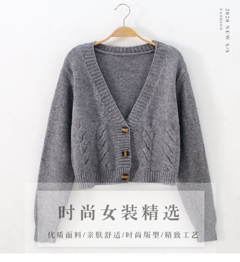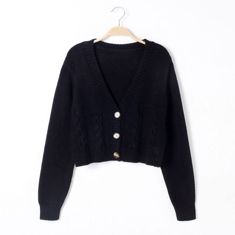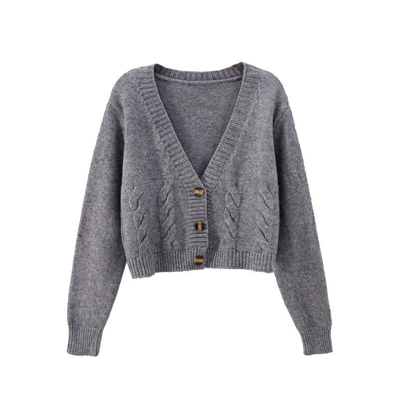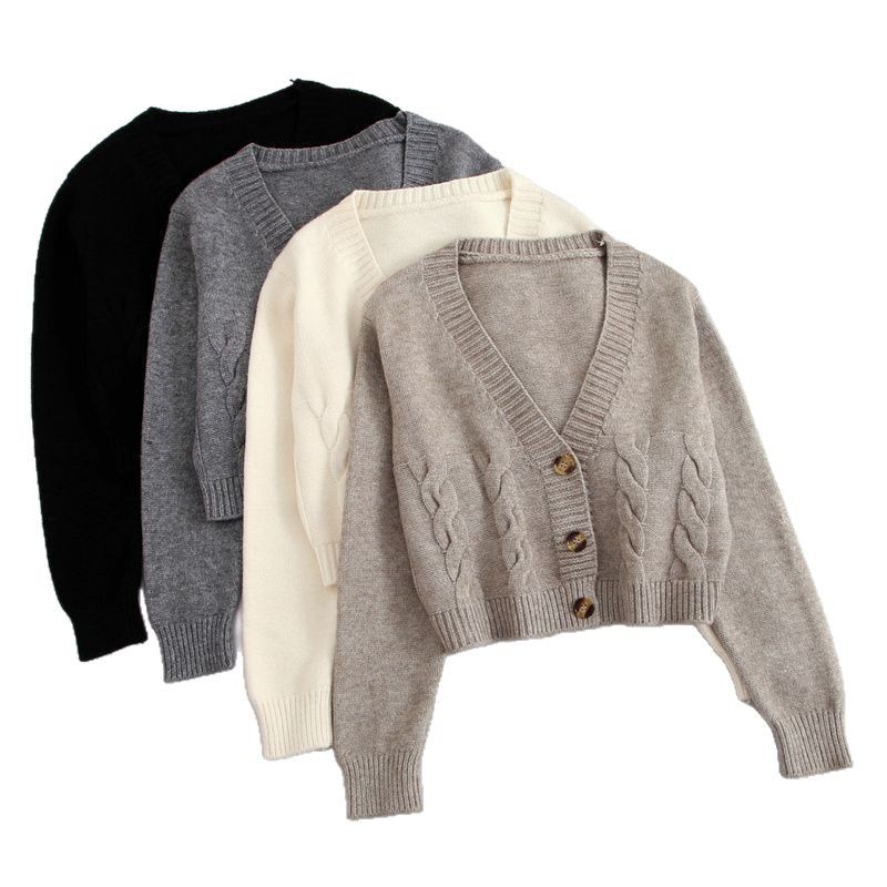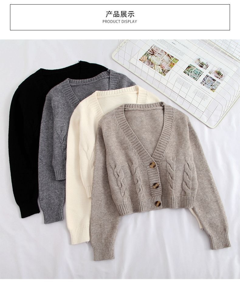 높은 허리 짧은 스웨터 여성의 슬림 스웨터 봄과 가을 새로운 느슨한 트위스트 작은 카디건 여성용 아우터