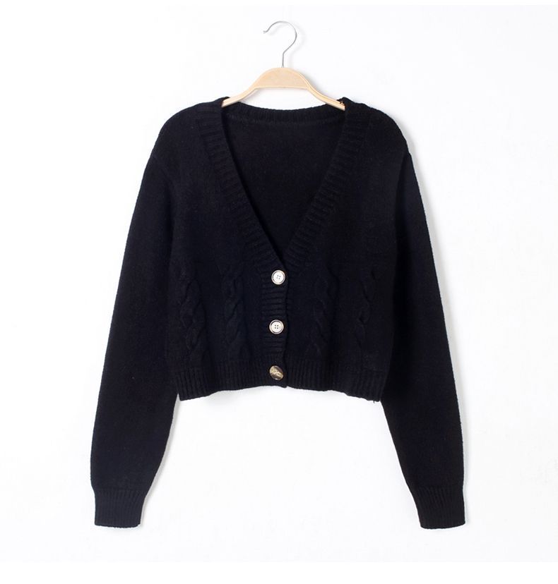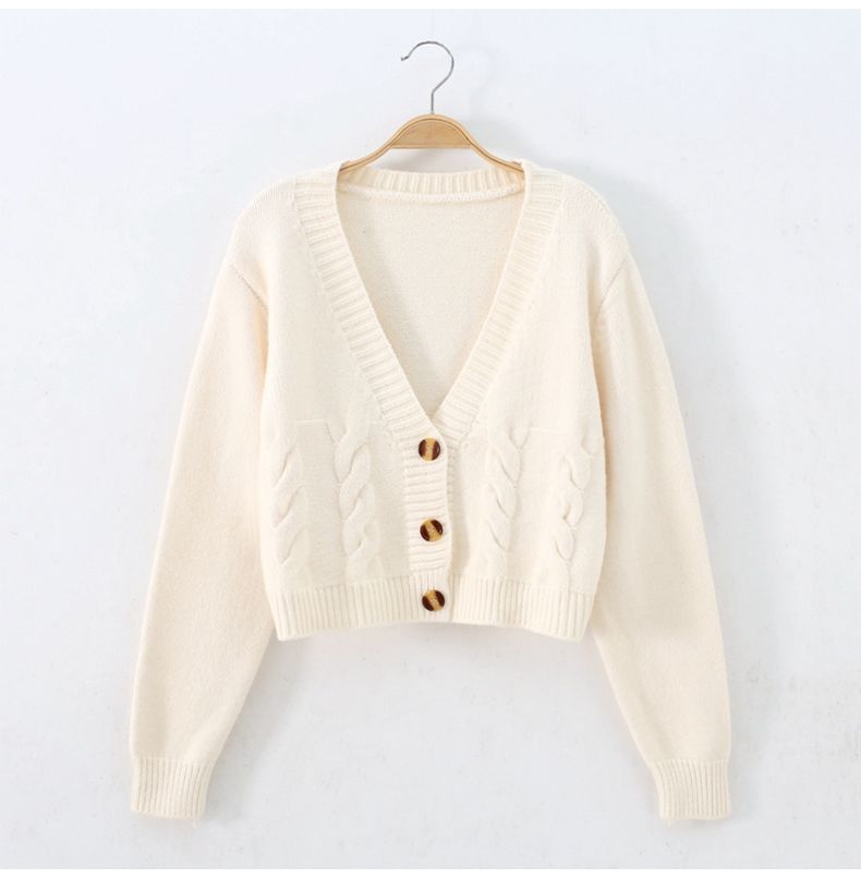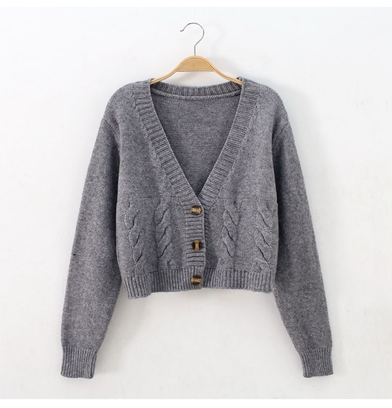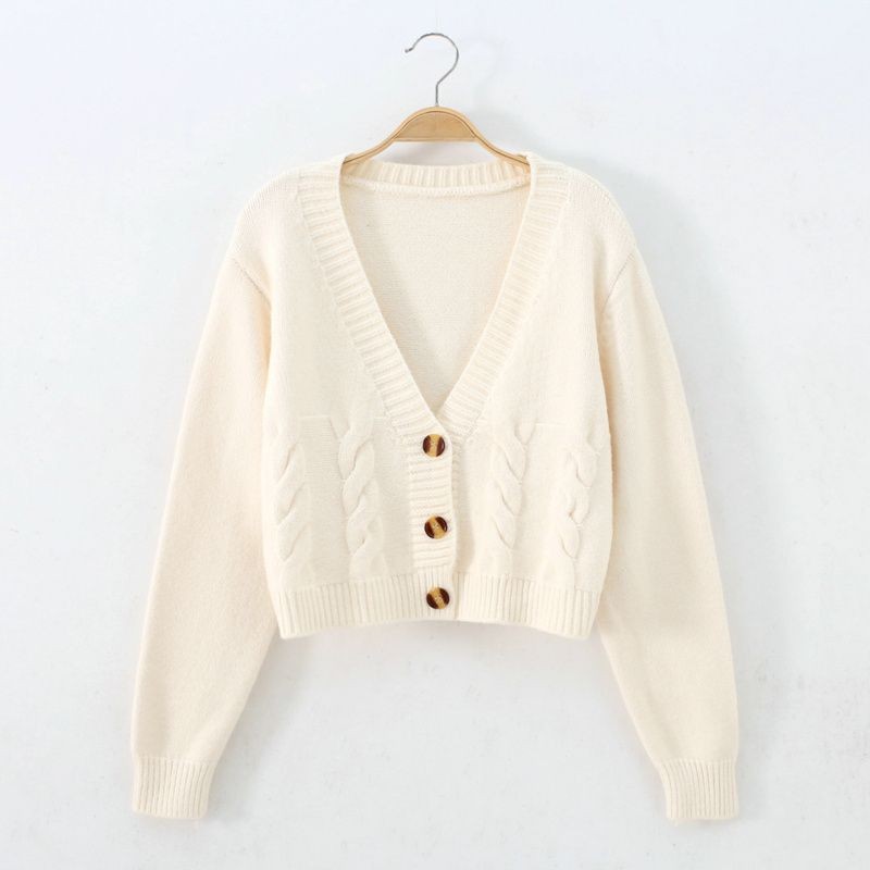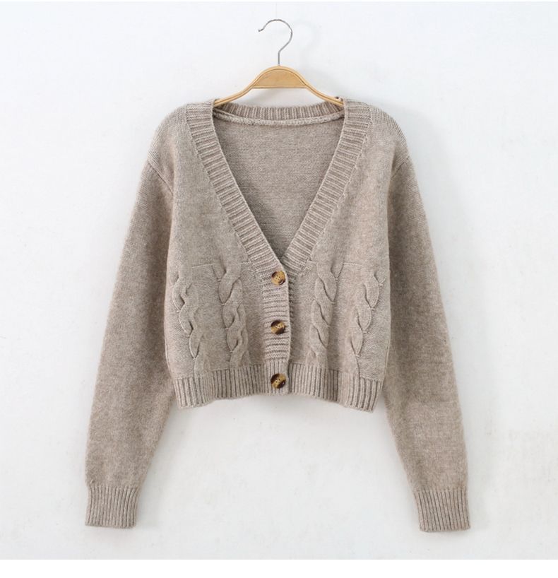 높은 허리 짧은 스웨터 여성의 슬림 스웨터 봄과 가을 새로운 느슨한 트위스트 작은 카디건 여성용 아우터
