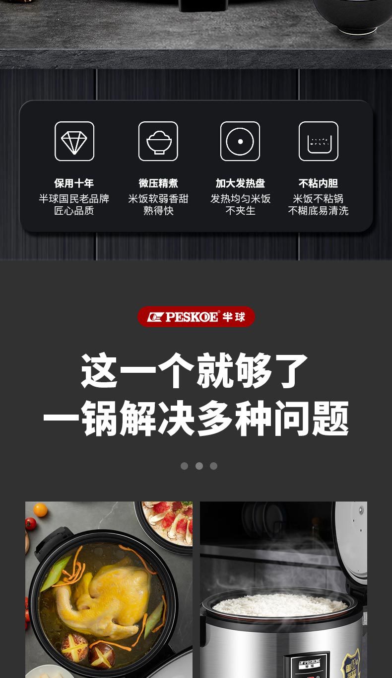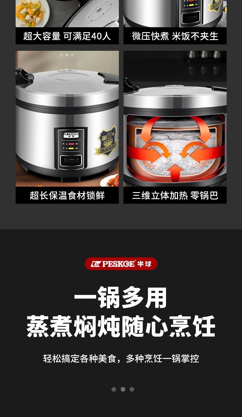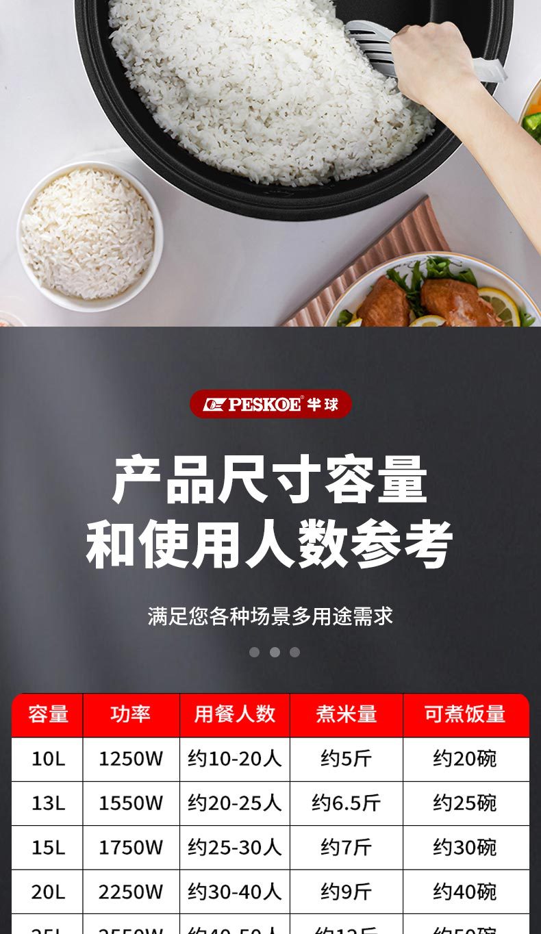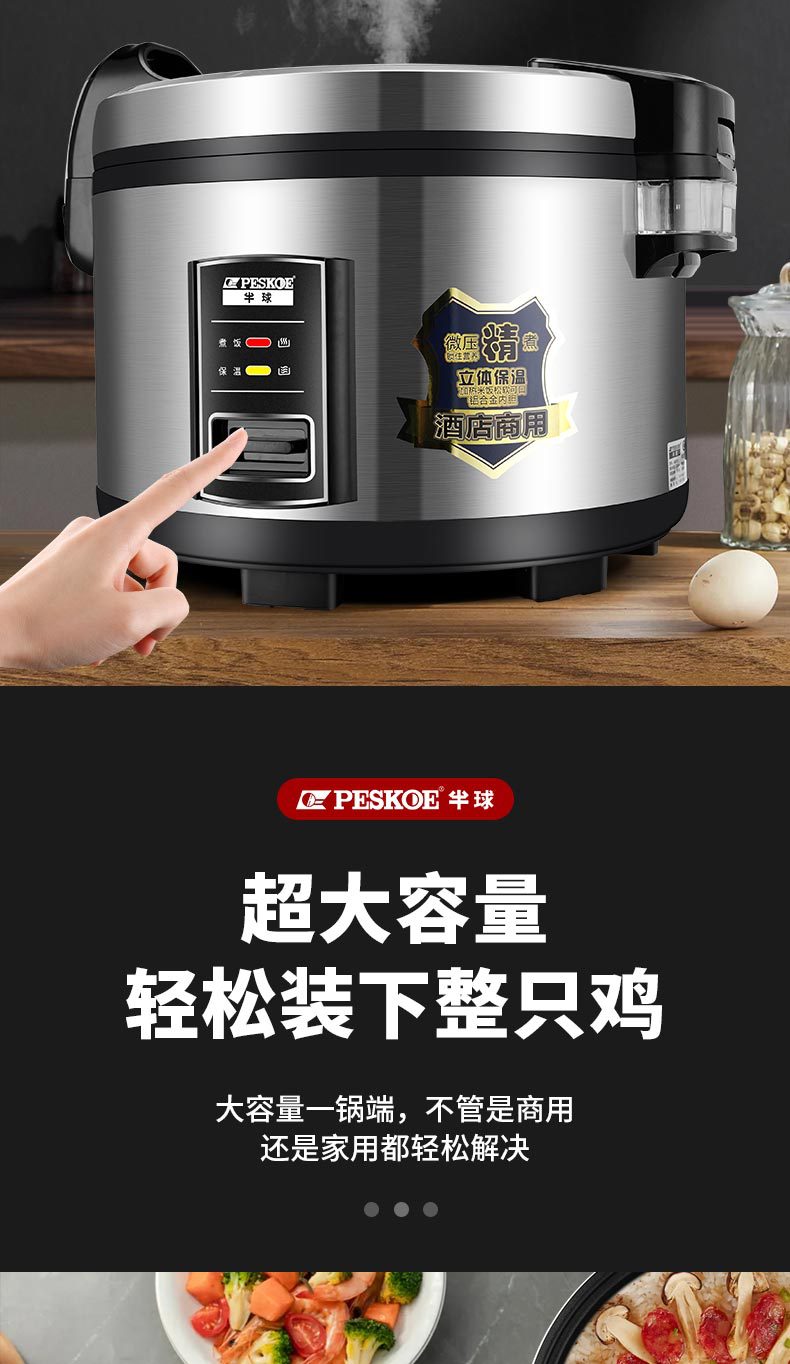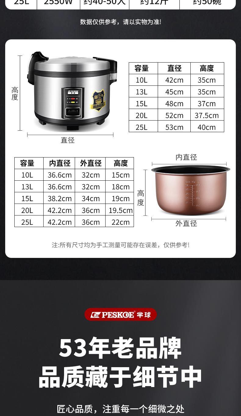 정반구형 상업용 대형 전기밥솥 스테인리스 10리터 50인용 대용량 논스틱 내솥 전기밥솥 스마트 수출용