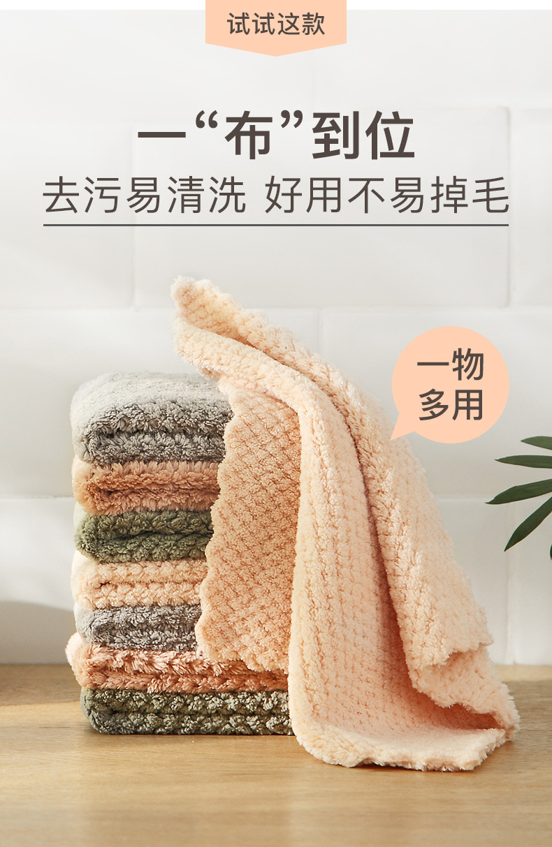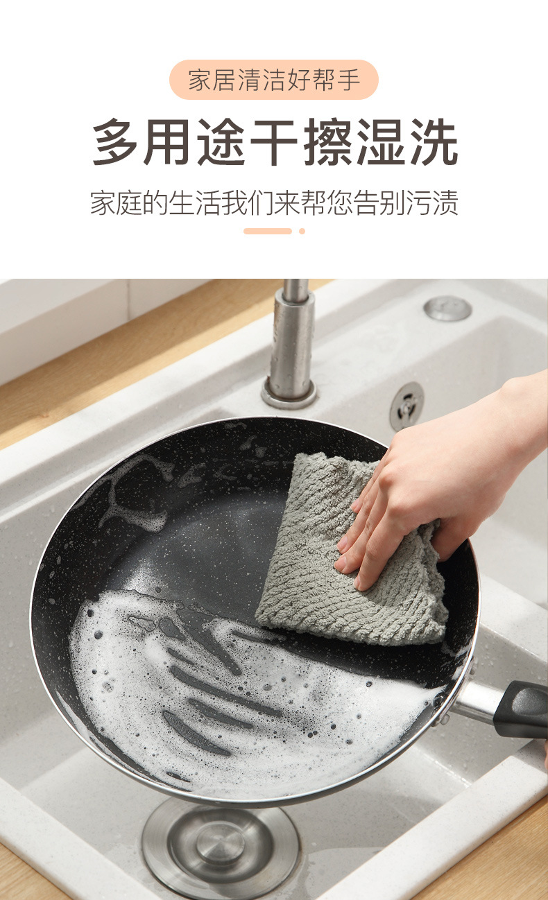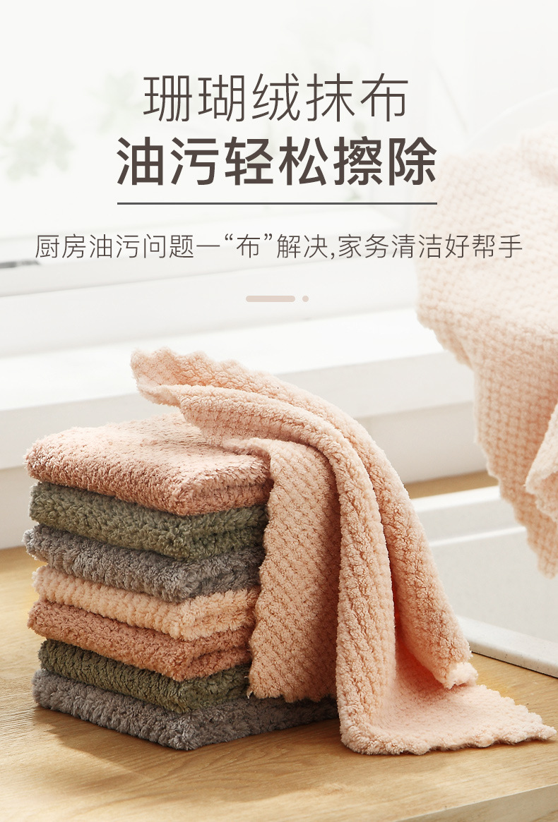 산호 양털 헝겊을 두껍게 만든 가정용 청소 흡수성 수건 가정용 주방 보풀이없는 식기 세척 헝겊을 쉽게 청소할 수 있습니다.