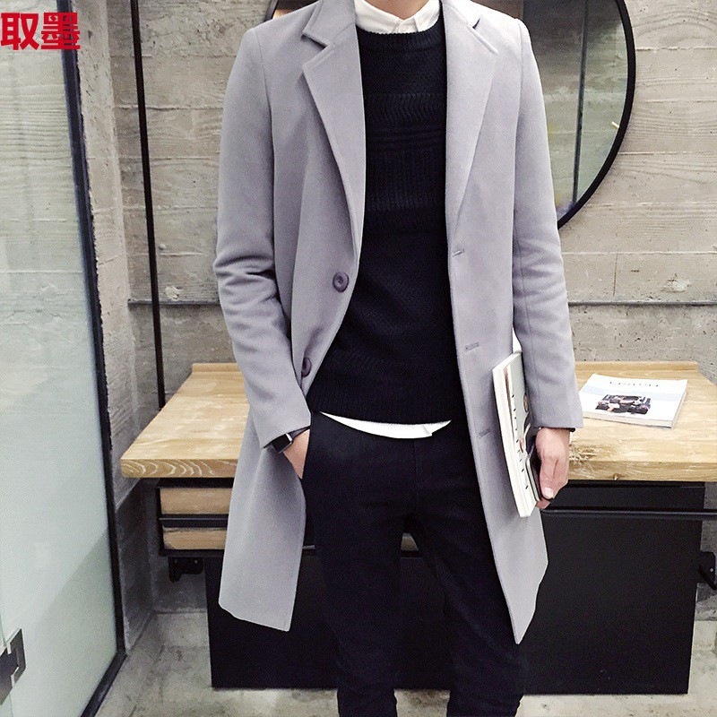 2024 봄과 가을 모직 코트 남자 중간 길이의 한국식 유행 윈드 브레이커 TiZi 얇은 중간 길이의 모직 코트