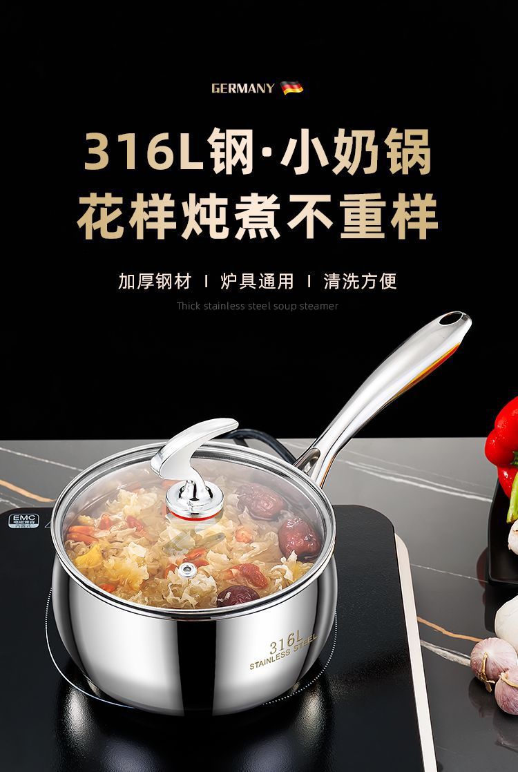 식품 등급 가정용 높은 말꼬리 우유 냄비 18CM 냄비 베이비 푸드 보충 냄비 유도 밥솥 가스 스토브 유니버설