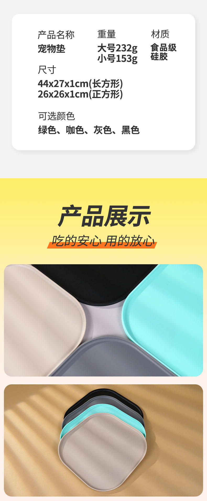 새로운 실리콘 애완 동물 Placemat 유출 방지 가장자리 하이라이트 디자인 고양이 그릇 매트 개 그릇 매트 FDA 인증 장소