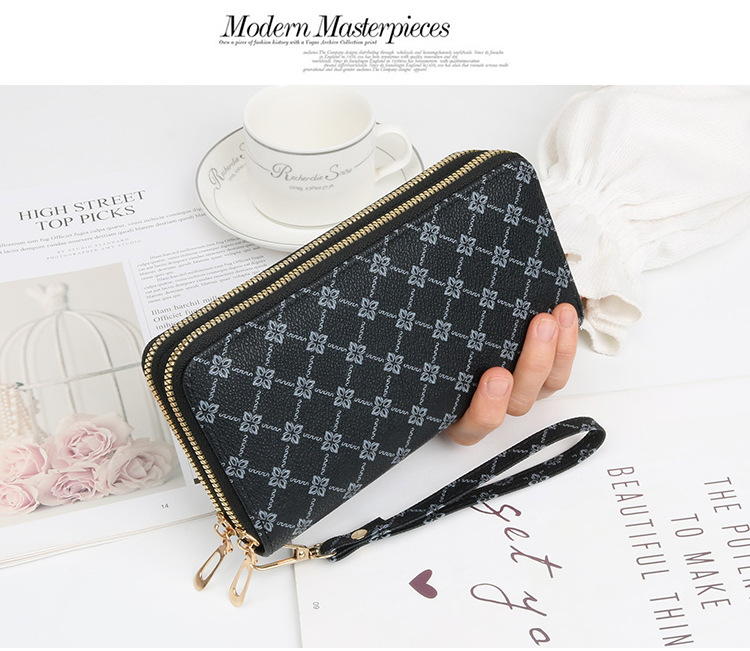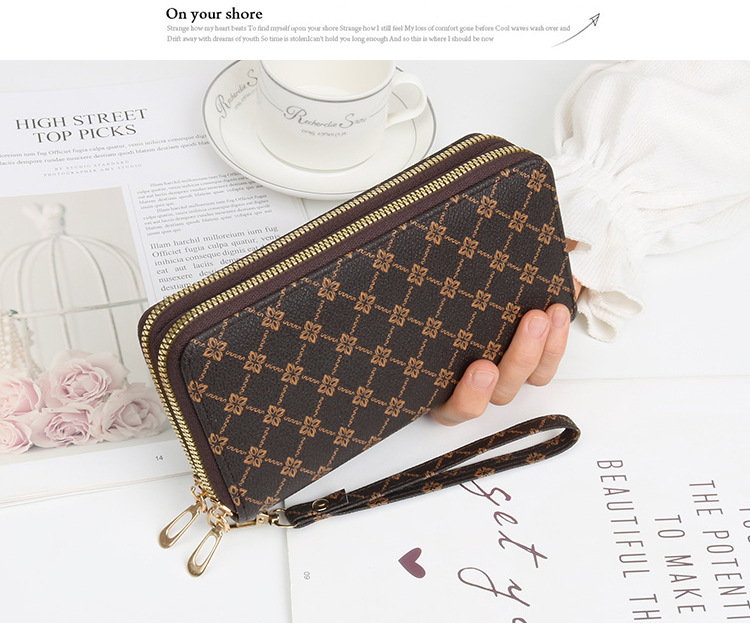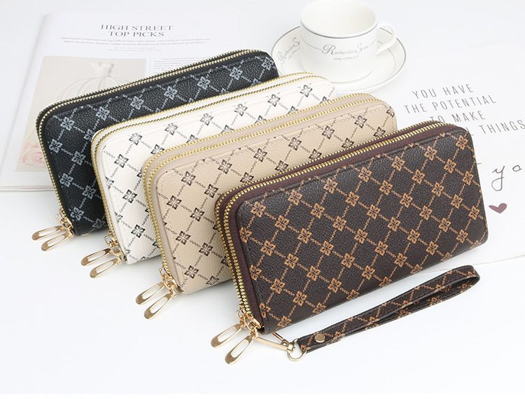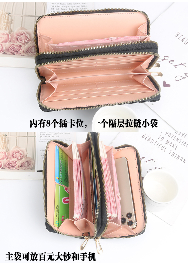 여성용 지갑 롱 코인 지갑 새로운 패션 더블 레이어 지퍼 백 대용량 지갑 여성용 클러치 백