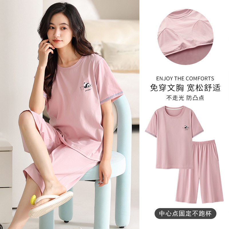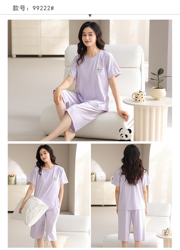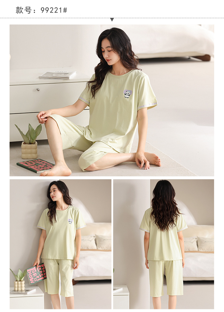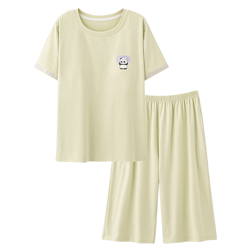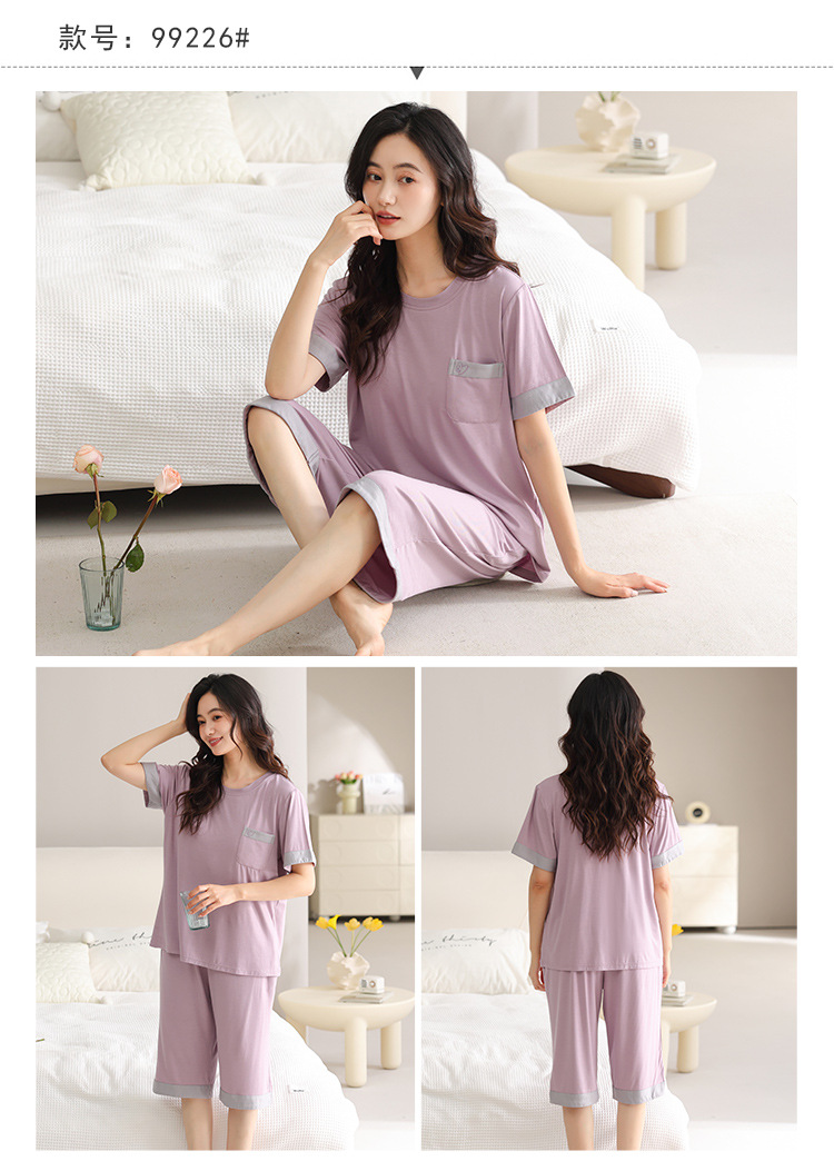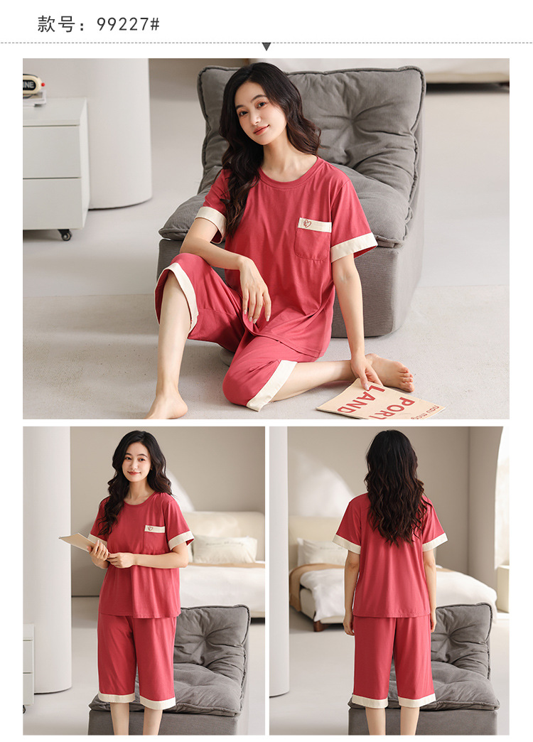 여름 새 여성 파자마 모달 반팔 자른 바지 크루 넥 풀오버 달콤한 사랑 외투 홈 의류