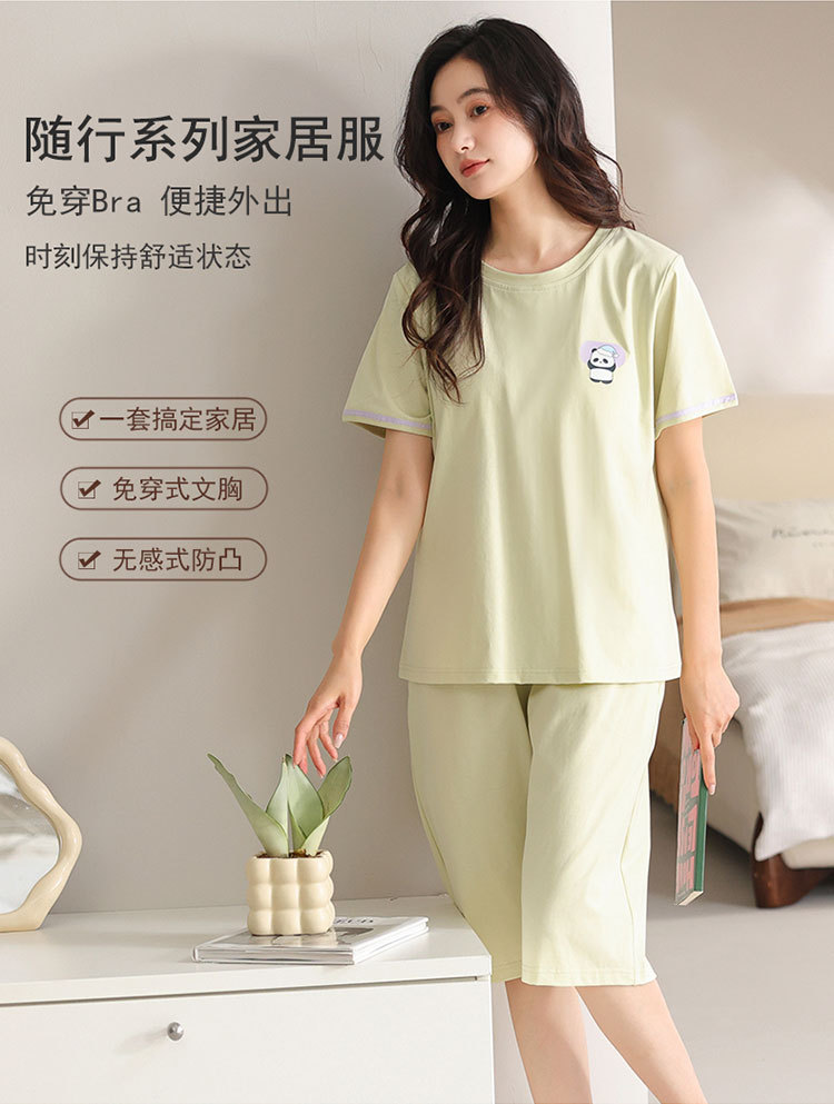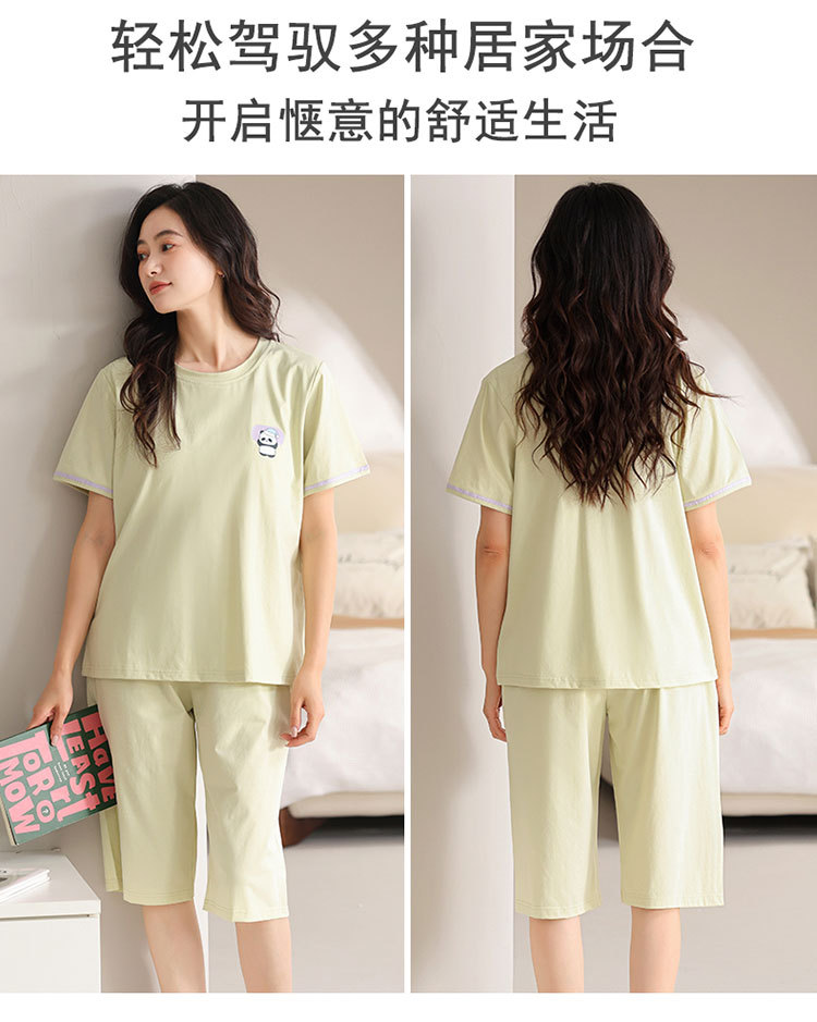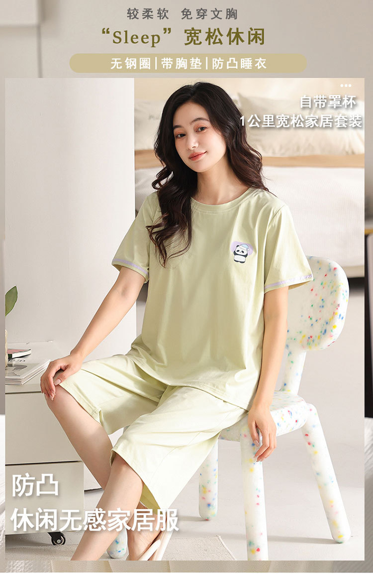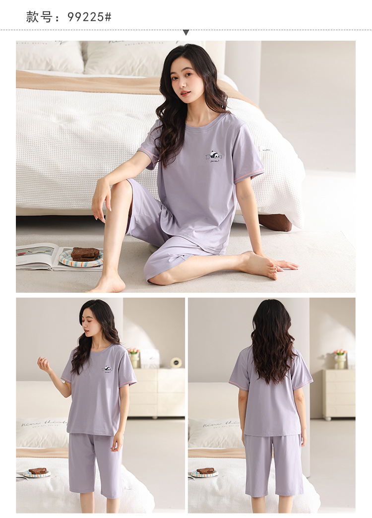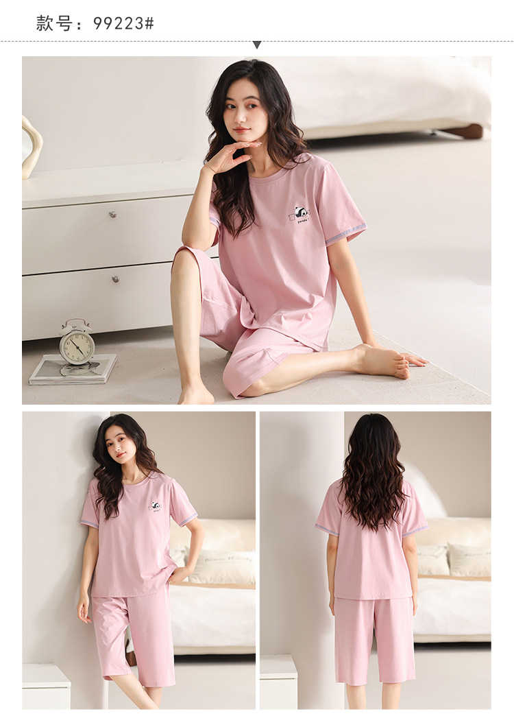 여름 새 여성 파자마 모달 반팔 자른 바지 크루 넥 풀오버 달콤한 사랑 외투 홈 의류