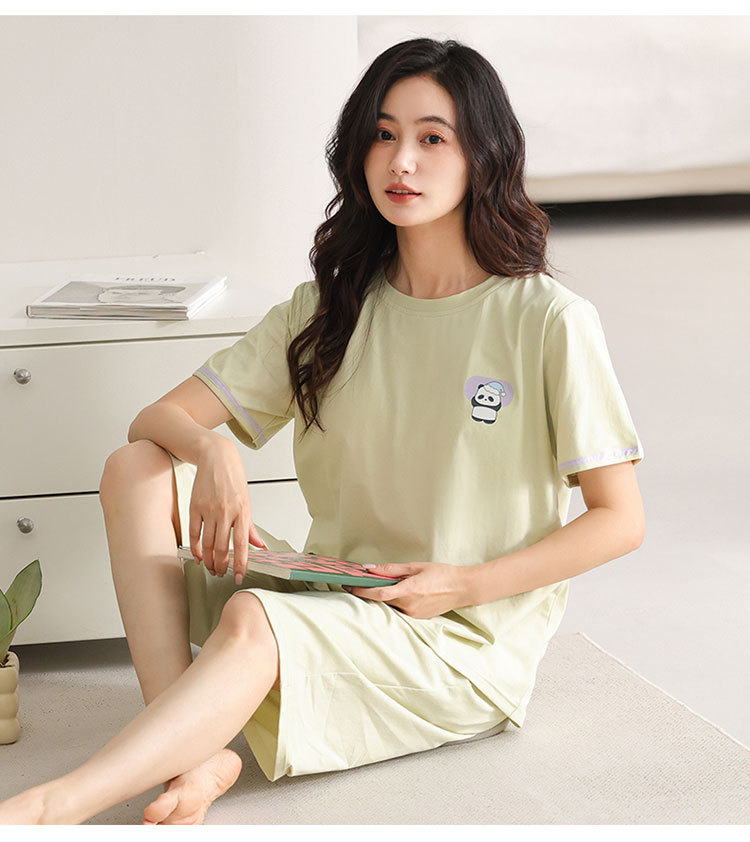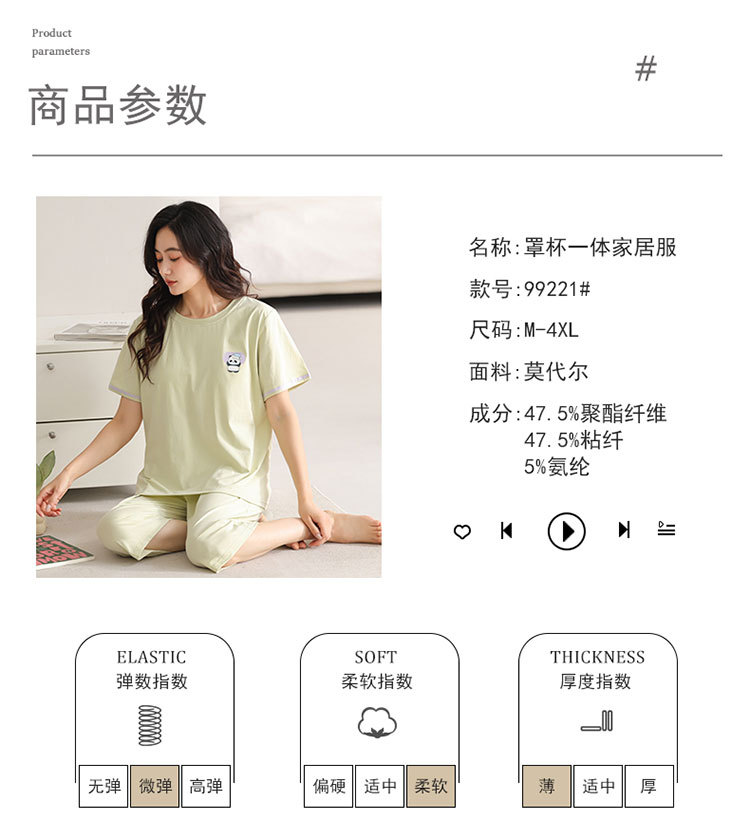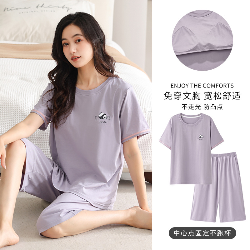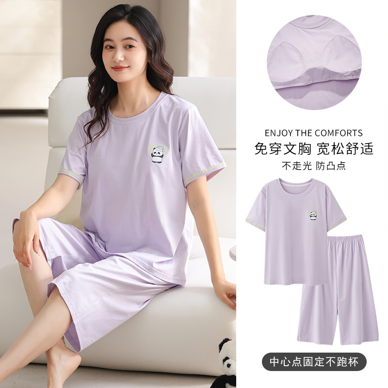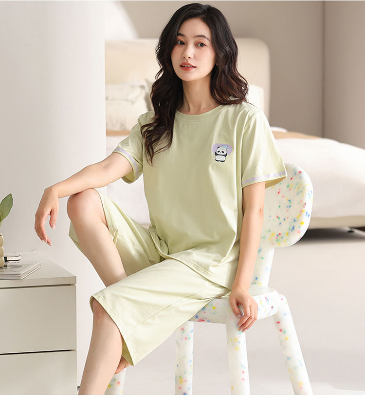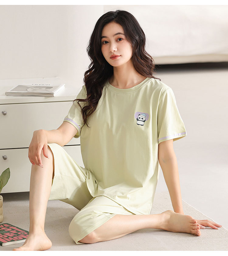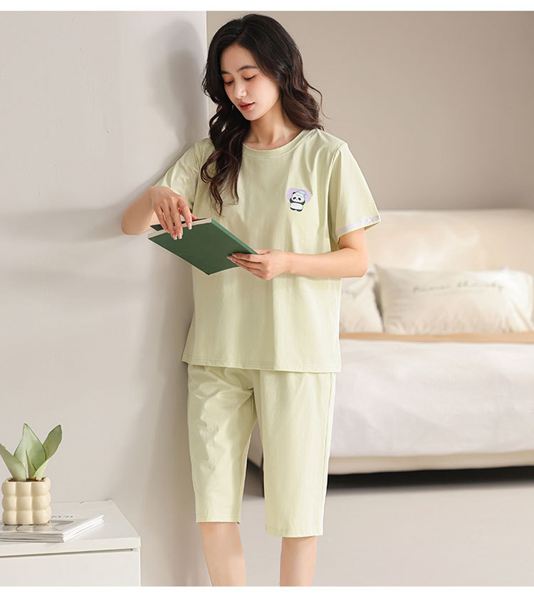 여름 새 여성 파자마 모달 반팔 자른 바지 크루 넥 풀오버 달콤한 사랑 외투 홈 의류