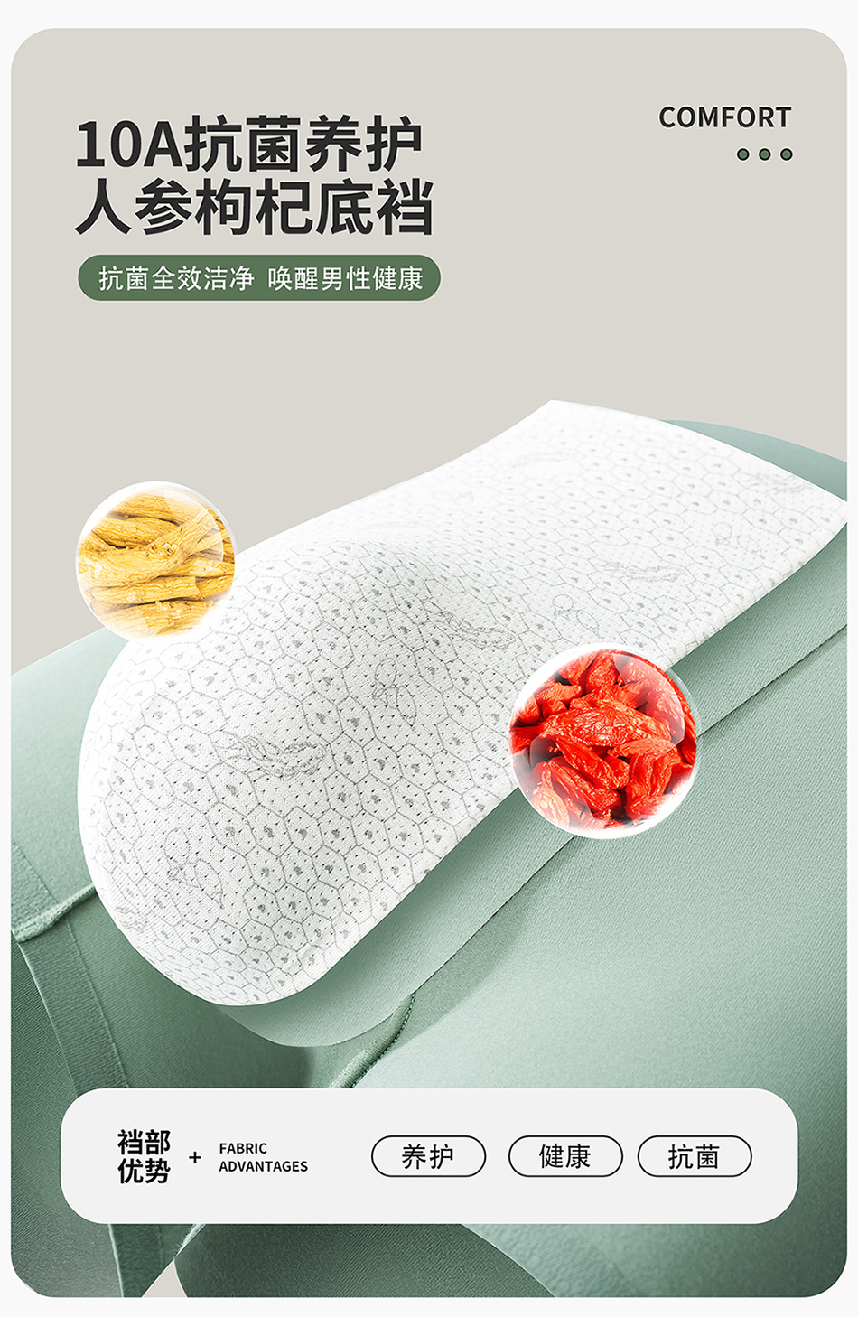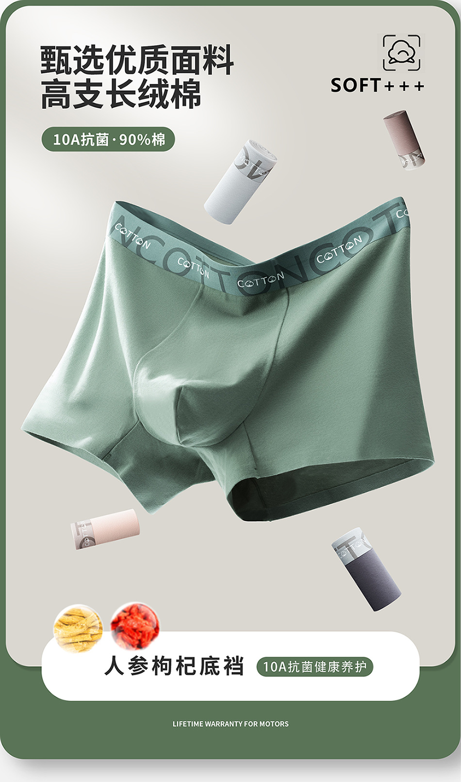 80 남자 속옷 면화 새로운 10A 항균 인삼 혼자 내부 파일 원활한 통기성 복서 반바지