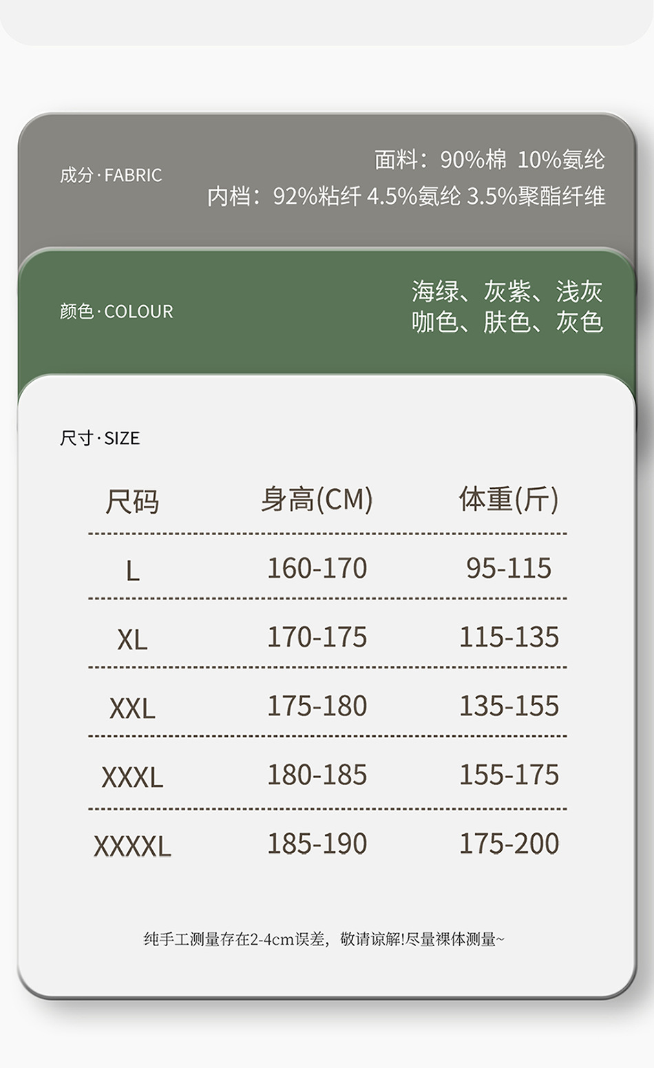 92% 비스코스, 4.5% 스판덱스, 3.5% 폴리에스터