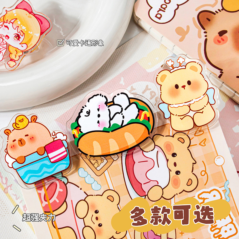 카피 발라 아크릴 클립 만화 귀여운 단면 PP 클립 학습 사무실 데스크탑 노트 테스트 종이 크리 에이 티브 클립