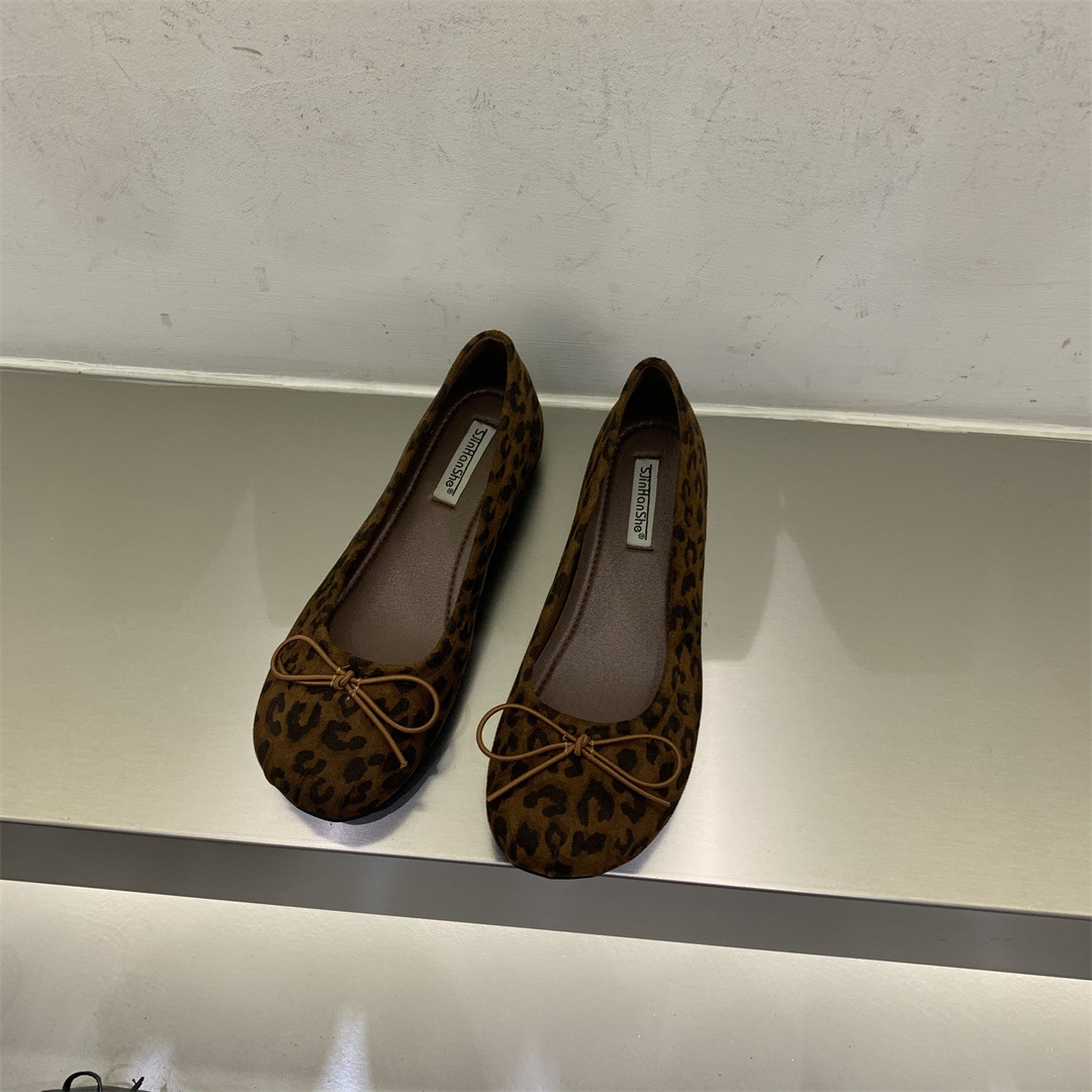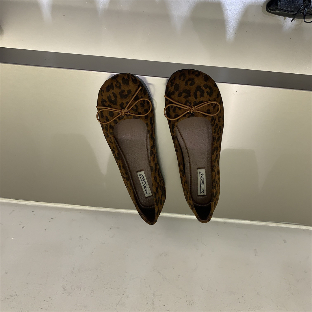 내부 키높이 기능이 있는 프렌치 스타일 라운드 토 레오파드 프린트 여성용 펌프스, 2026년 봄, 스커트와 함께 착용하기 좋은 웨지힐, 리본 장식, 유니크한 디자인의 이브닝 슈즈