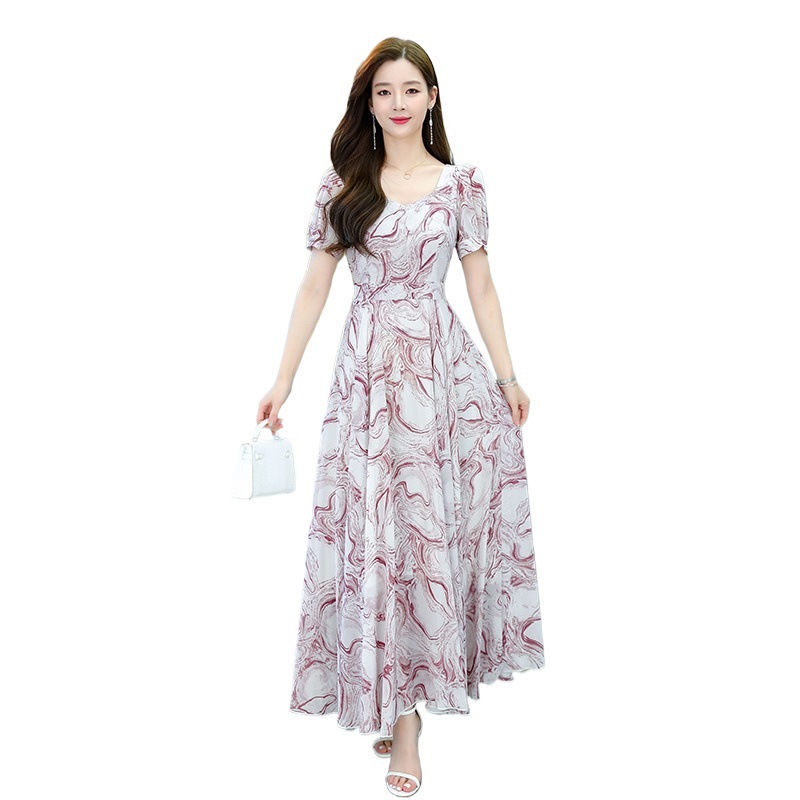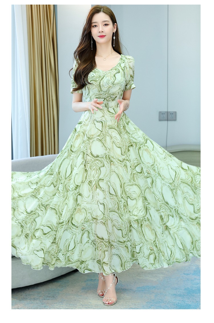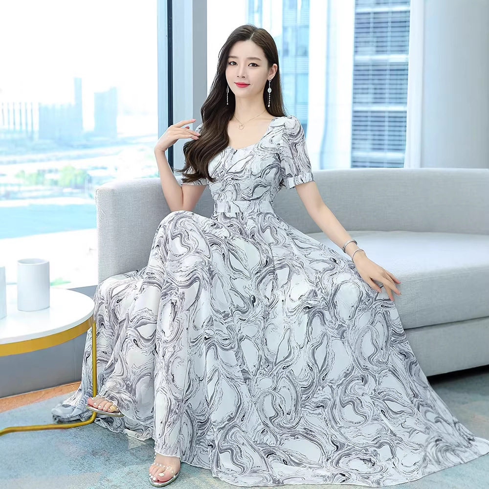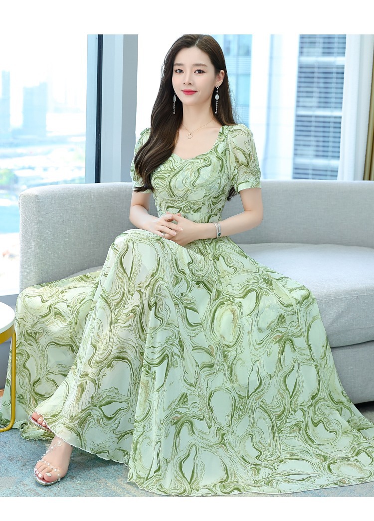여성용 여름 원피스, 싼야 해변 휴가, 고급스러운 플로럴 패턴의 우아한 비치 원피스, 패셔너블한 미디 길이 스커트