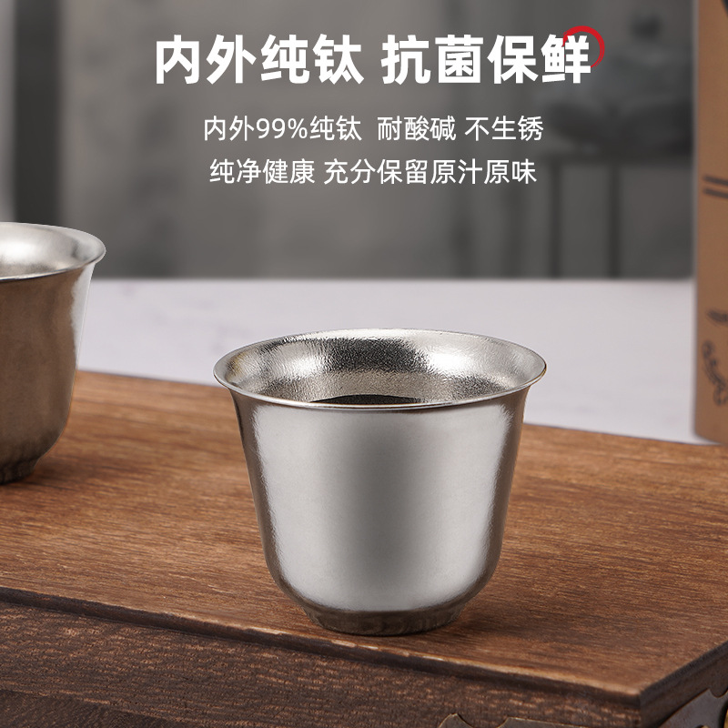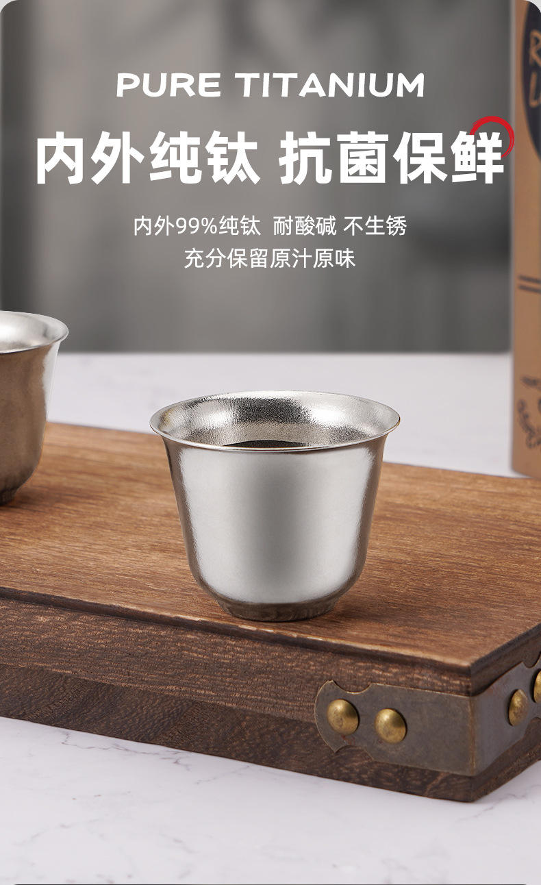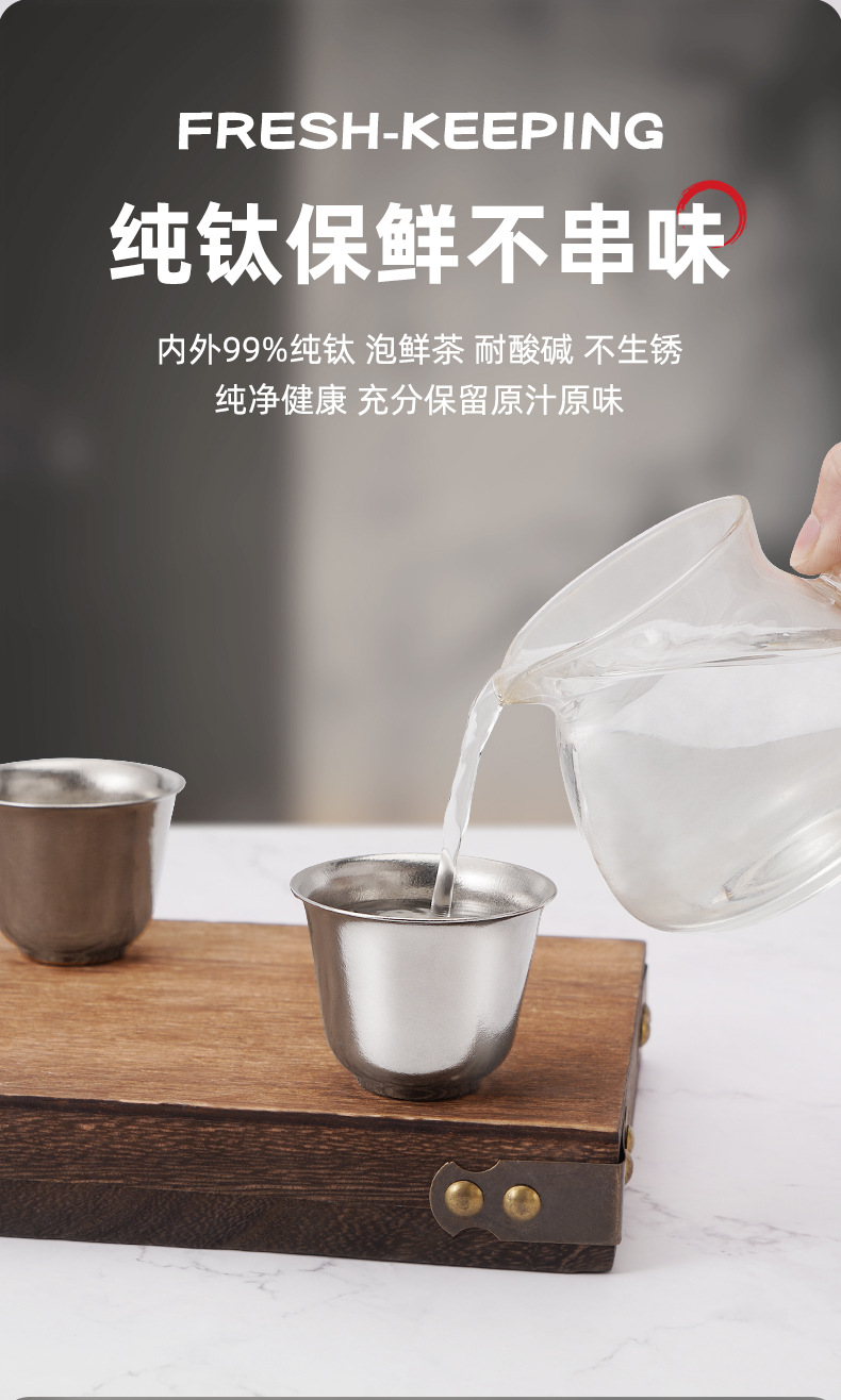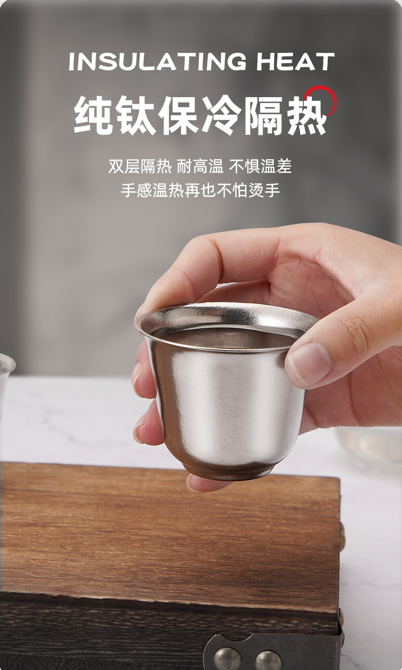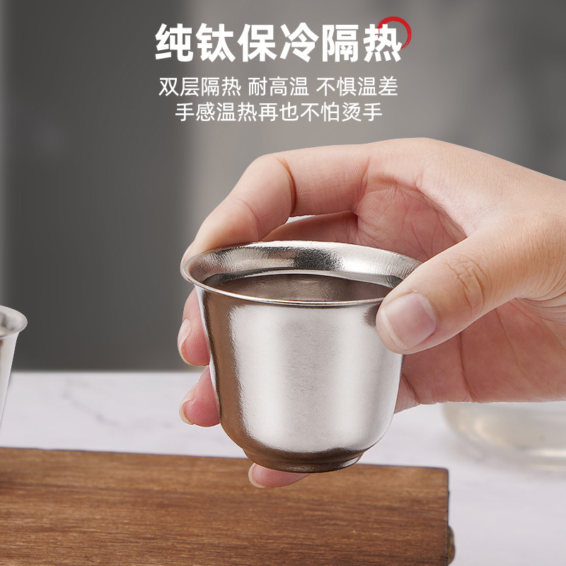 순수한 티타늄 가정용 스몰 사이즈 차 그릇 커버 야외 캠핑 쿵푸 차 메이커 커버 티 그릇 작은 와인 컵 더블 레이어 워터 컵