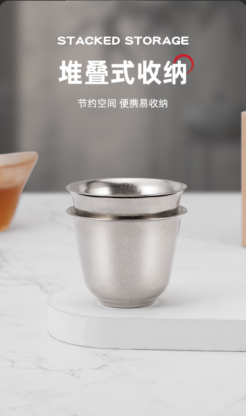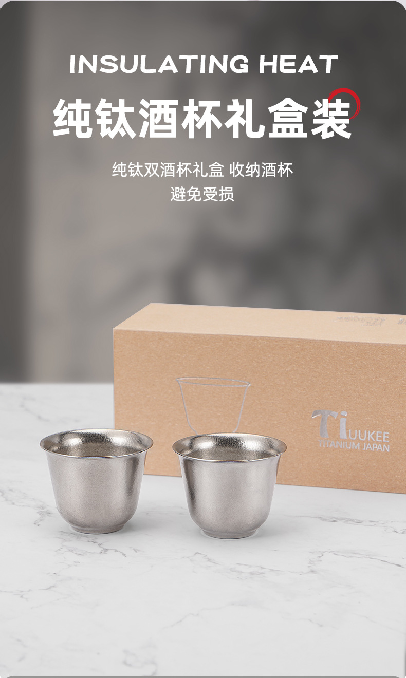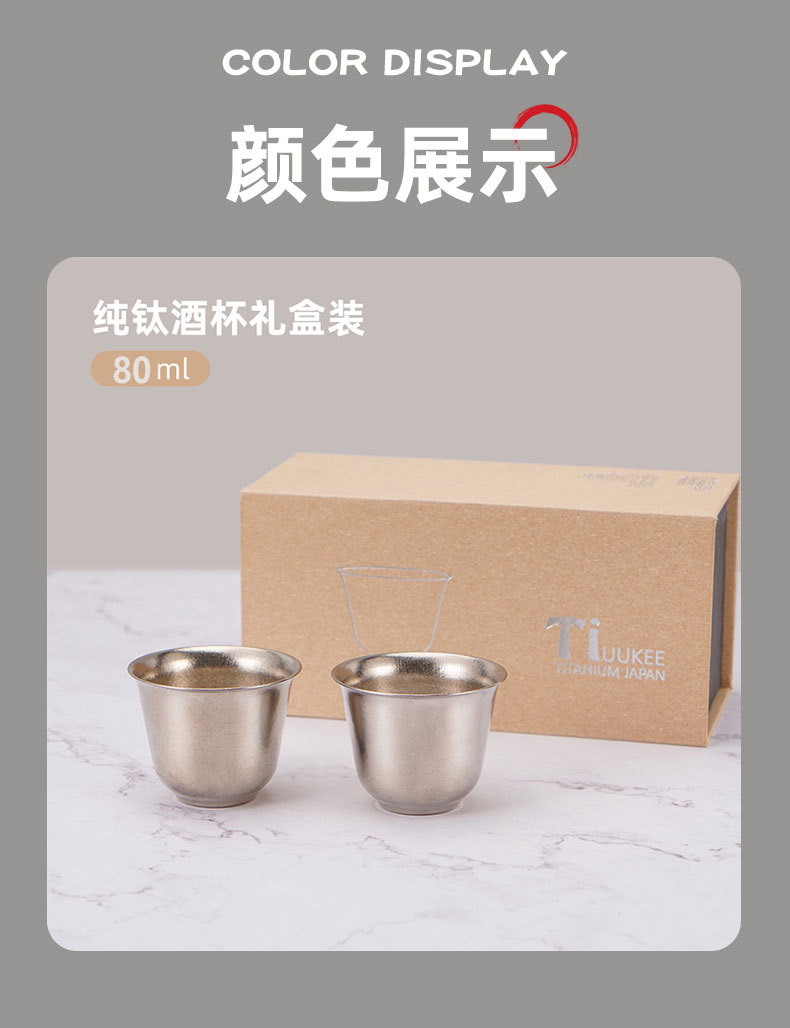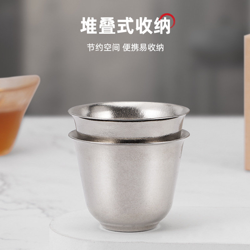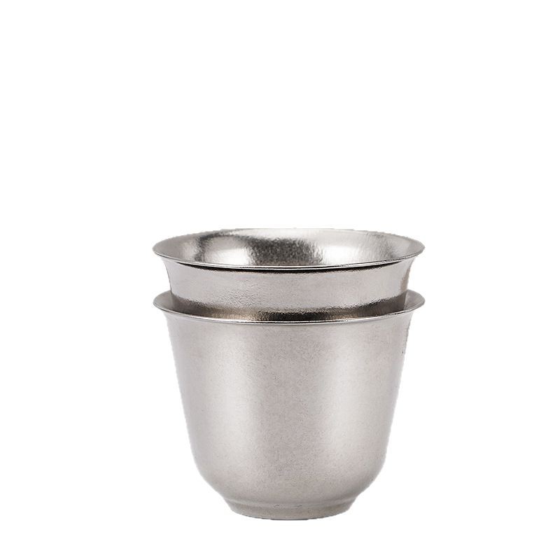 순수 티타늄 80ml 작은 찻잔 2개 세트 - 실버