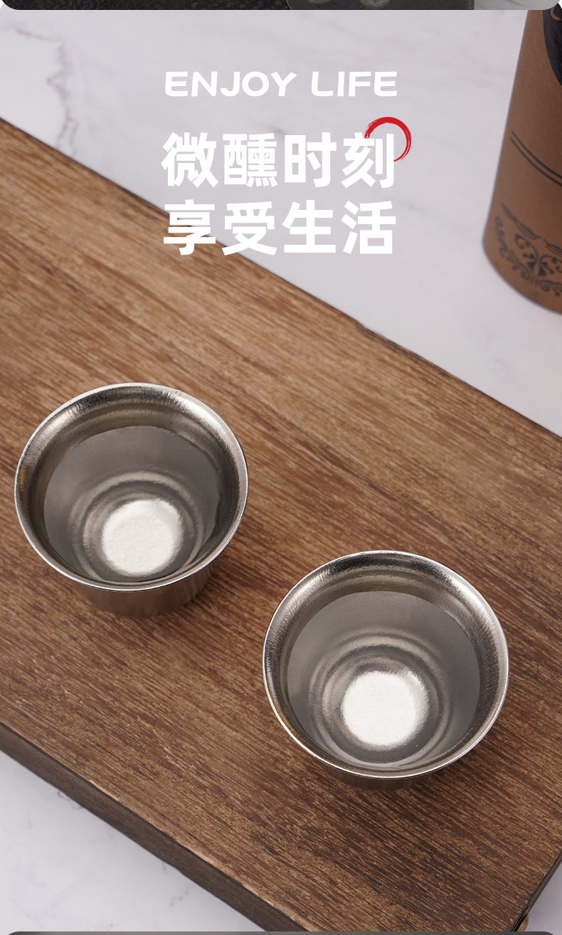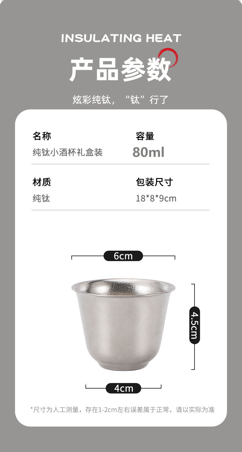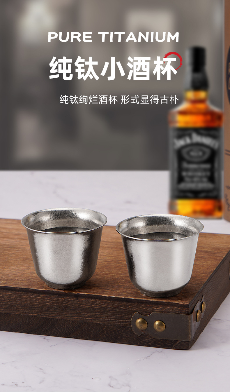 순수 티타늄 80ml 작은 찻잔 2개 세트 - 실버