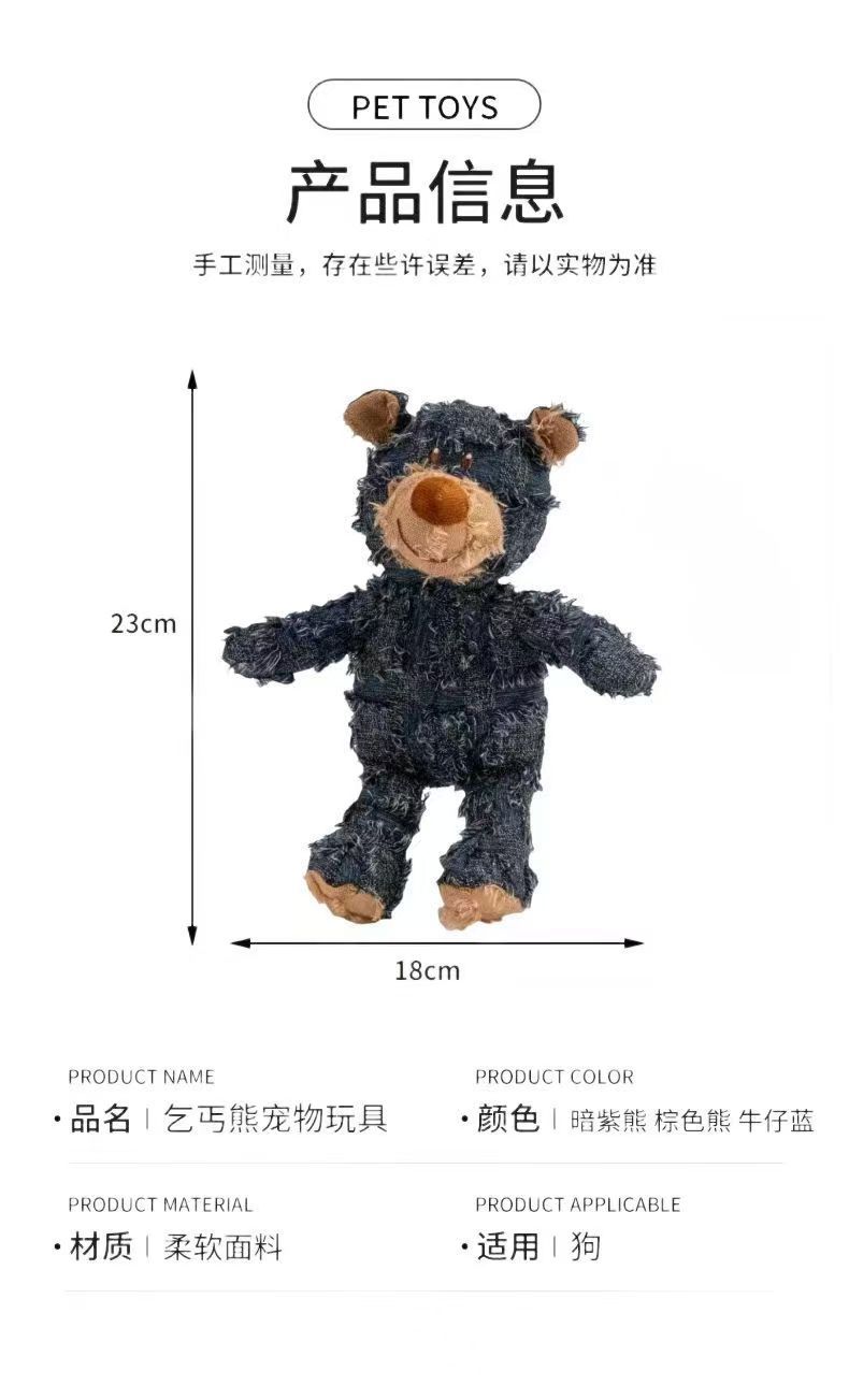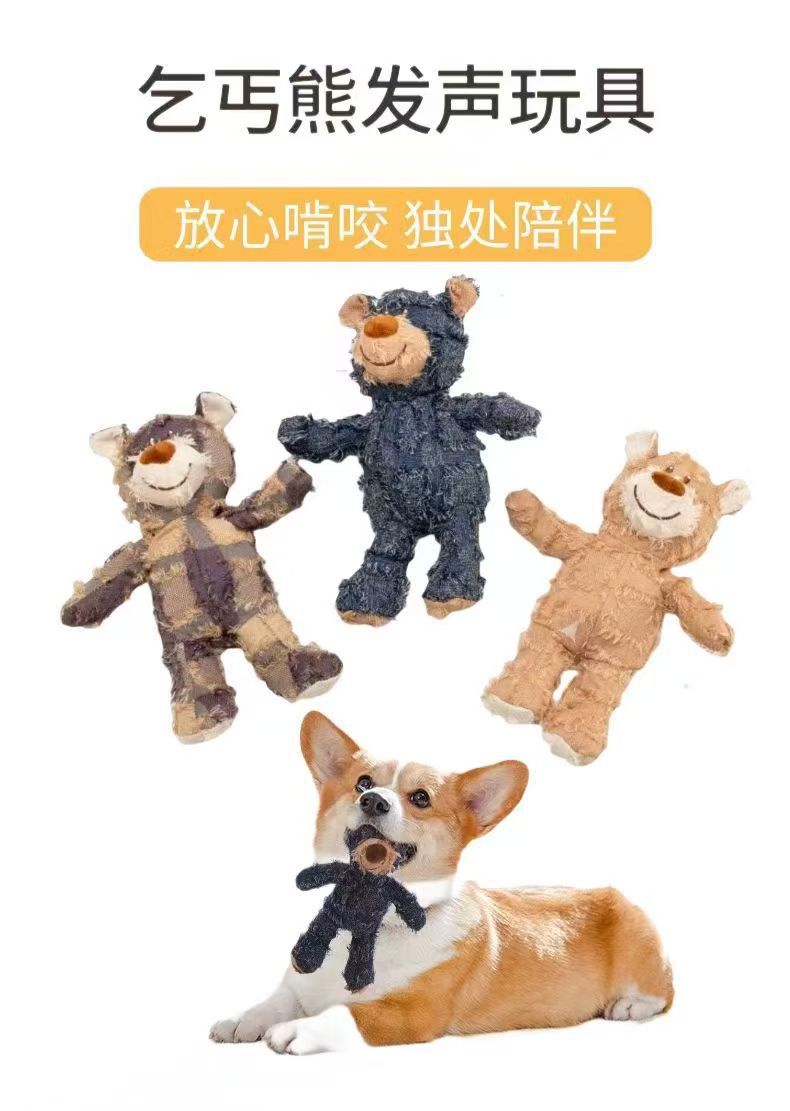 국경을 넘는 애완동물 장난감, 베거스베어 강아지용 3색 곰 인형, 치아갈이용, 내구성, 소리나는, 반려용품, 물림방지